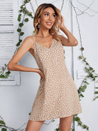 Double V-neck Allover Print Cami Dress