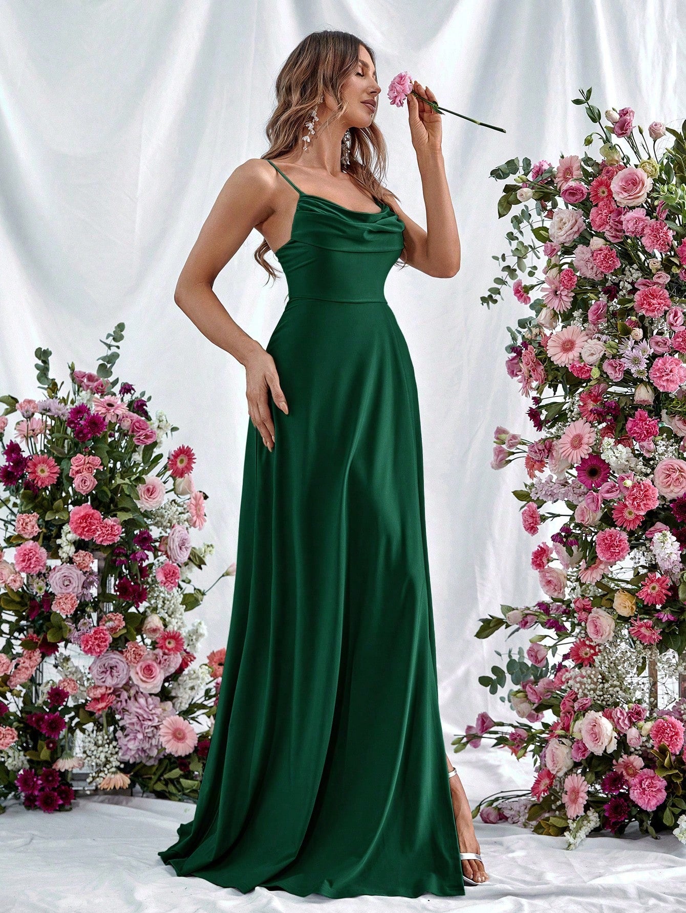 Draped Collar Wrap Hem Cami Dress Elegant Bridesmaid Dress