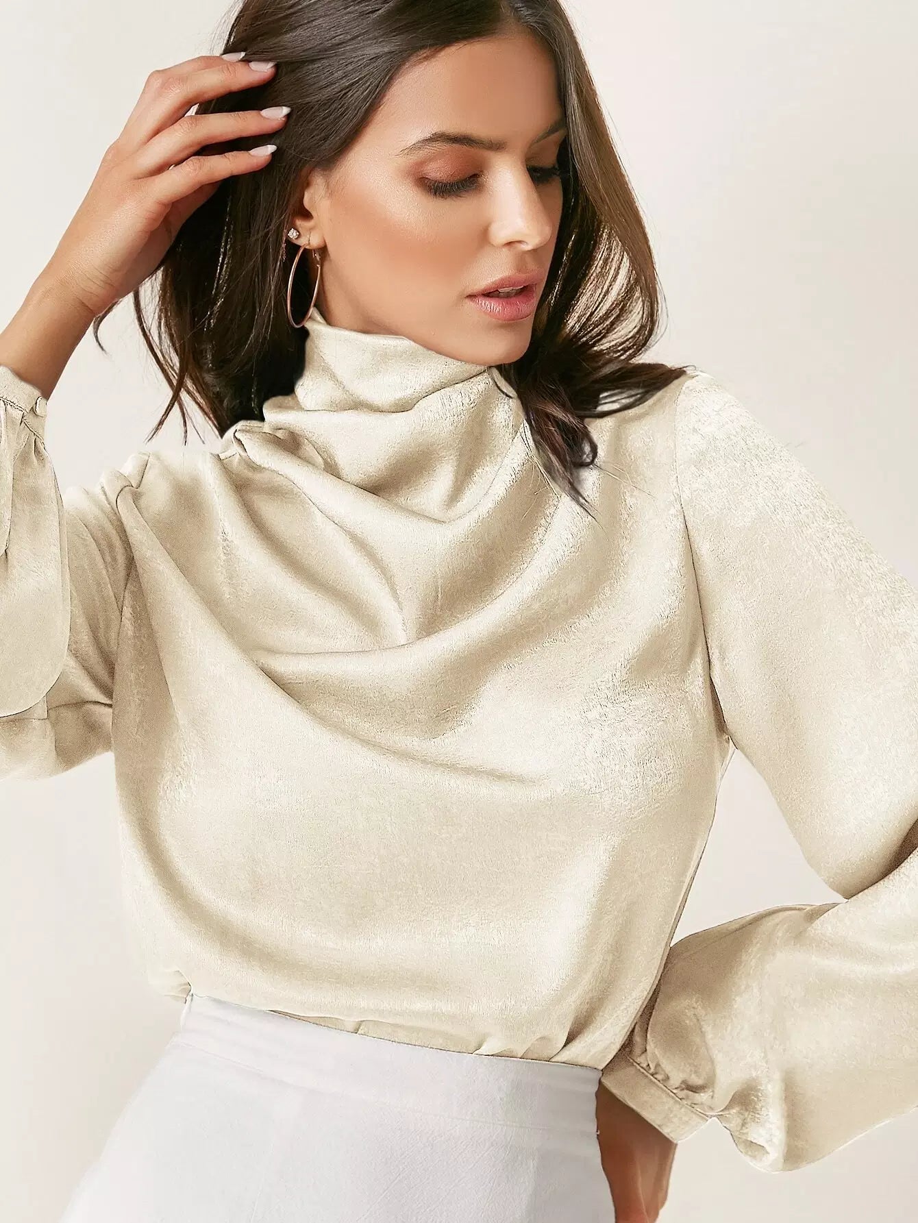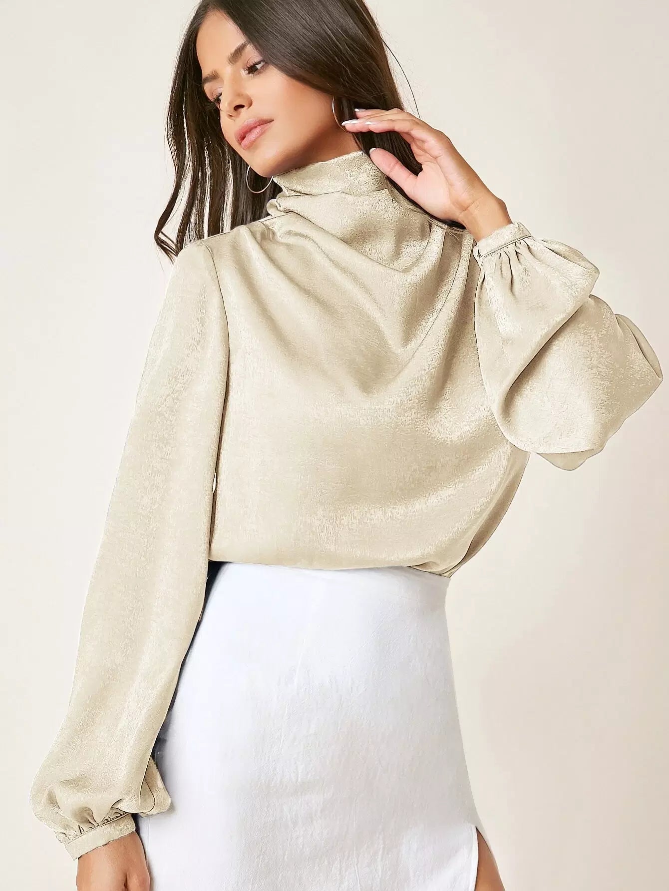 Draped Front Lantern Sleeve Top