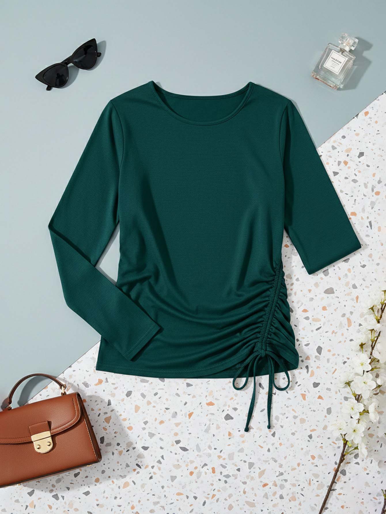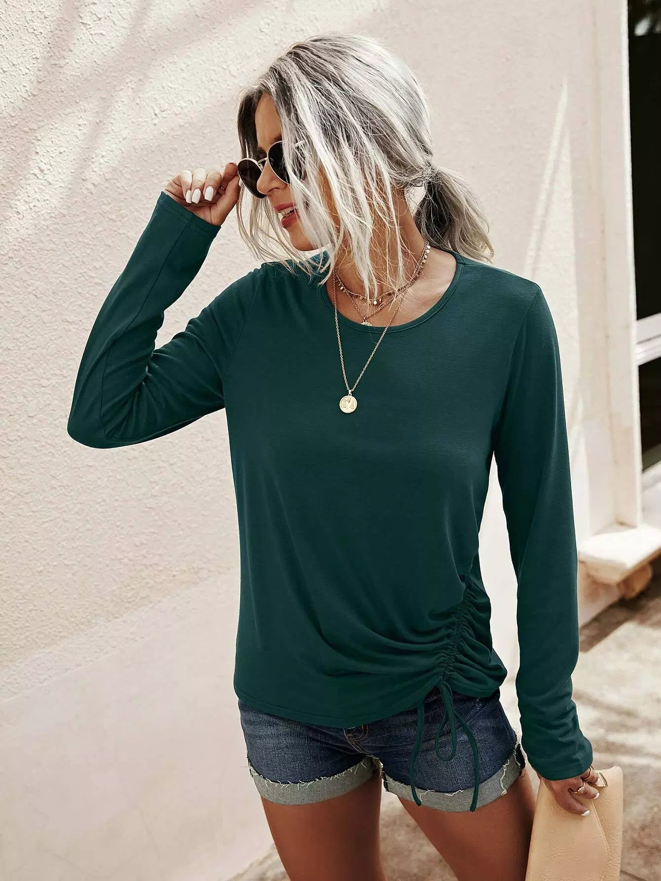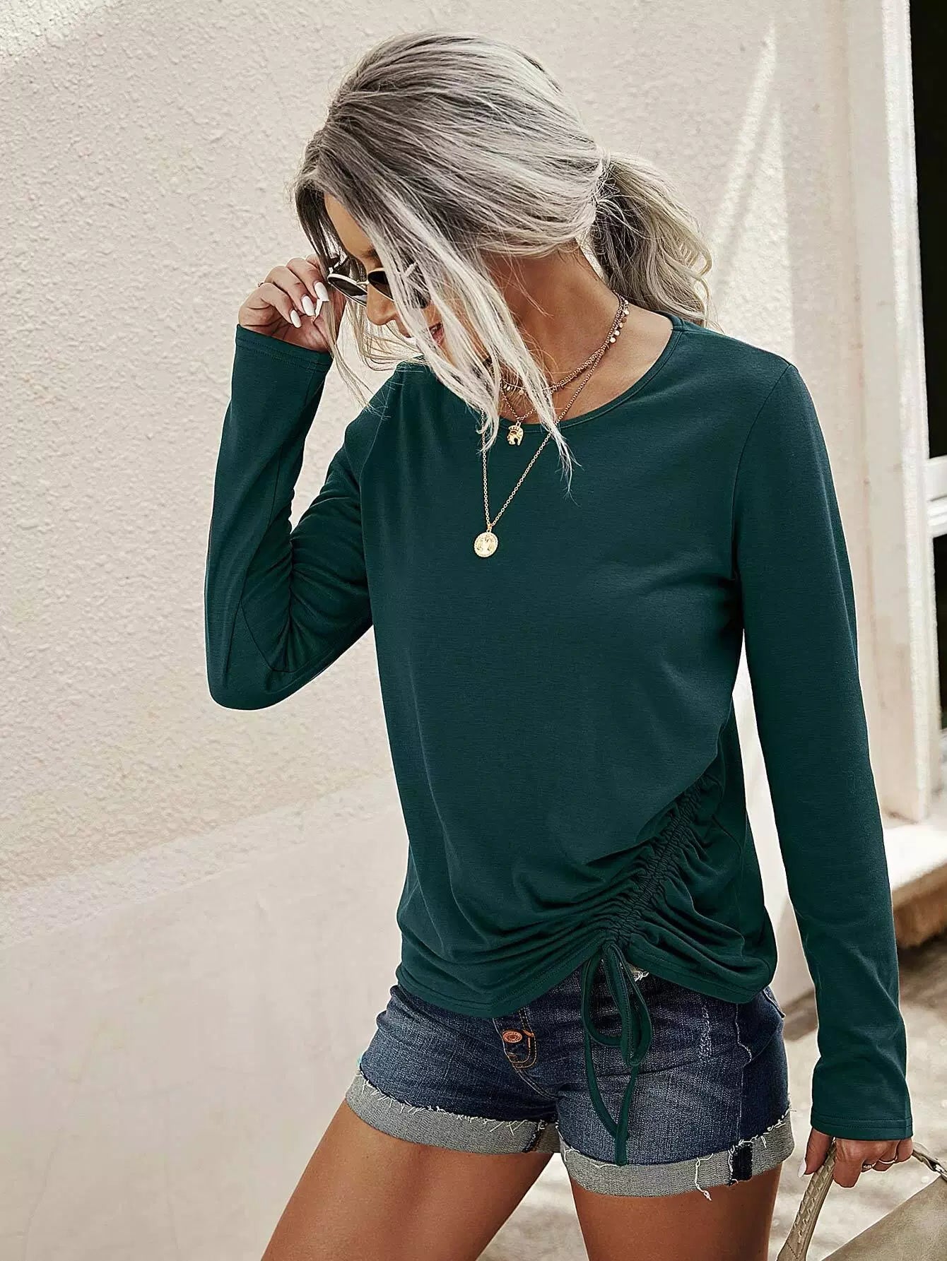 Drawstring Detail Solid Tee
