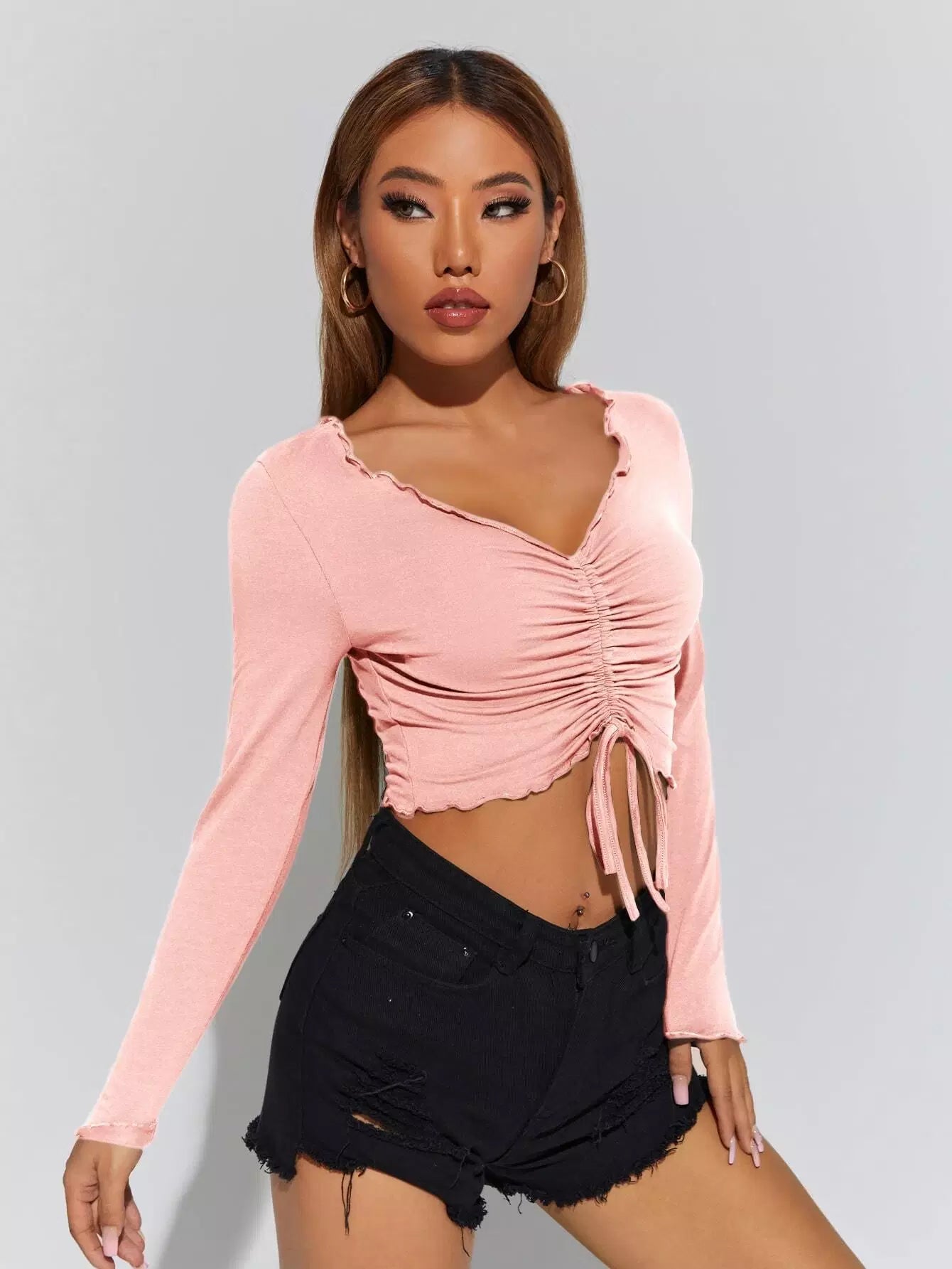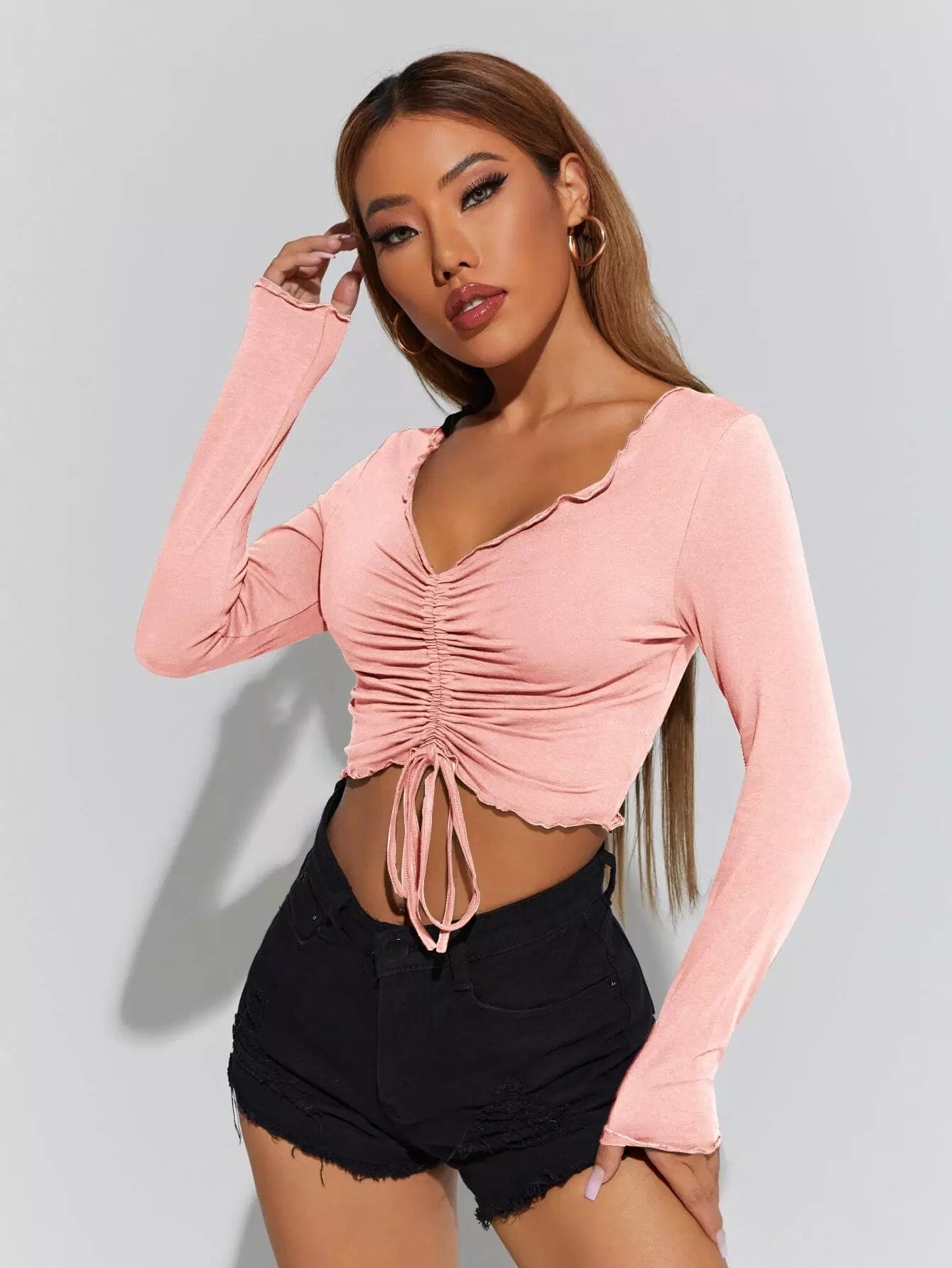 Drawstring Ruched Crop Tee