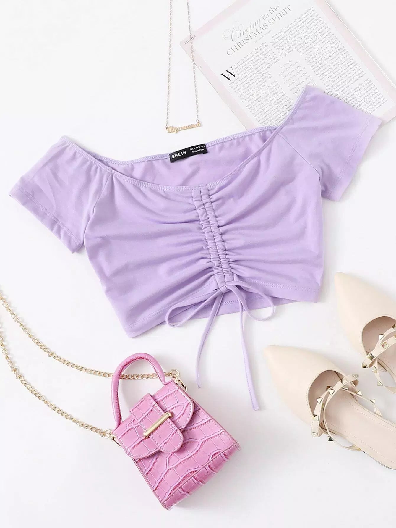 Drawstring Ruched Front Bardot Top