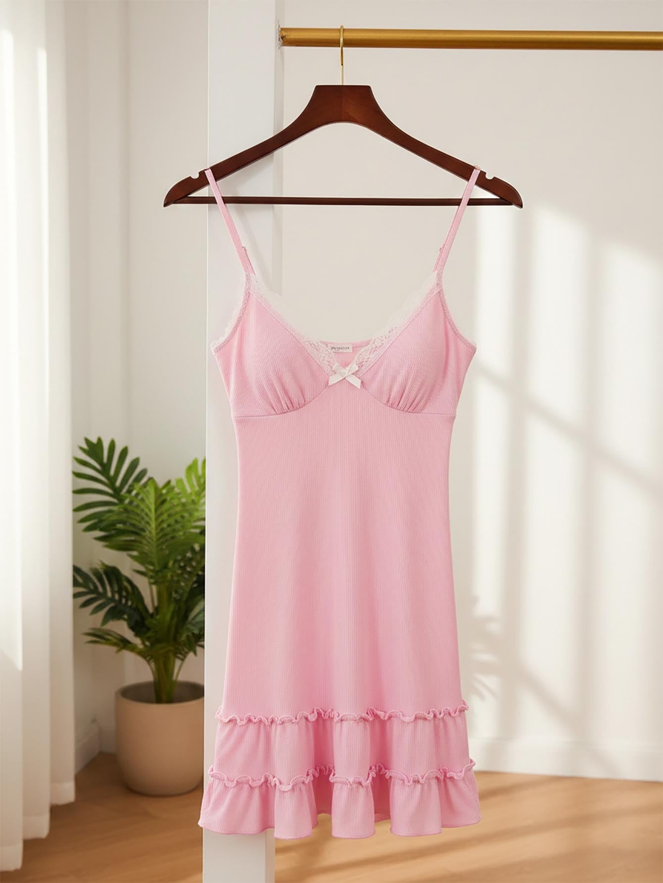 Dream Adore Women's Elegant Ruffle Strap Nightgown