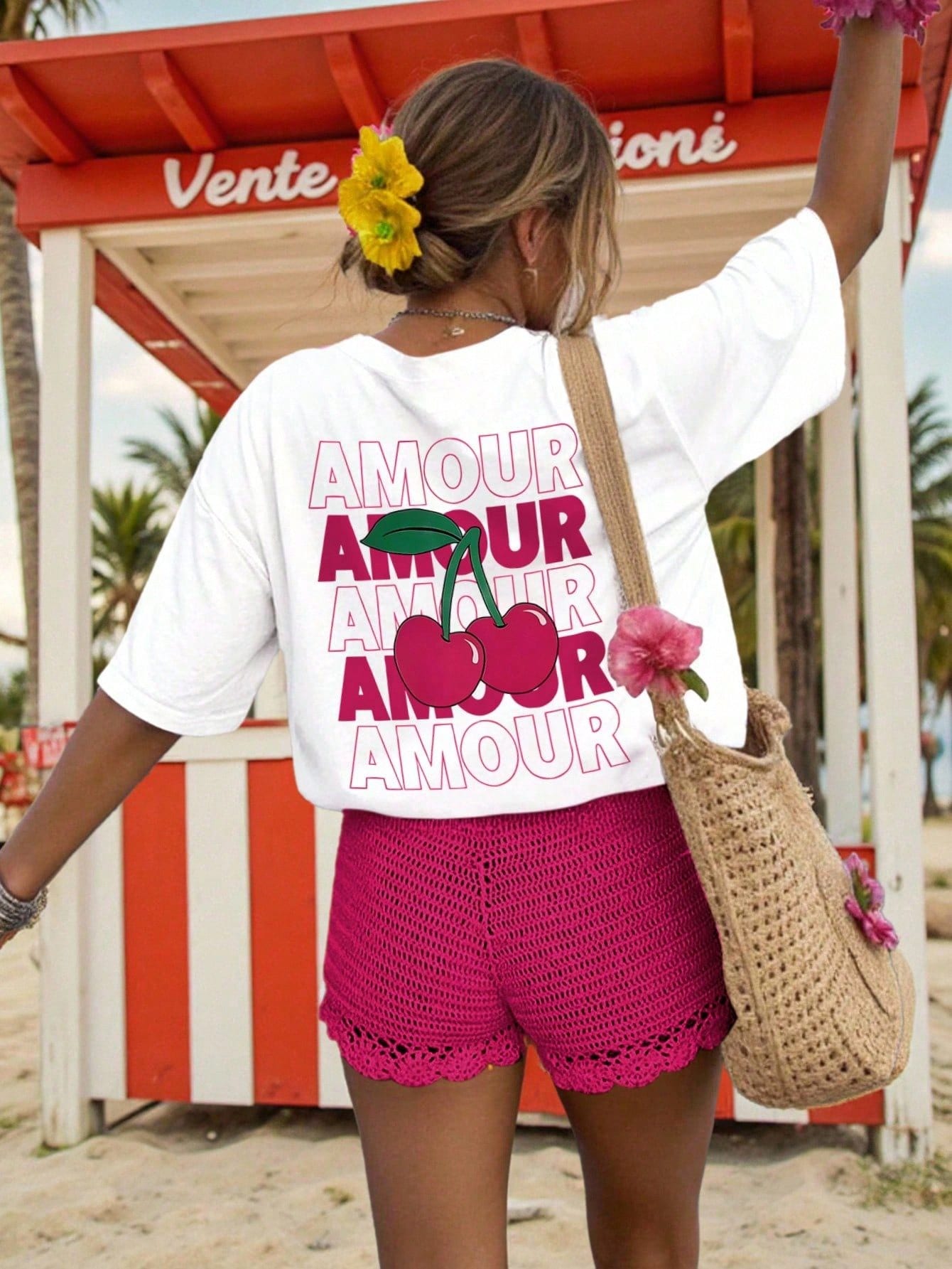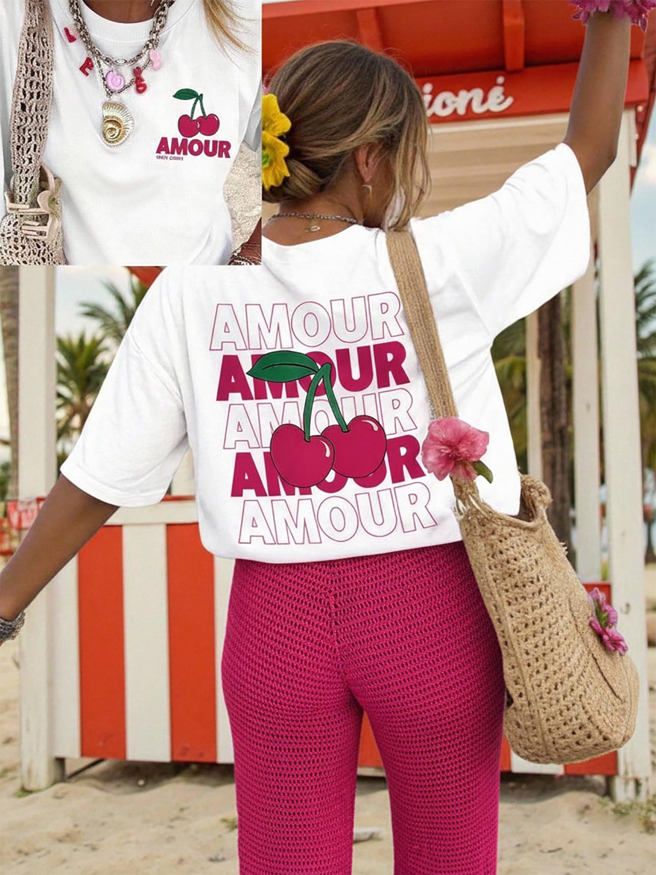 DrmWander Plus Size Cherry Letter Print Round Neck Short Sleeve T-Shirt
