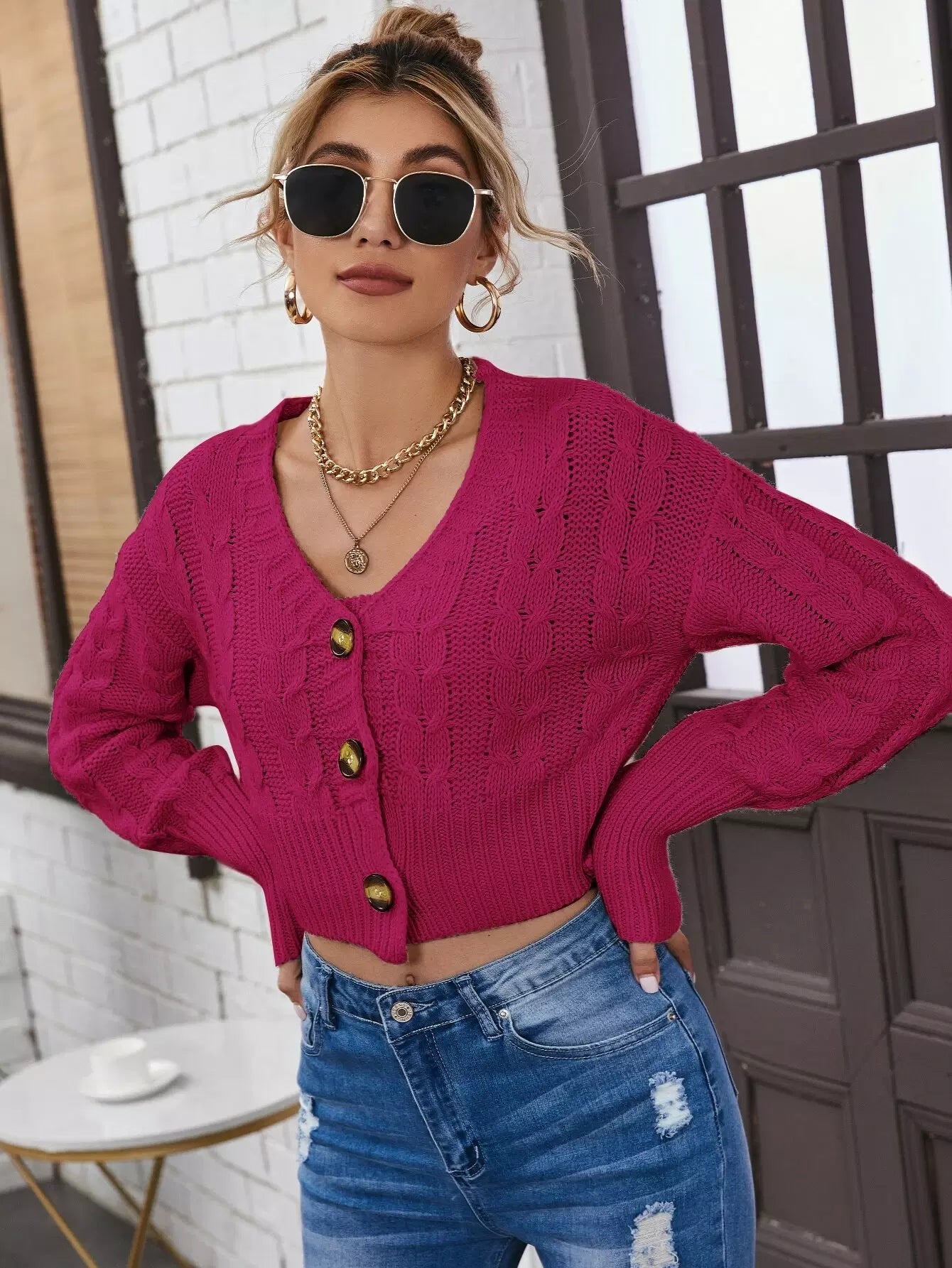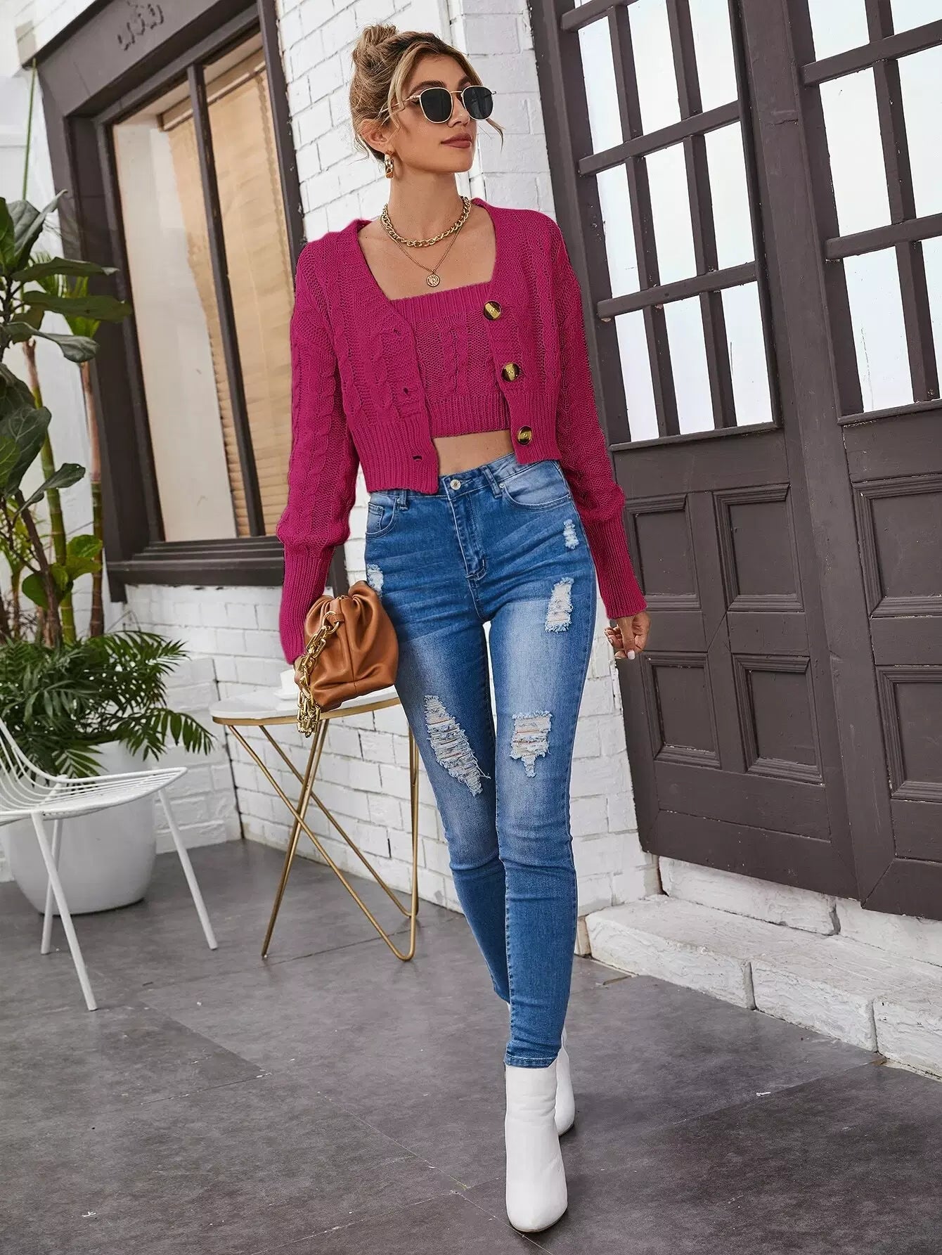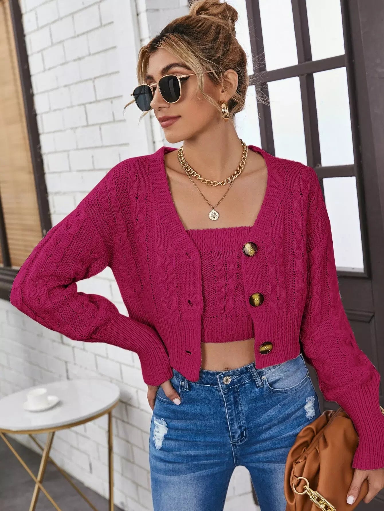 Drop Shoulder Cable Knit Cardigan & Camisole Set