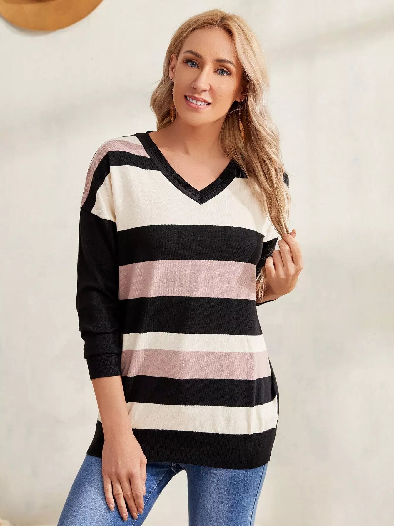 Drop Shoulder Colorblock Sweater