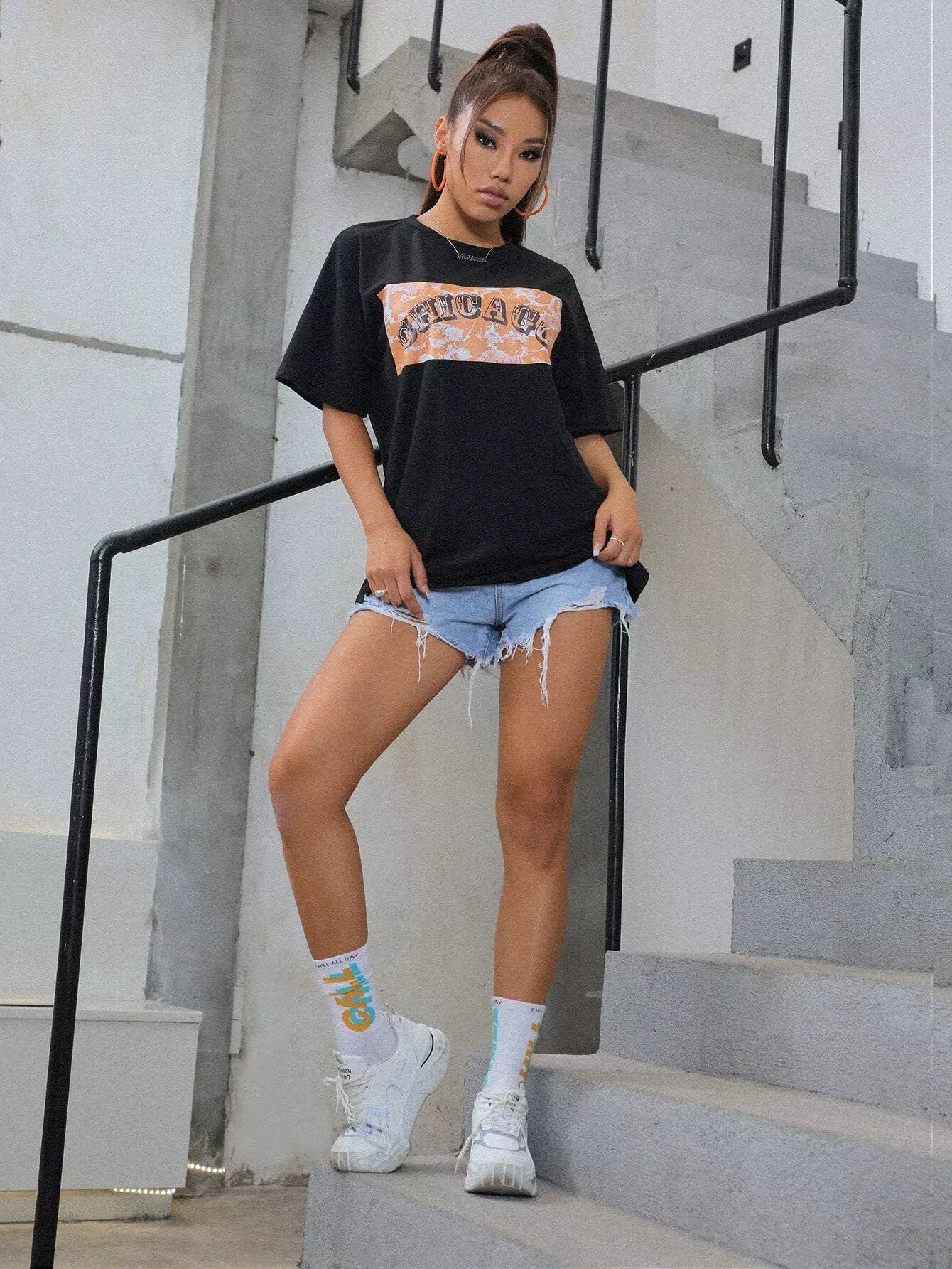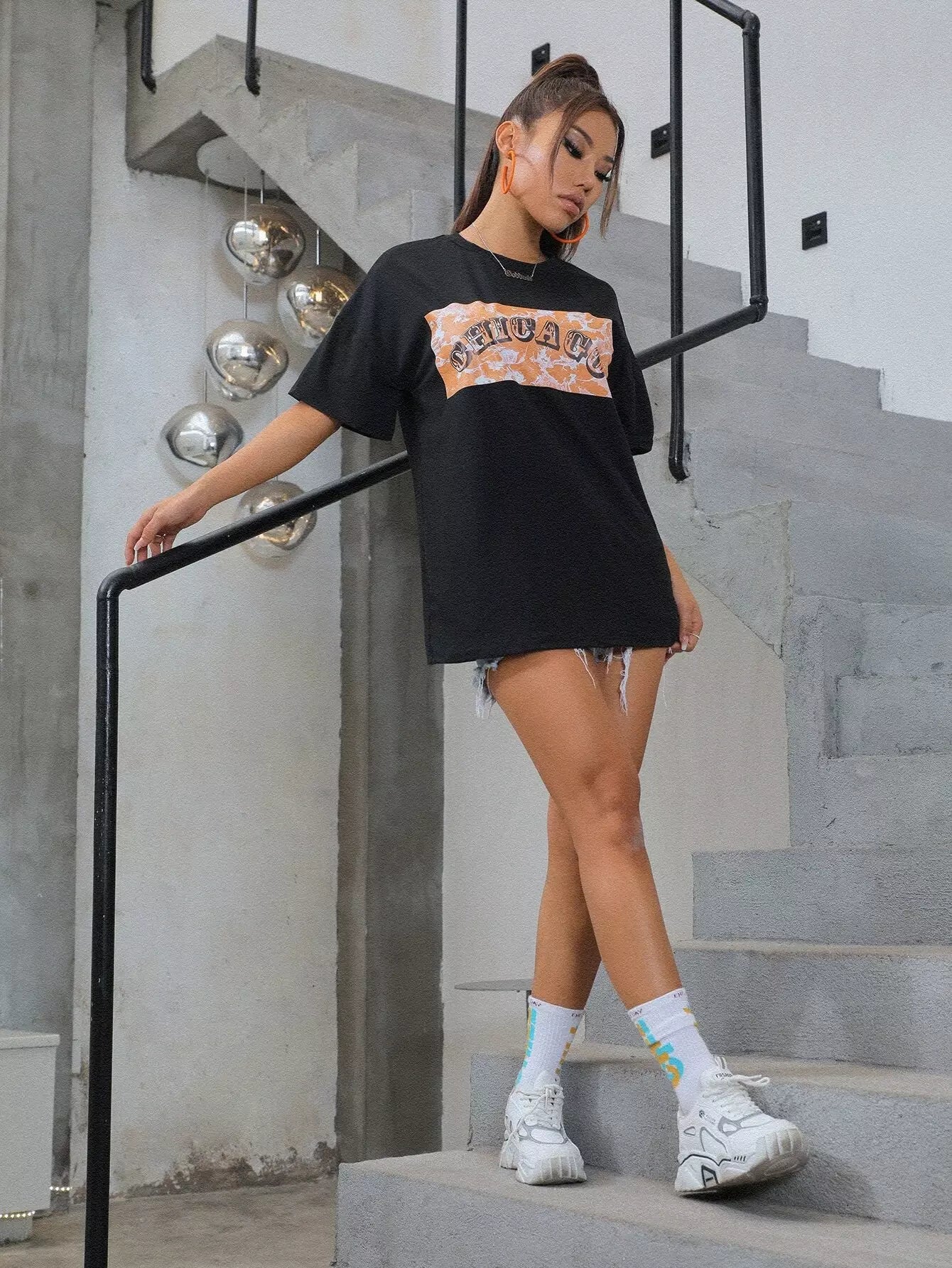 Drop Shoulder Letter Graphic Oversize Tee