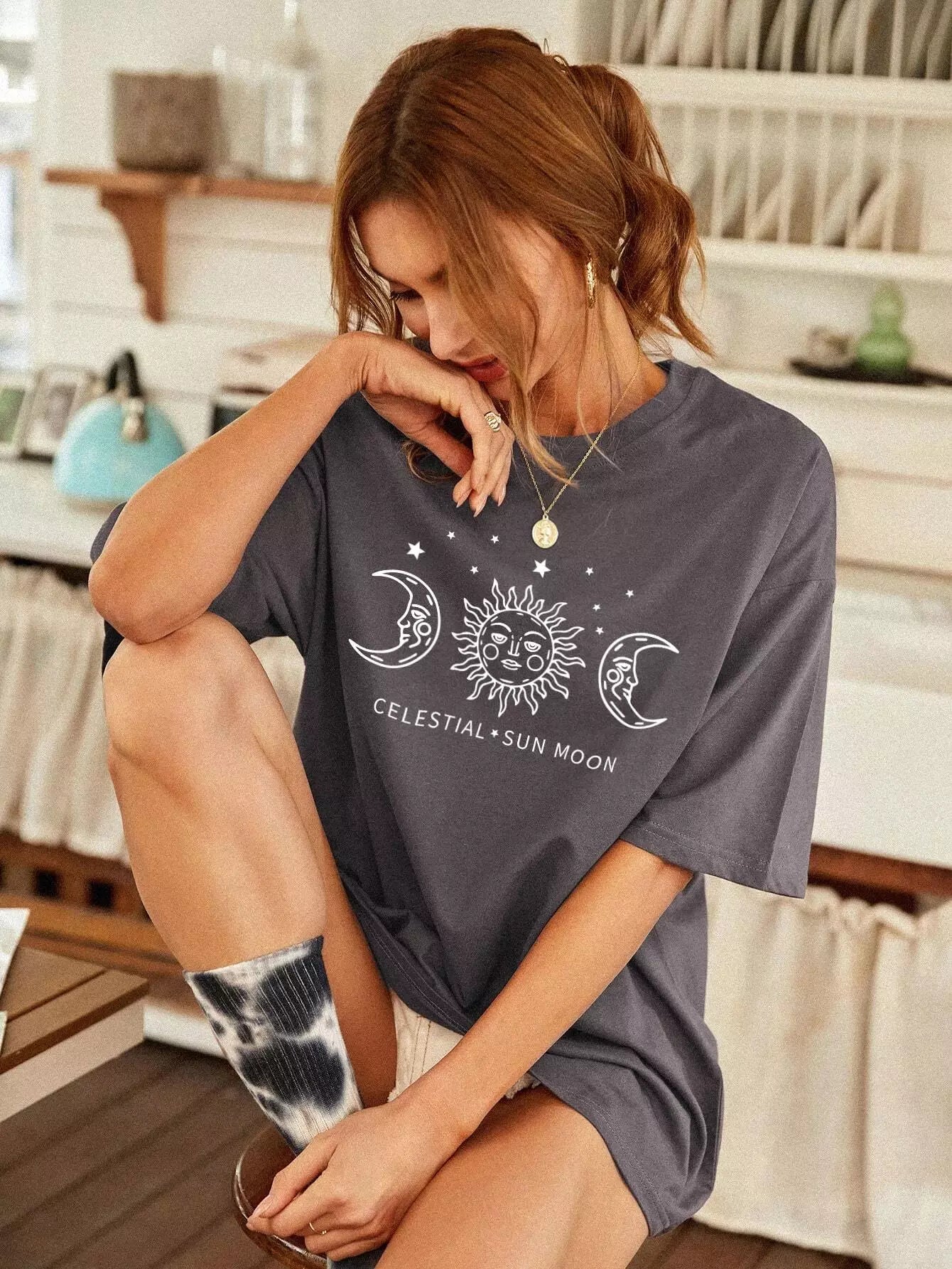 Women - Drop Shoulder Letter Graphic Oversized Tee