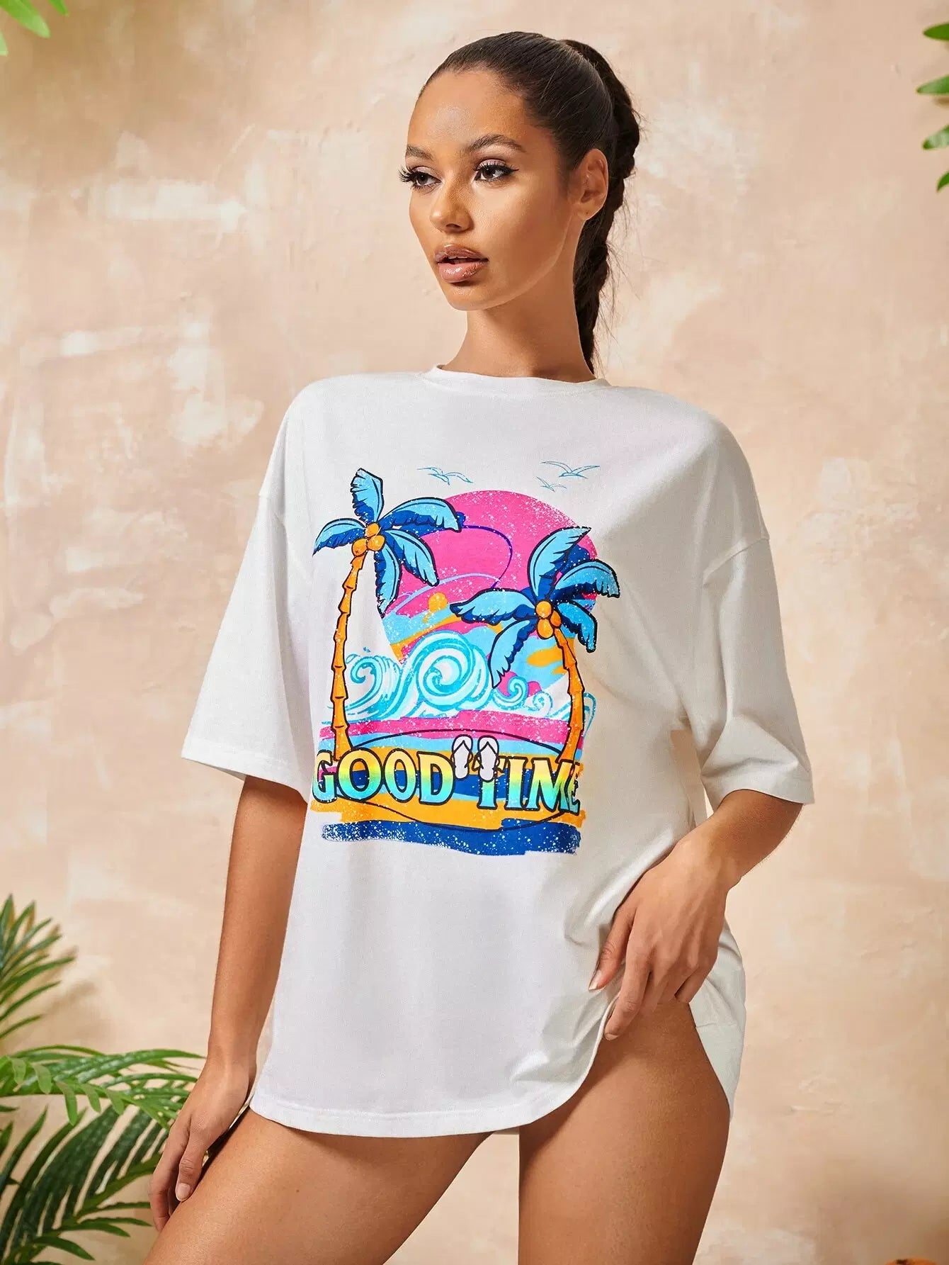Drop Shoulder Letter & Graphic Print Longline Tee