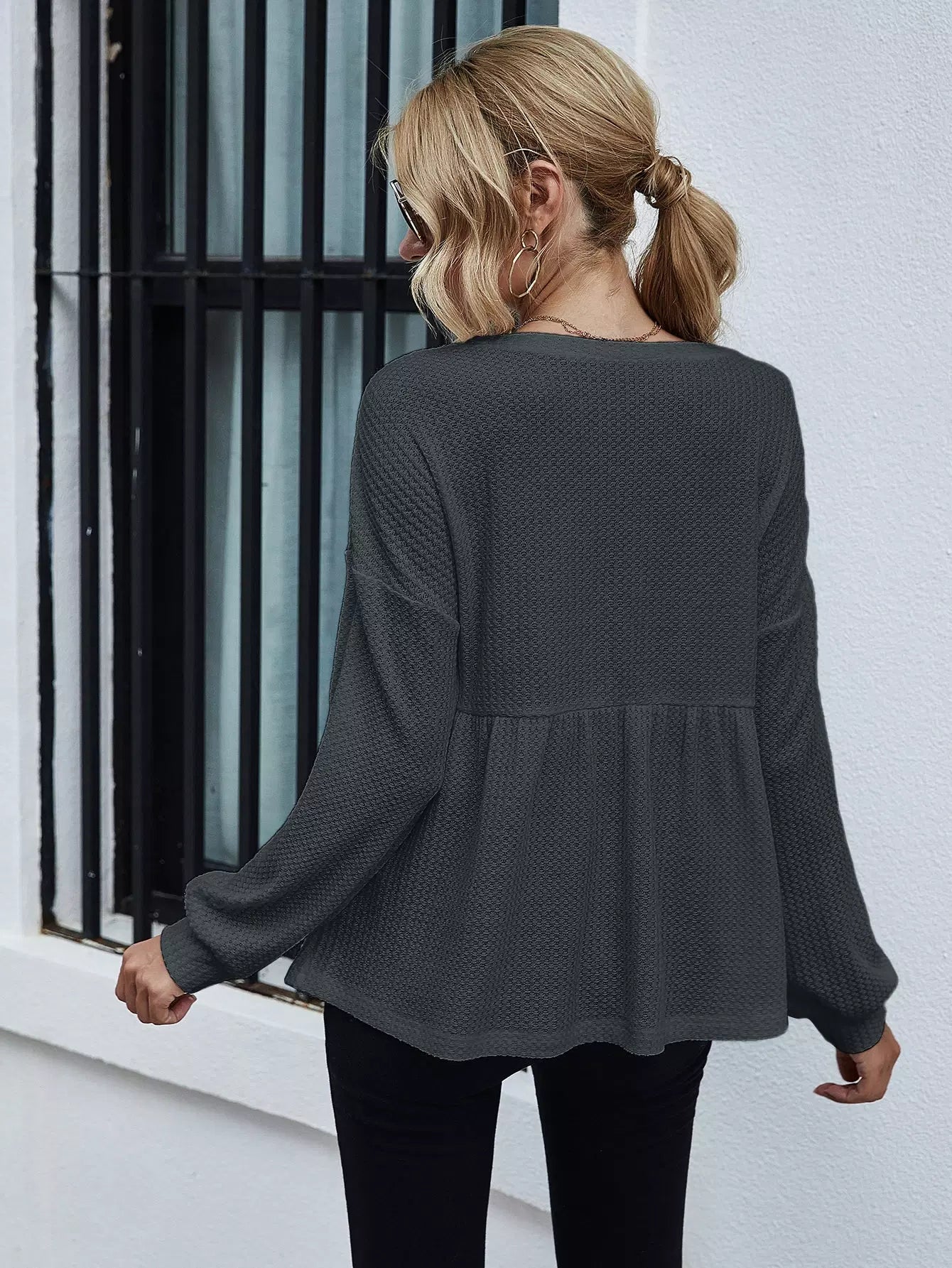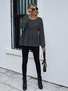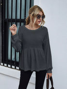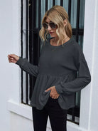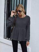 Drop Shoulder Ruffle Hem Tee