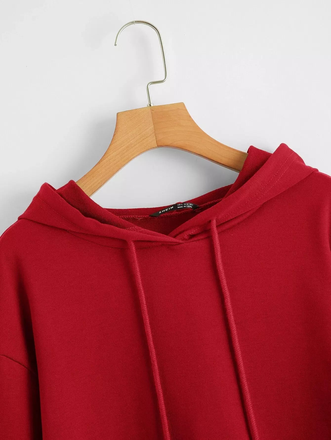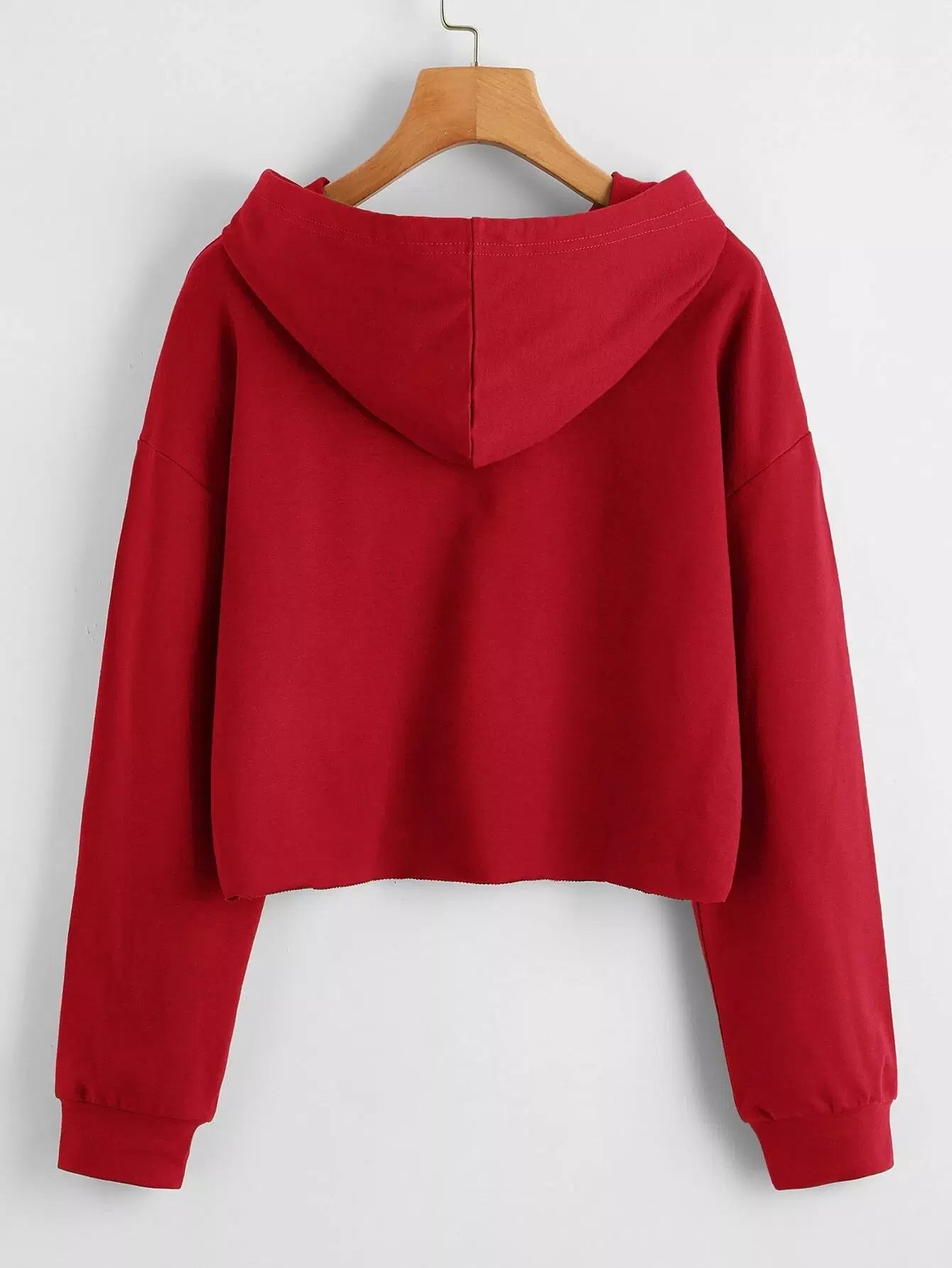 Drop Shoulder Solid Crop Hoodie