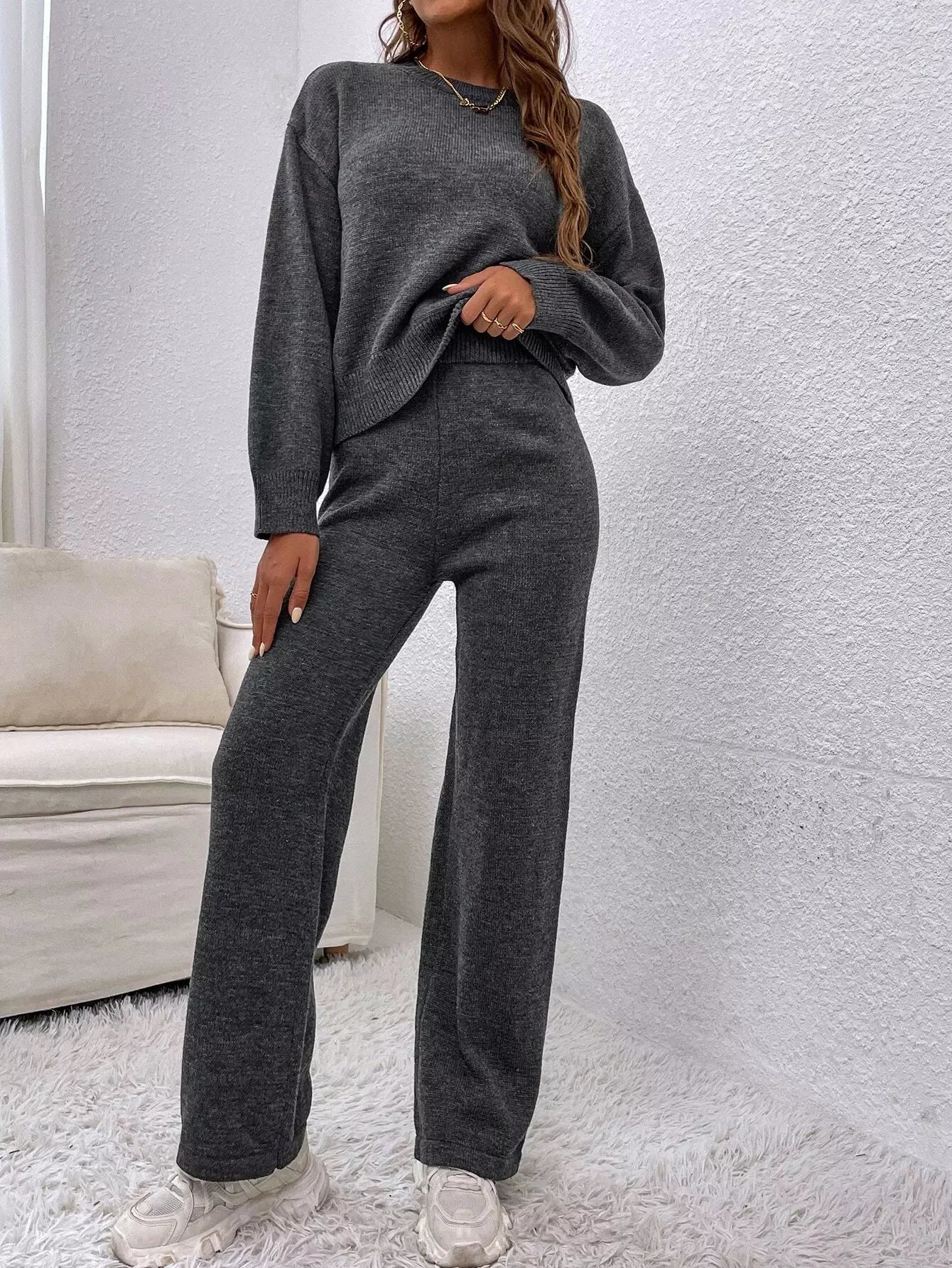 Women - Drop Shoulder Sweater & Knit Pants