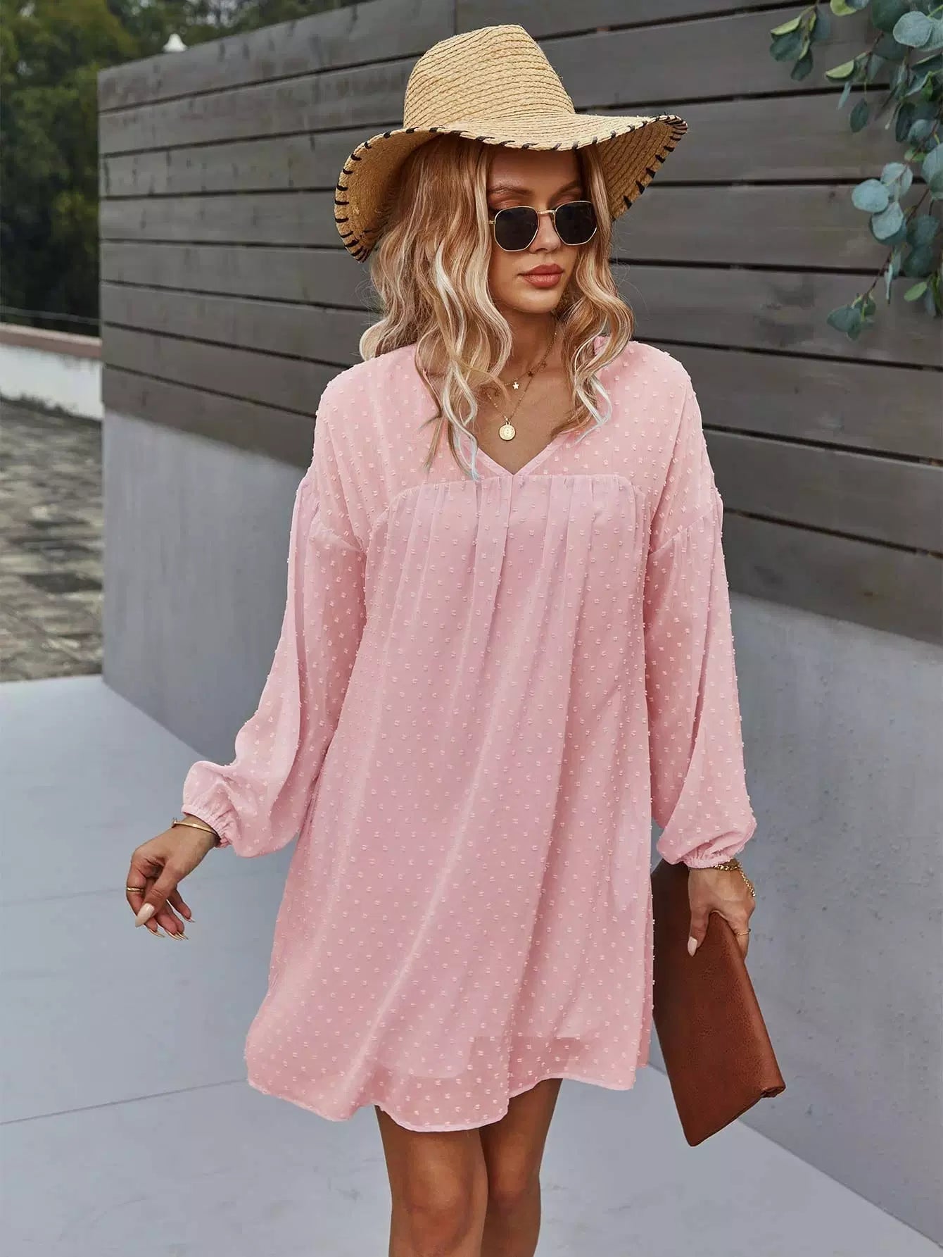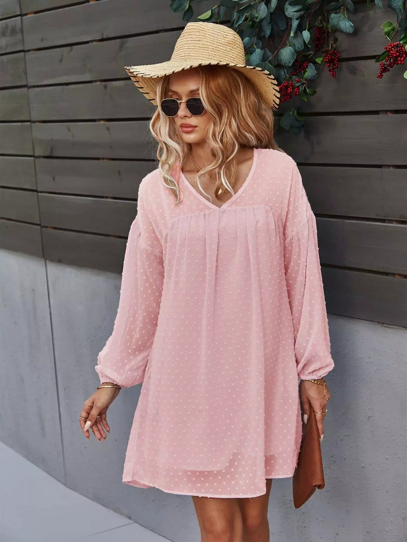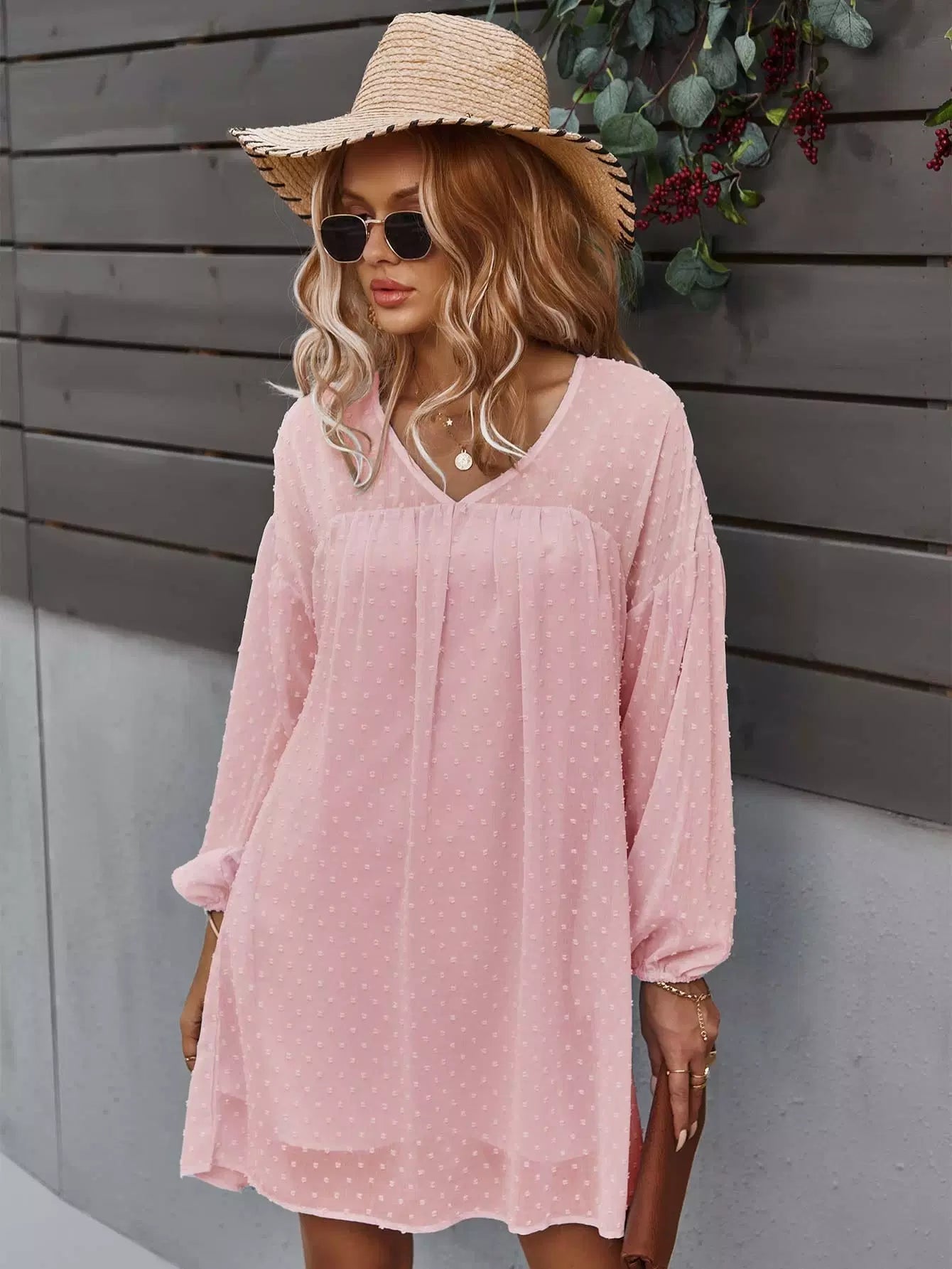 Drop Shoulder Swiss Dot Smock Dress