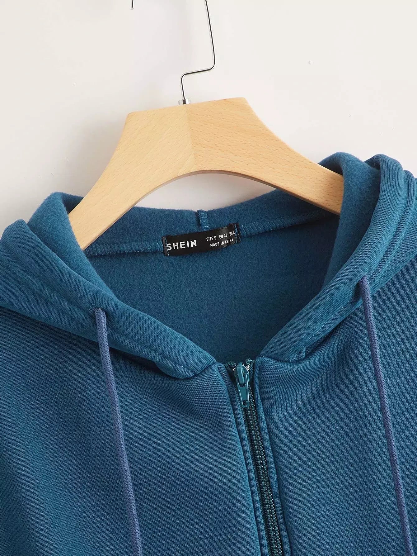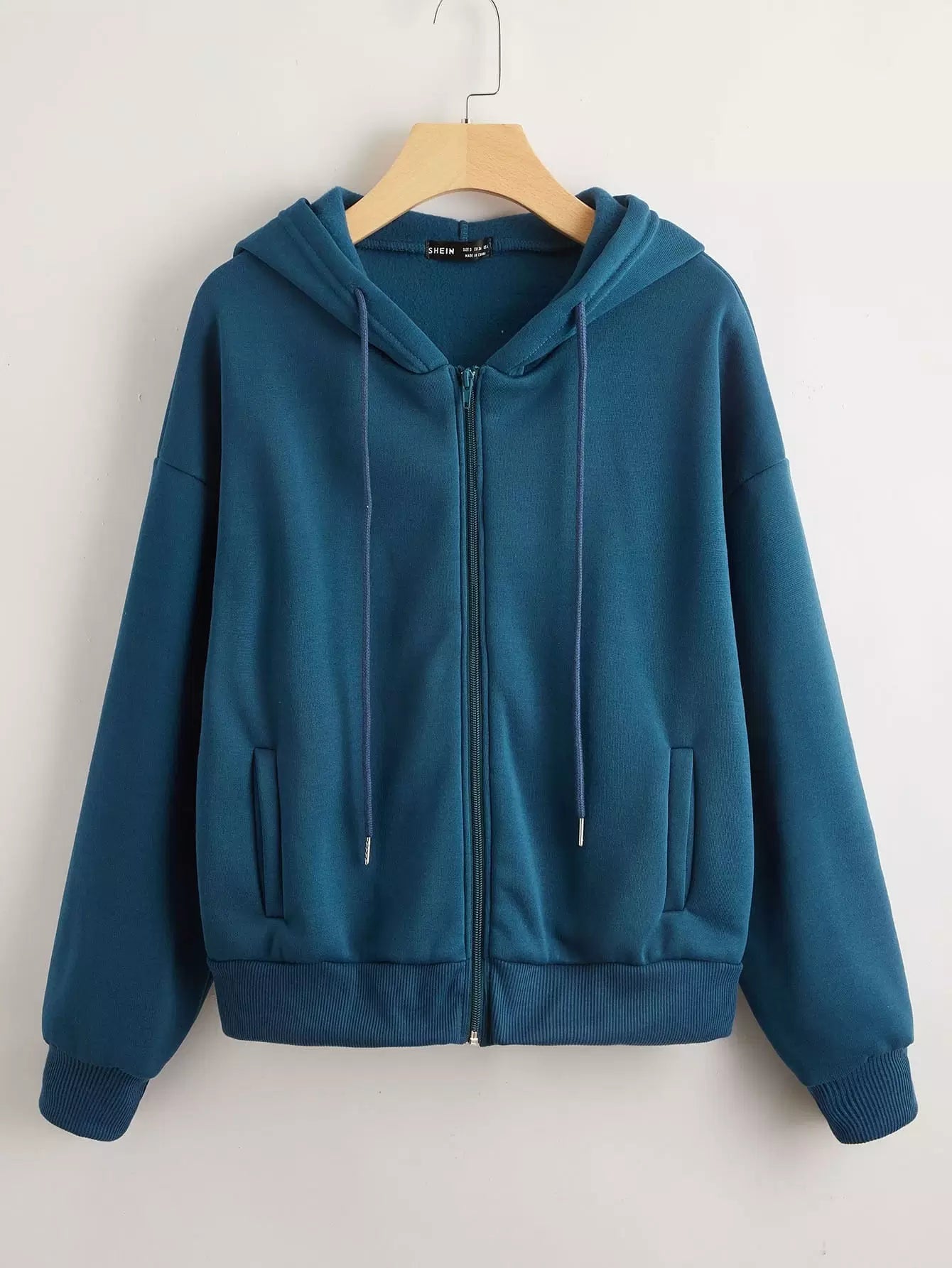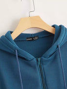 Drop Shoulder Zip Up Drawstring Hoodie