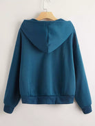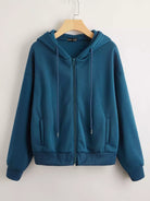 Women - Drop Shoulder Zip Up Drawstring Hoodie