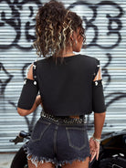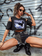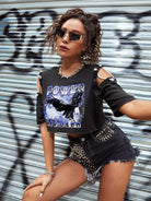 Eagle & Letter Graphic Cold Shoulder Rope Detail Tee
