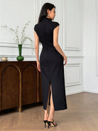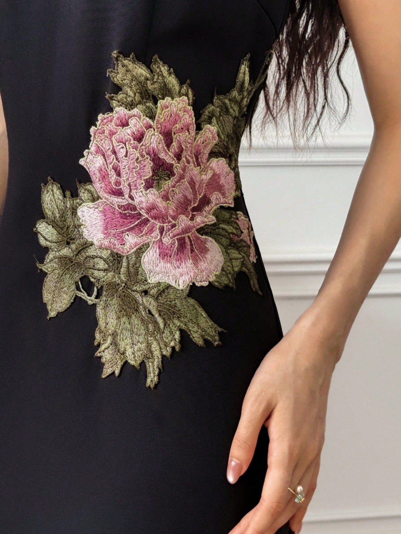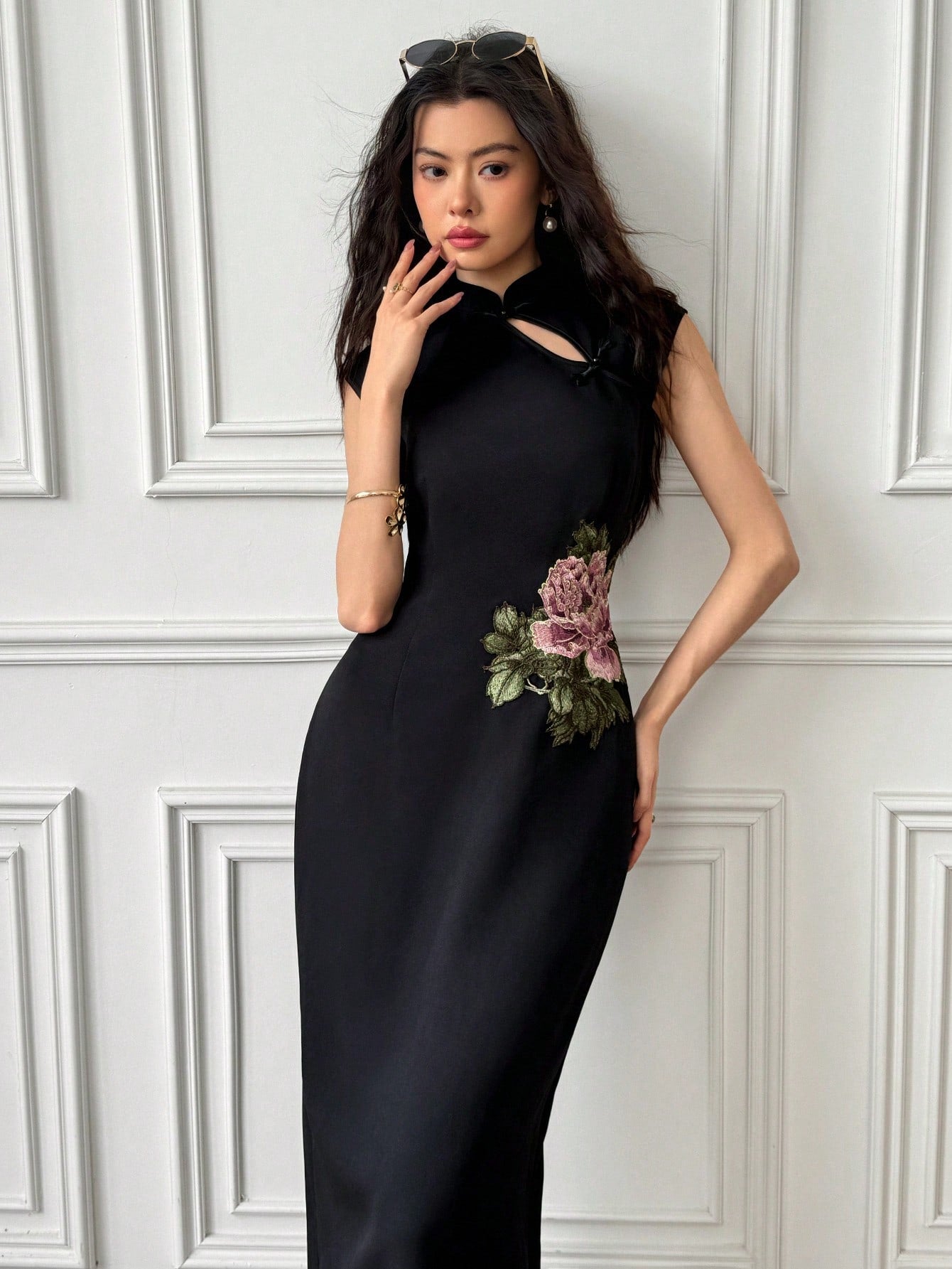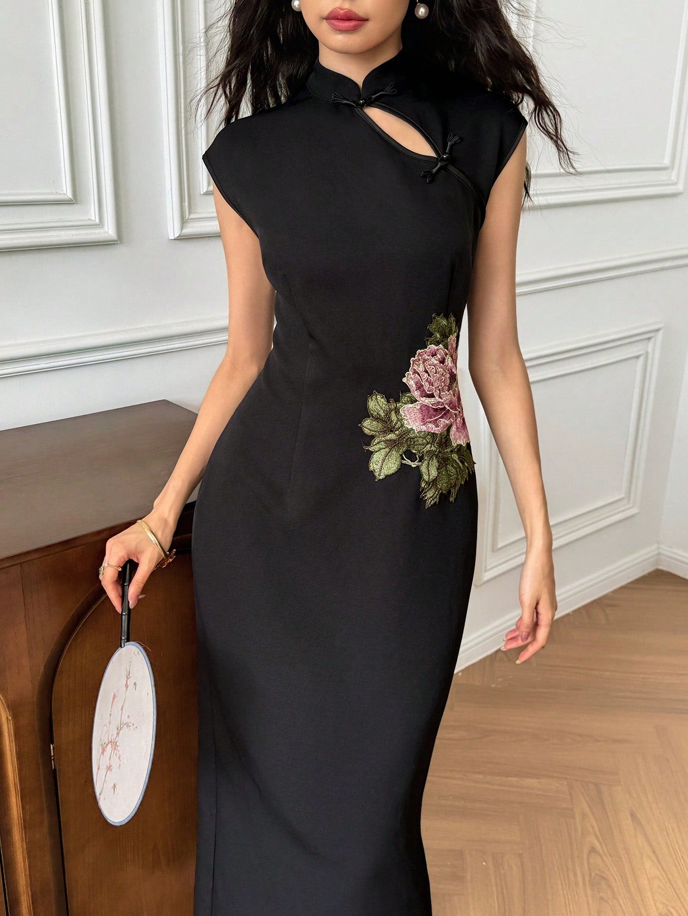 EastFlair Women's Floral Printed Button Design Chinese Style Elegant Long Dress Cheongsam Dress Black