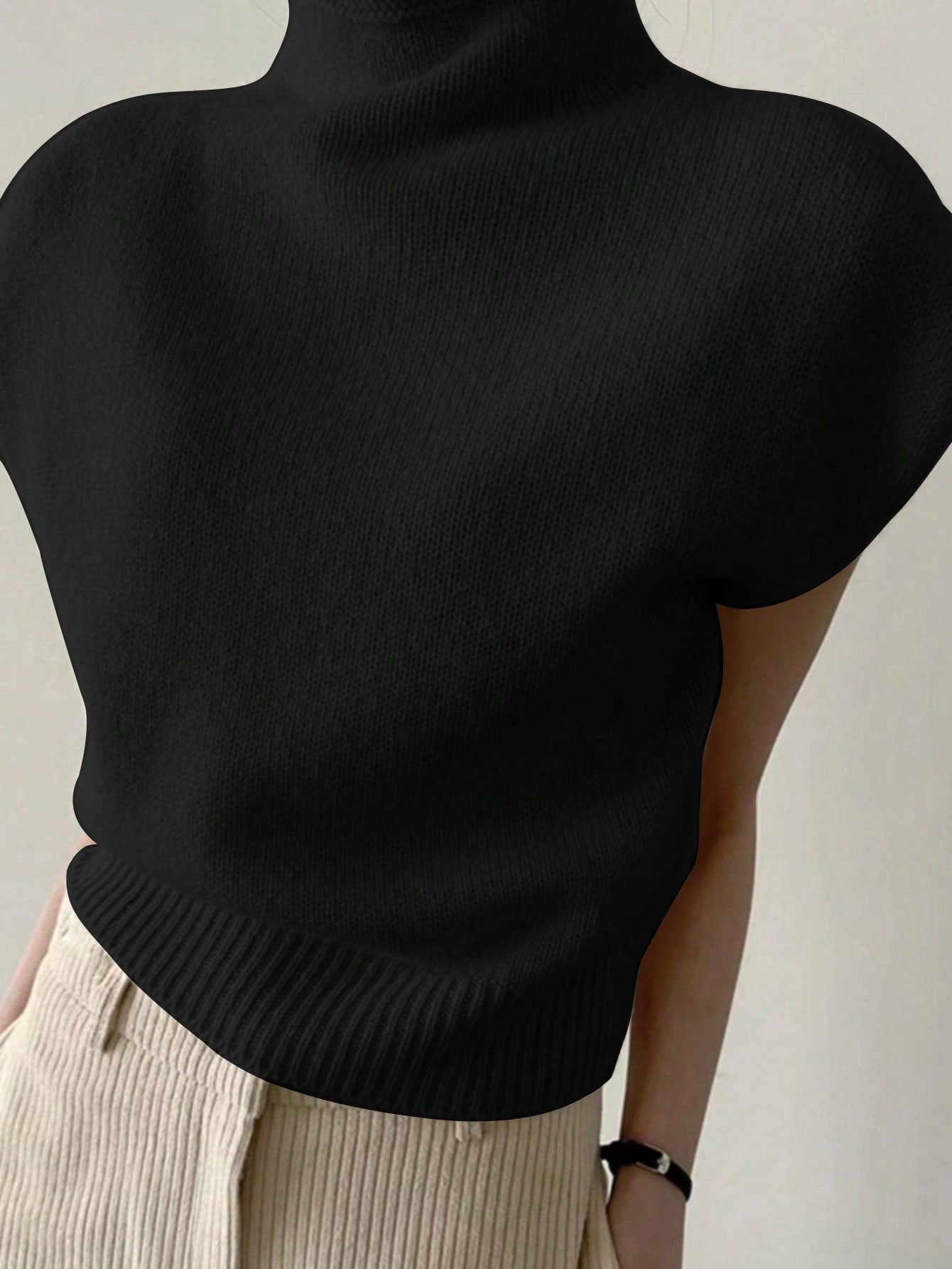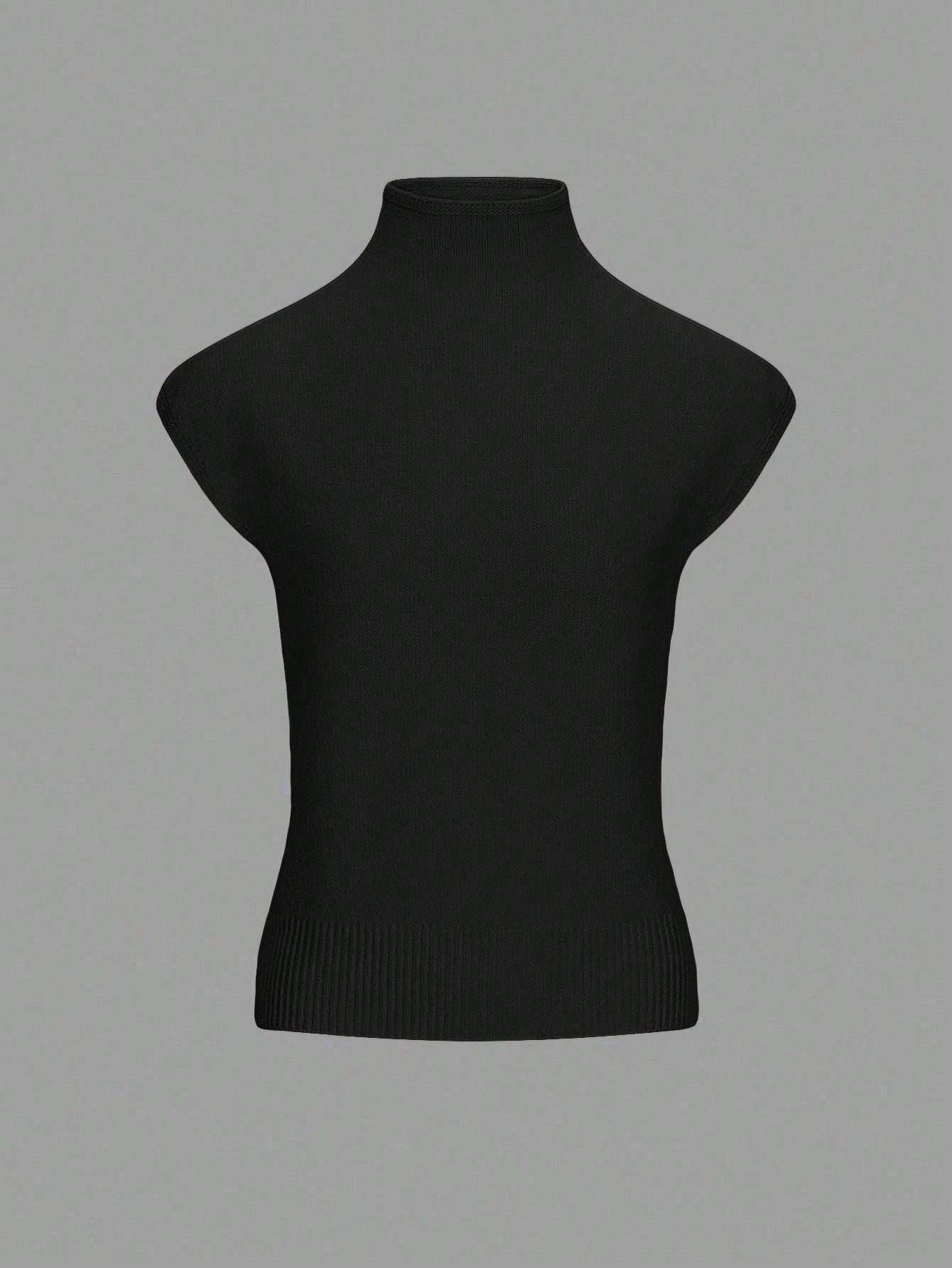 EAVA Women's Winter French-Inspired Elegant High-Neck Sweater Vest Retro Old Money Style Loose-Fit Casual Versatile Sleeveless Knit Sweater Vest