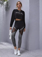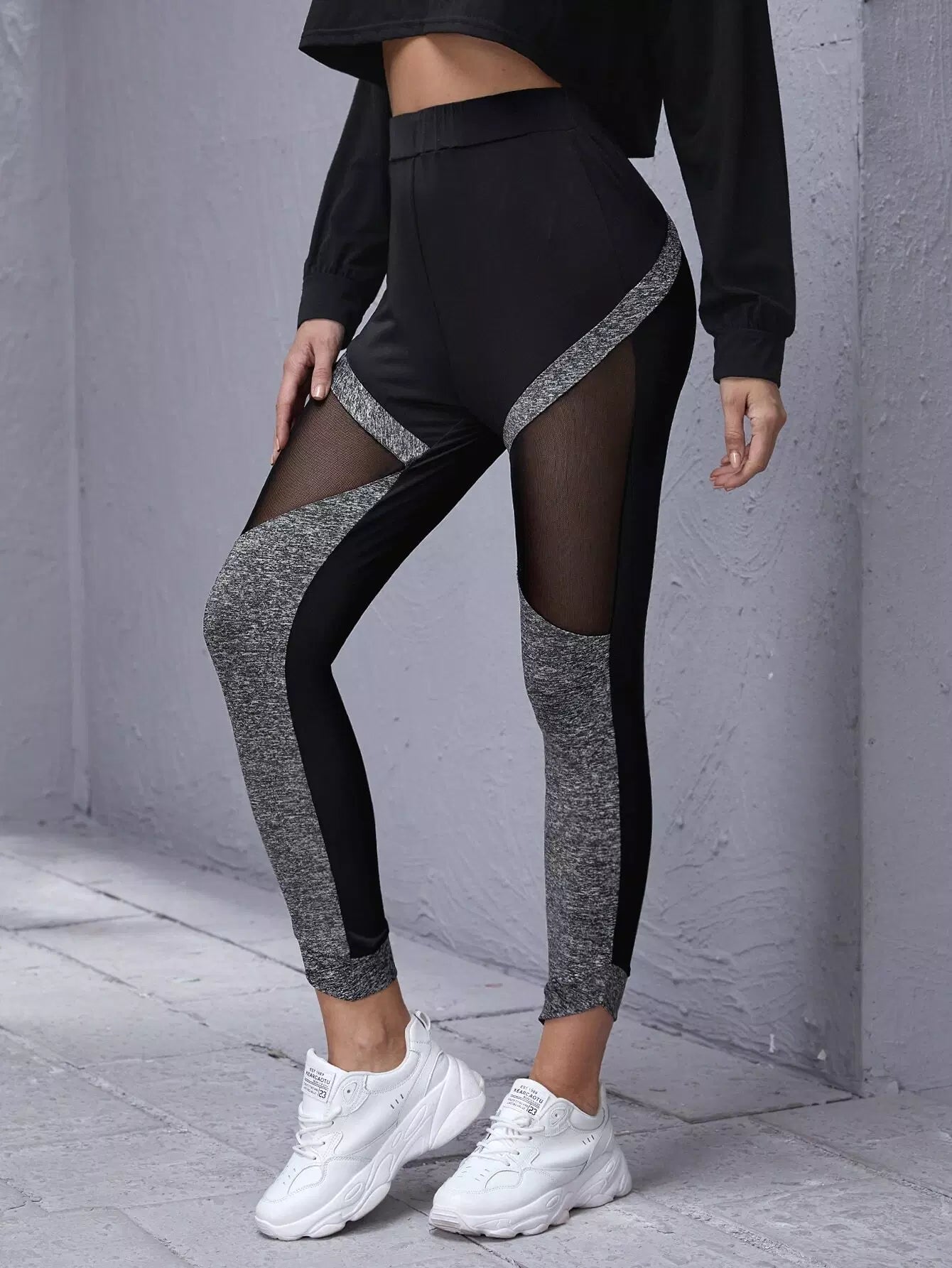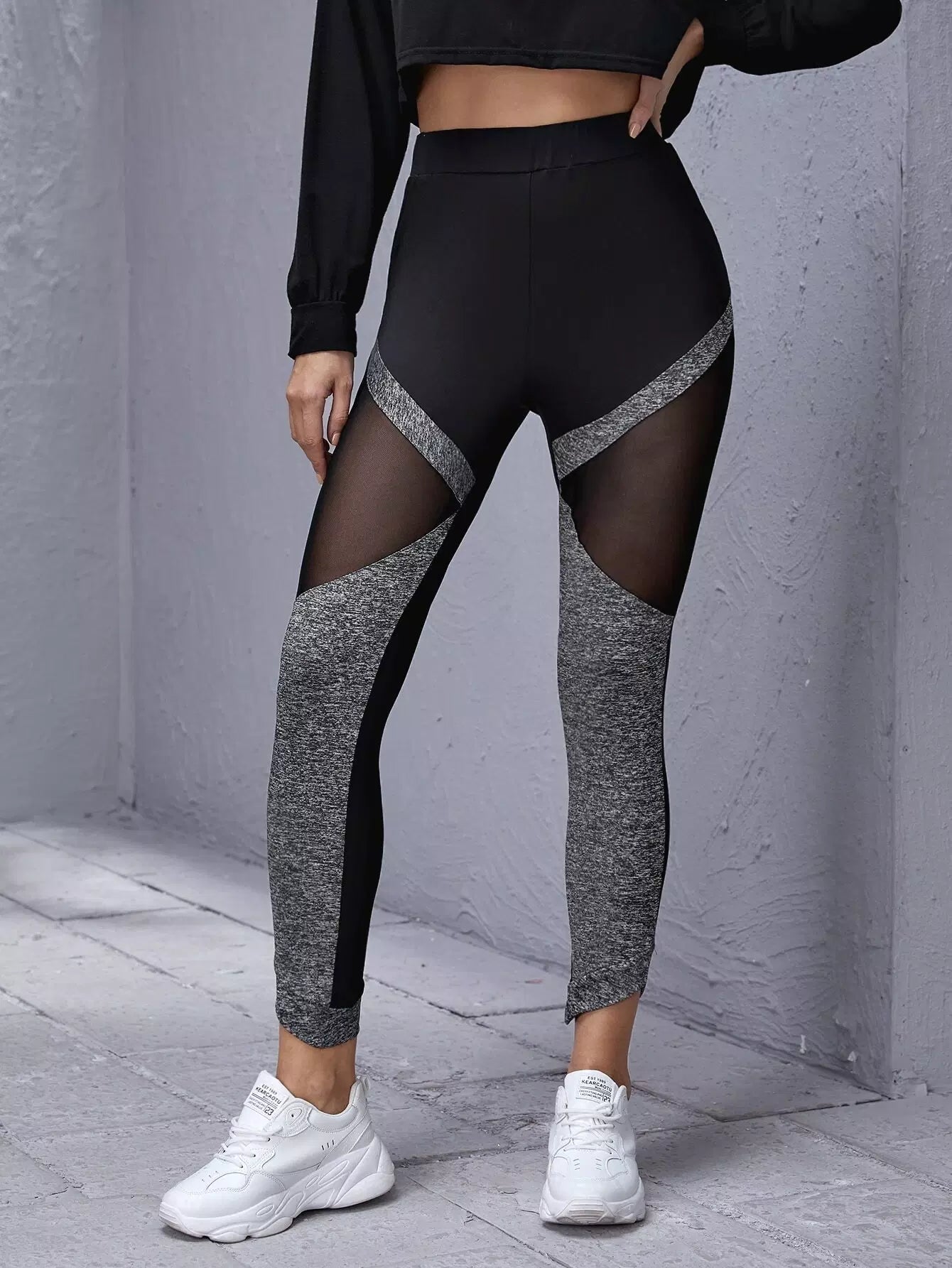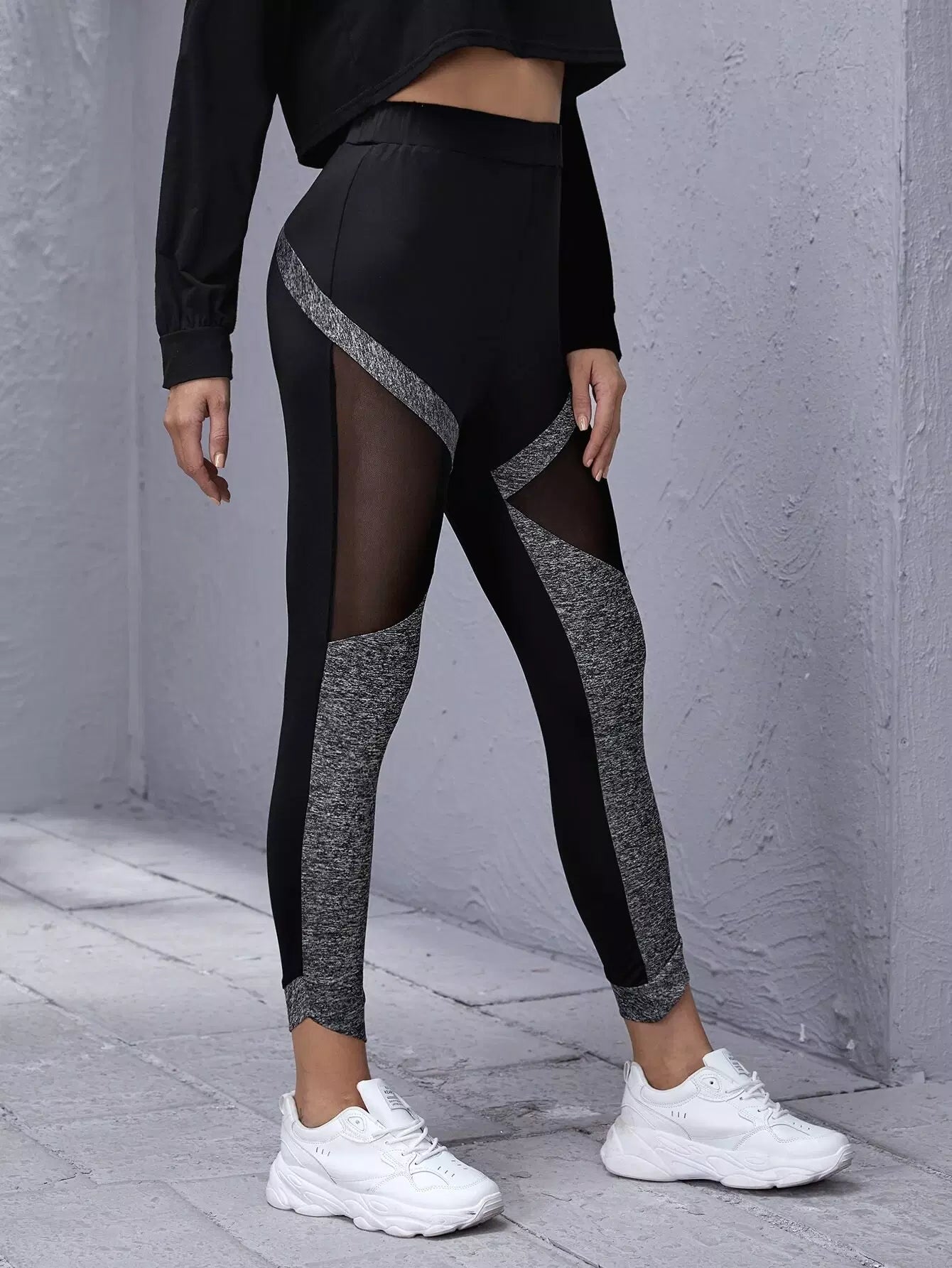 Elastic Waist Sheer Mesh Insert Colorblock Leggings