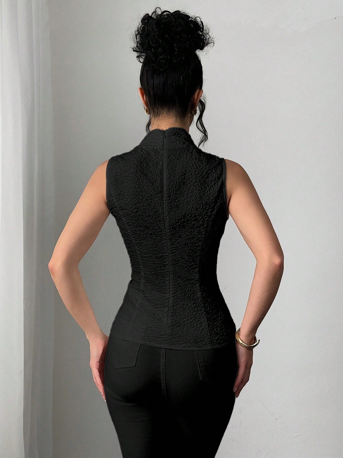 Elenzga Elegant Solid Color Chinese Collar Cinched Waist Front Tie Tank Top