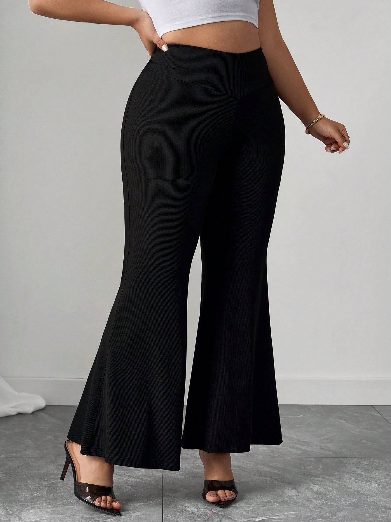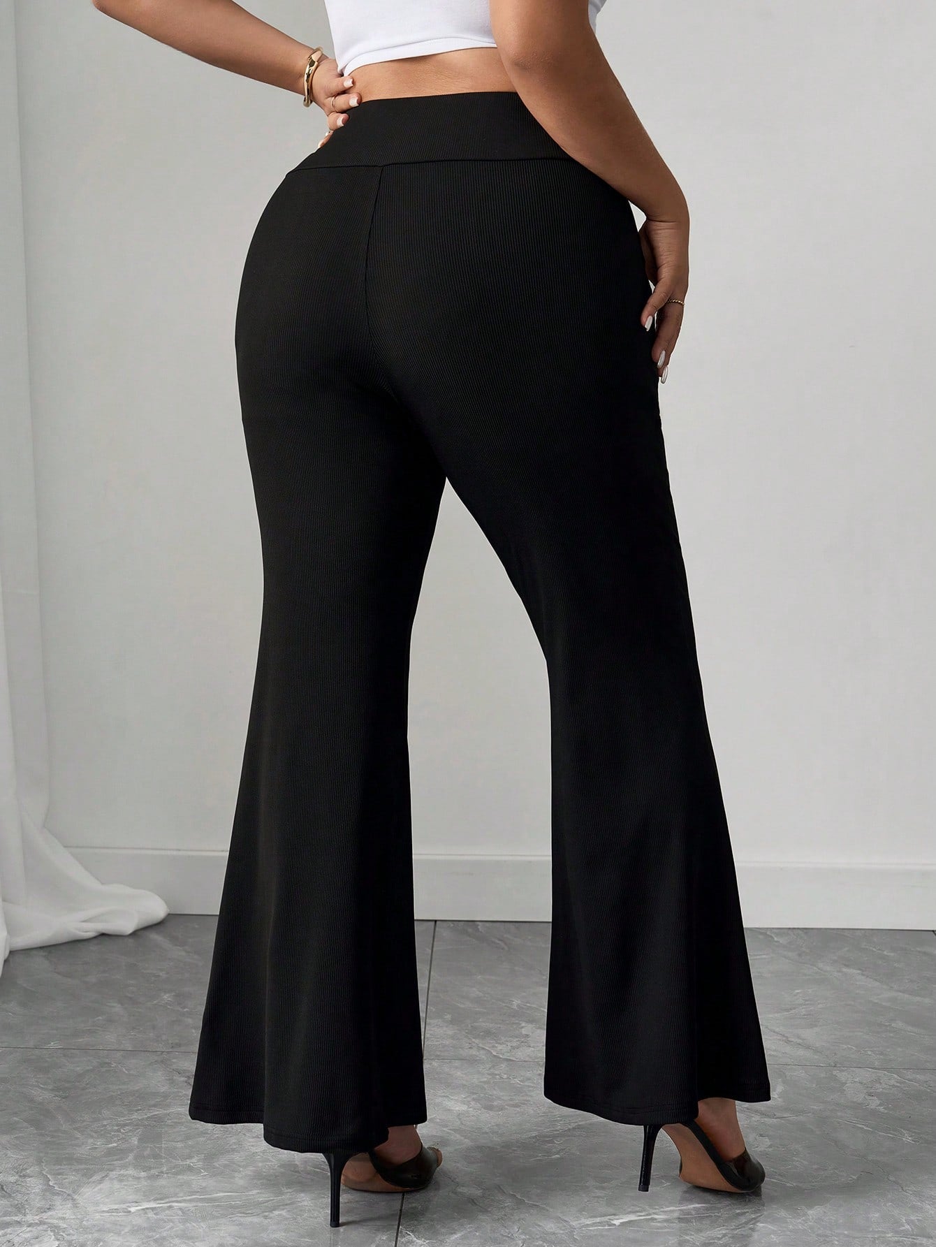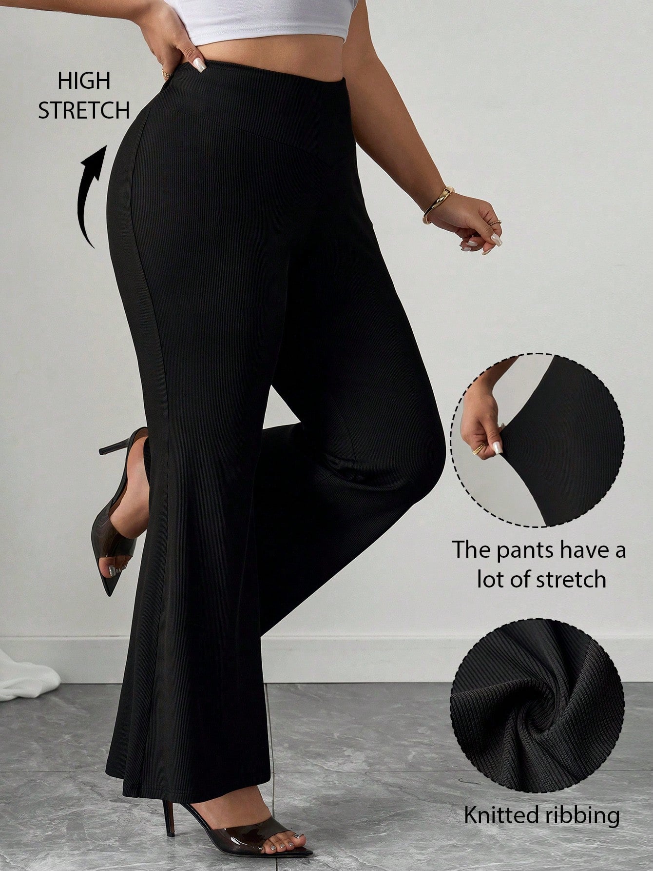 Elenzga Plus Size Women's New Asymmetric Waist Flared Knit Pants, Black, Loose And Elegant For Commuting