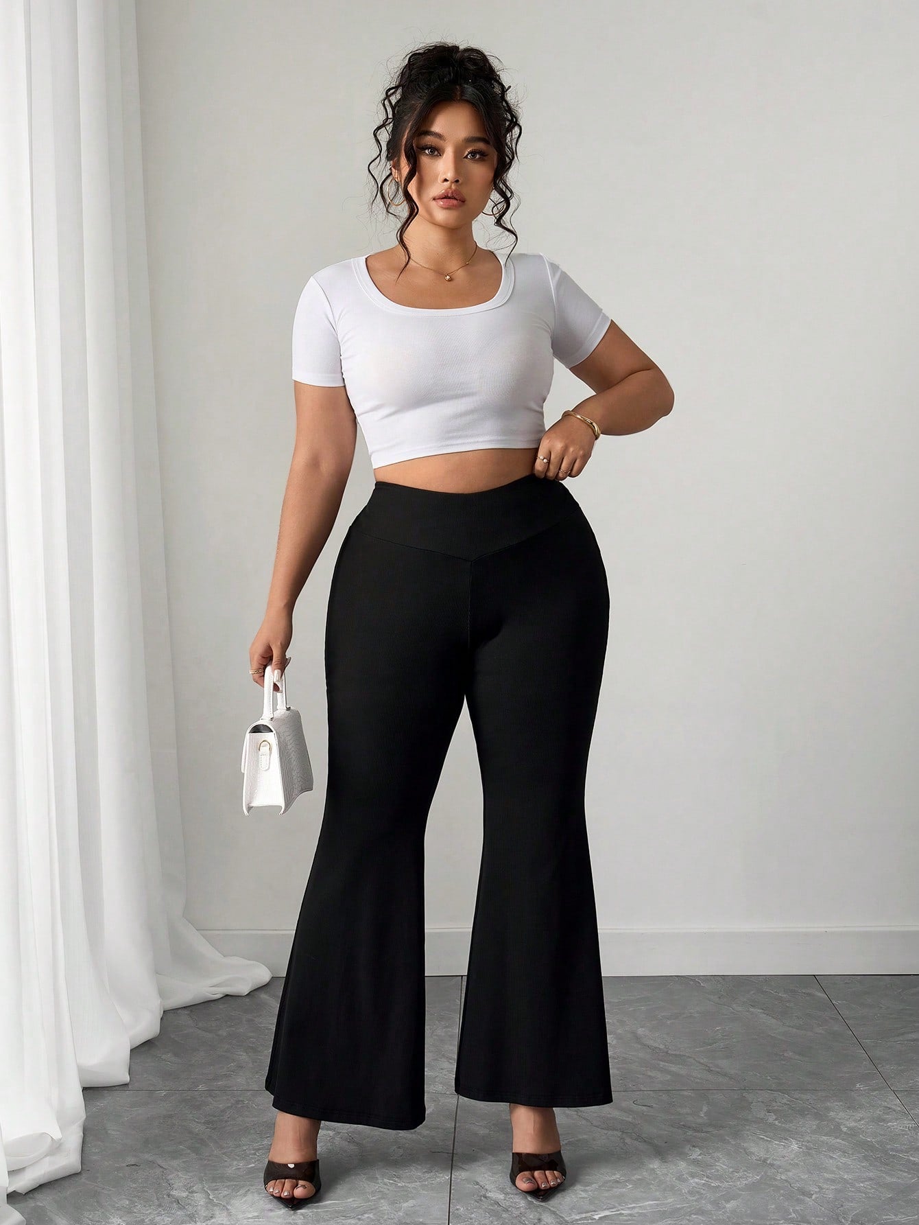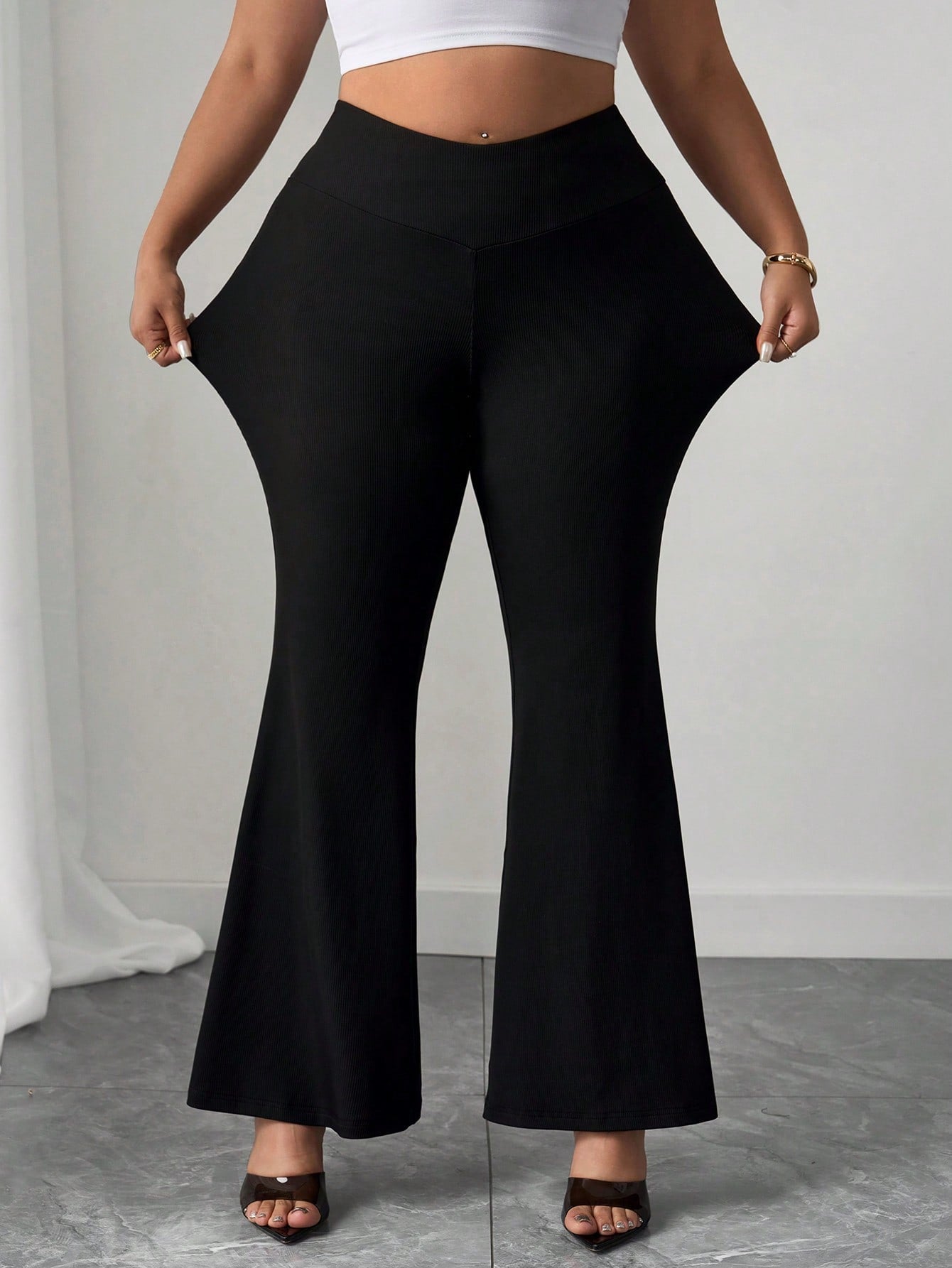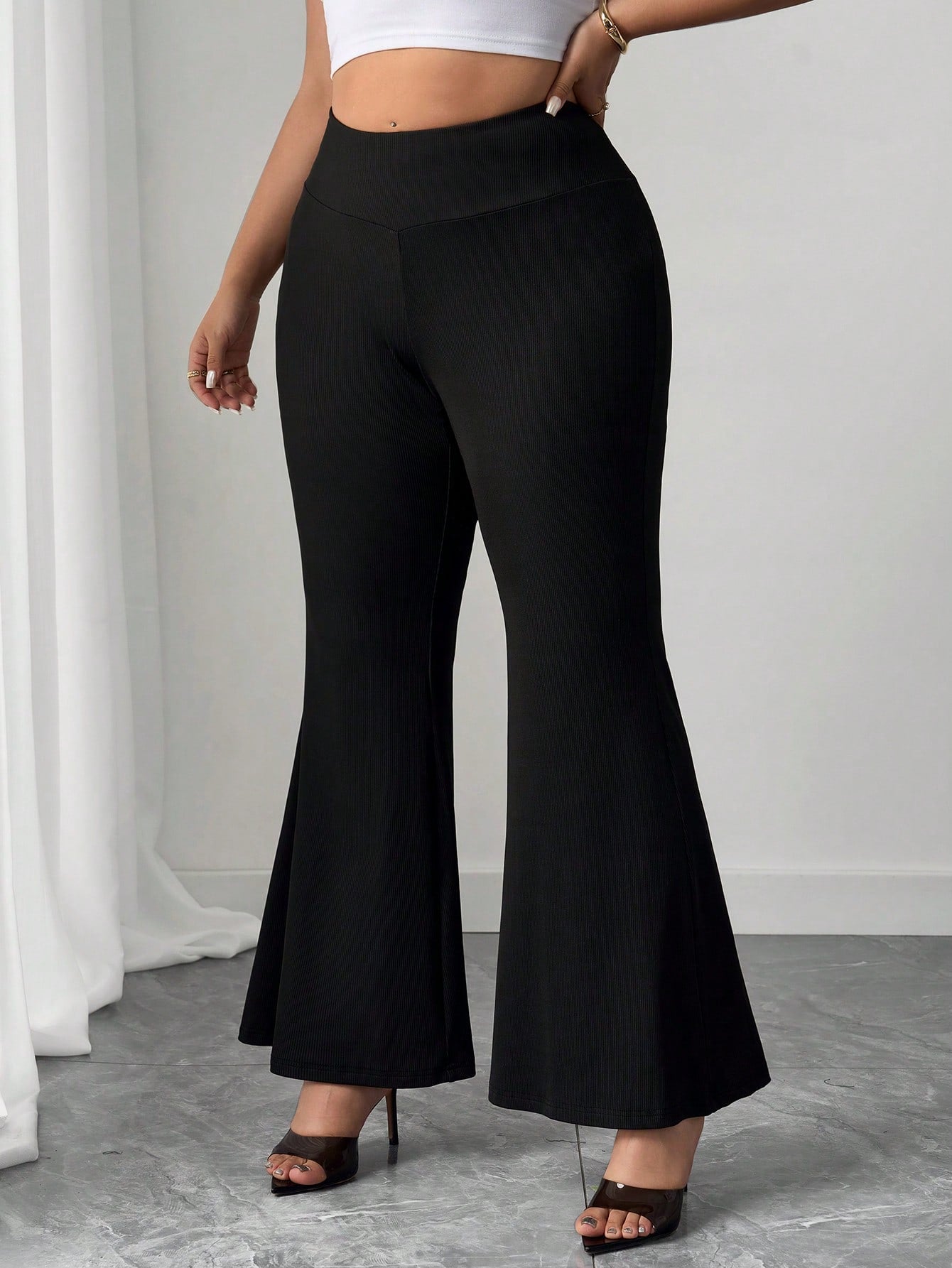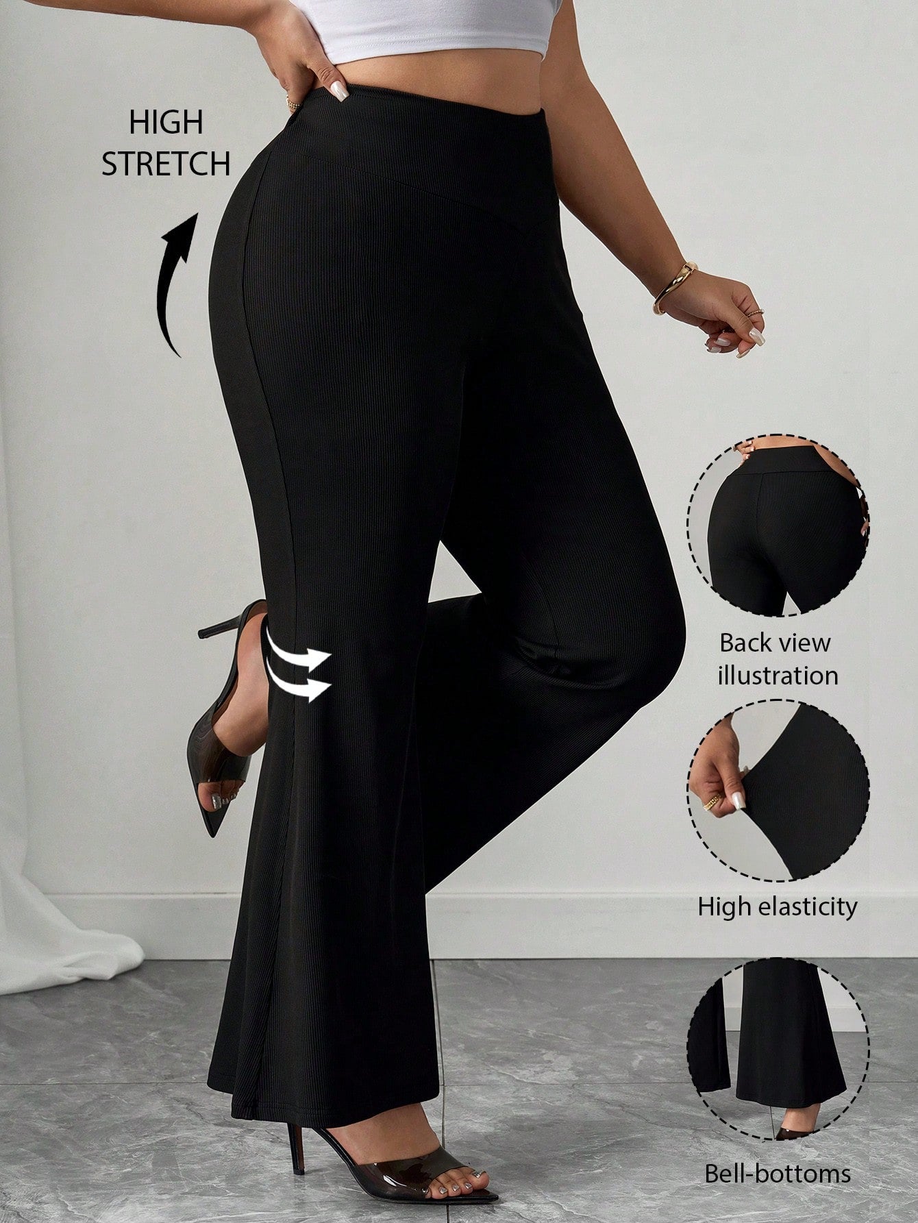 Elenzga Plus Size Women's New Asymmetric Waist Flared Knit Pants, Black, Loose And Elegant For Commuting