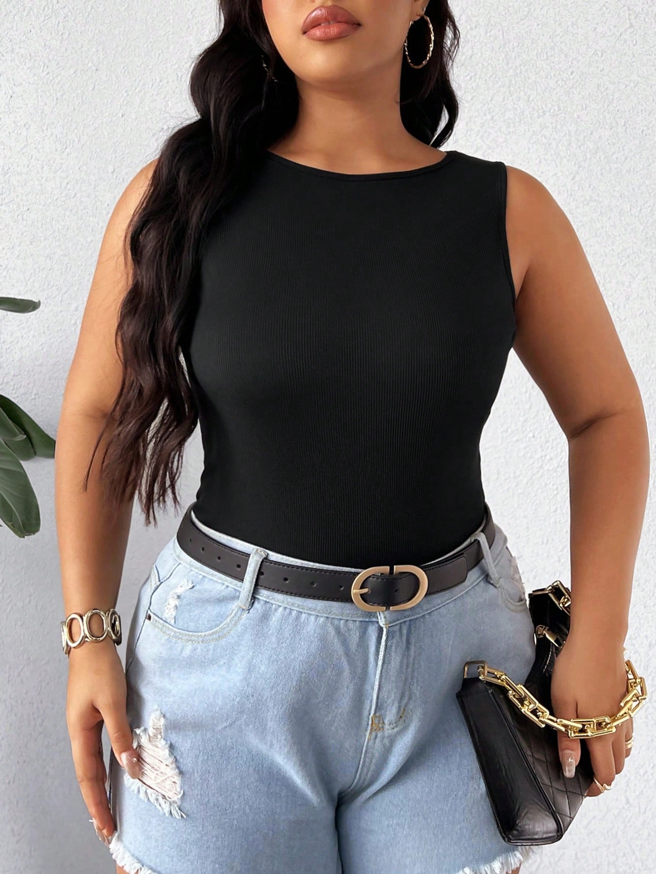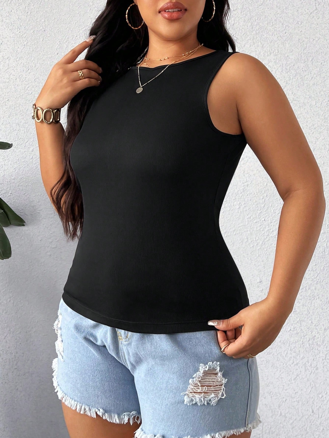 Elenzga Plus Size Women's Summer Solid Color Slim Fit Round Neck Top