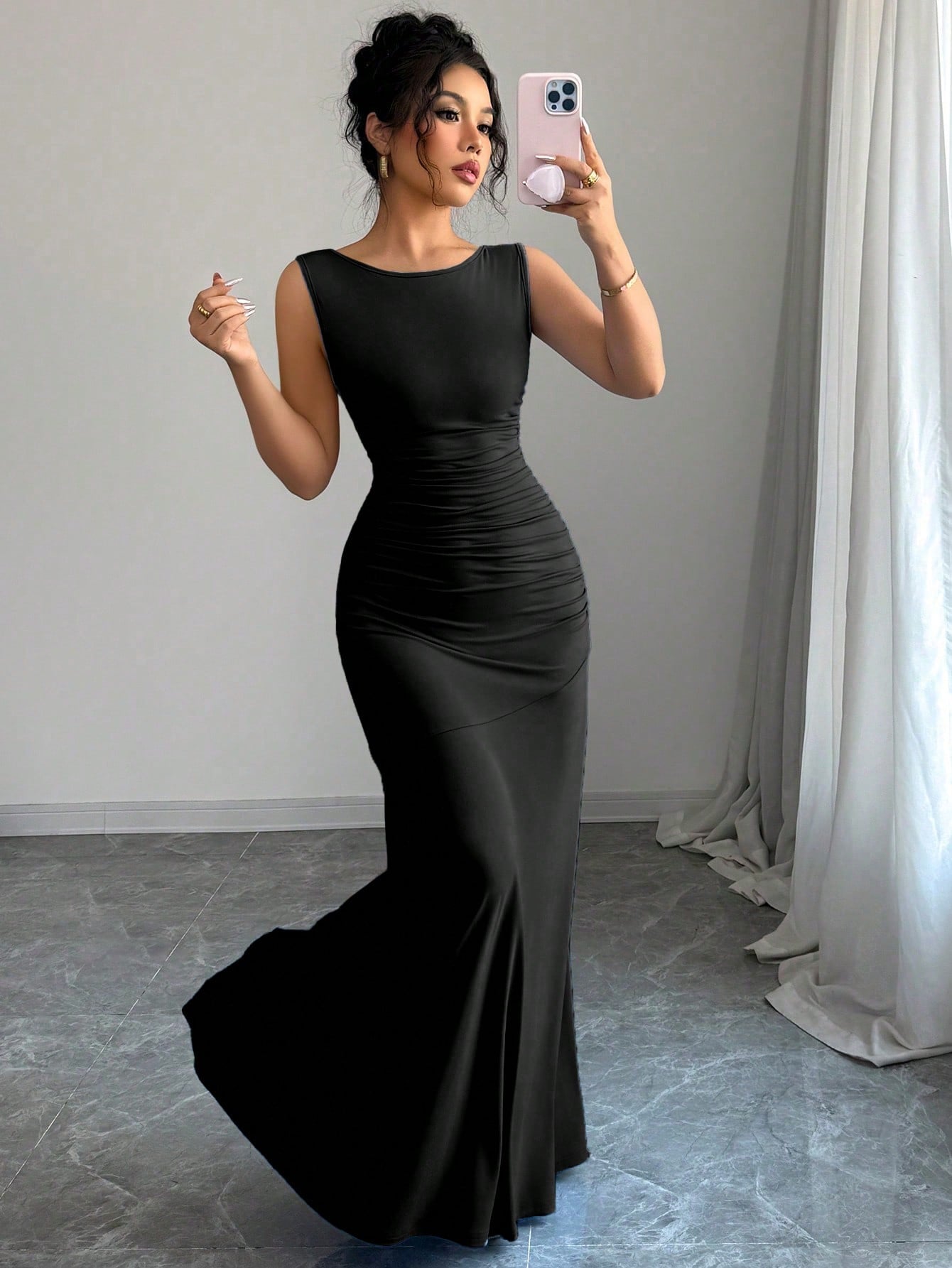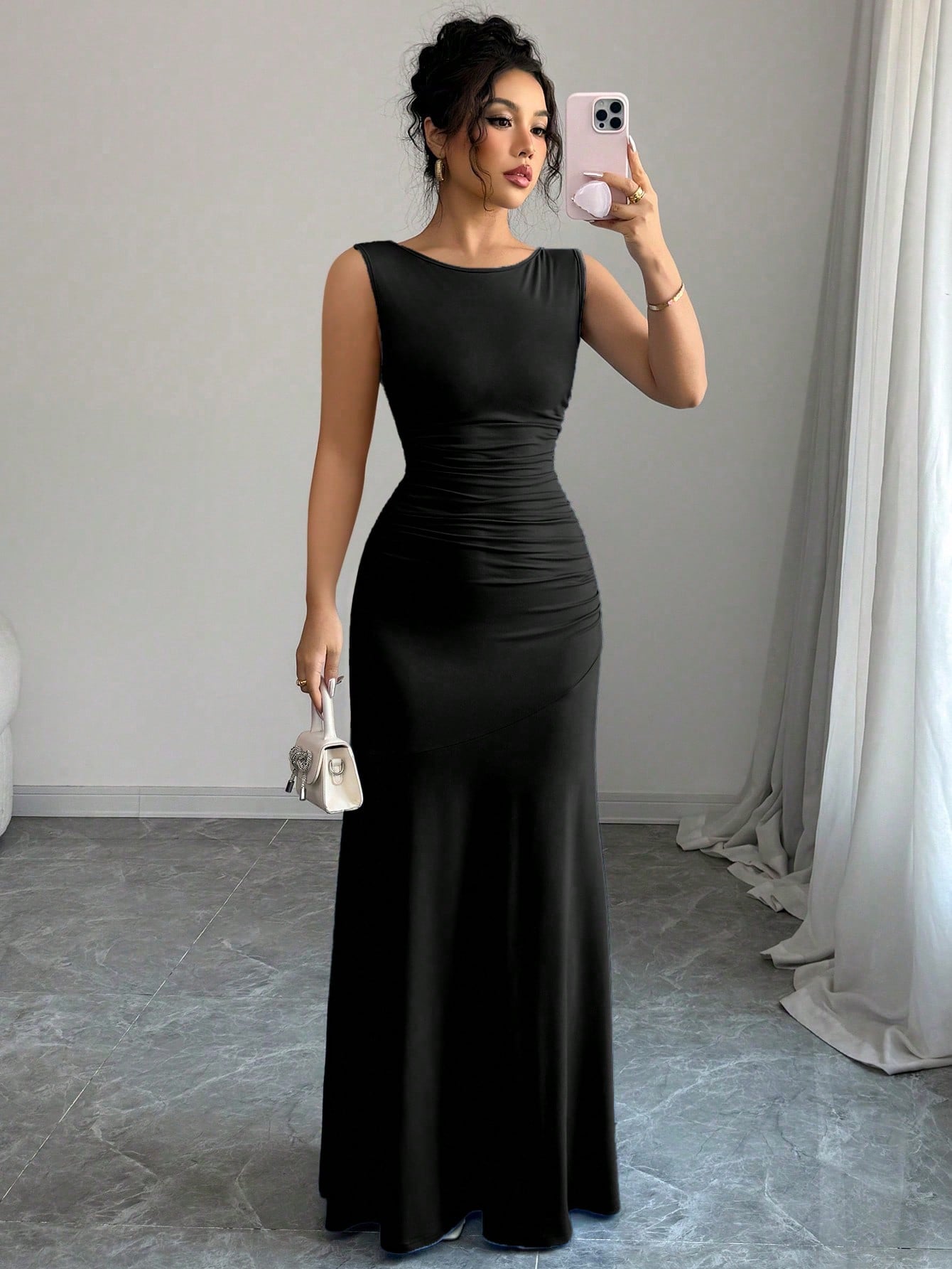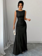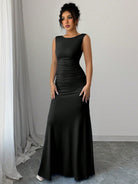Elenzga Women's Elegant Dress - Sleeveless Round Neck A-Line Silhouette With Waist Ruching Detail