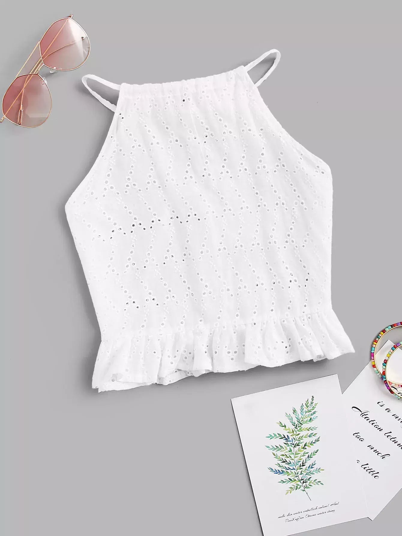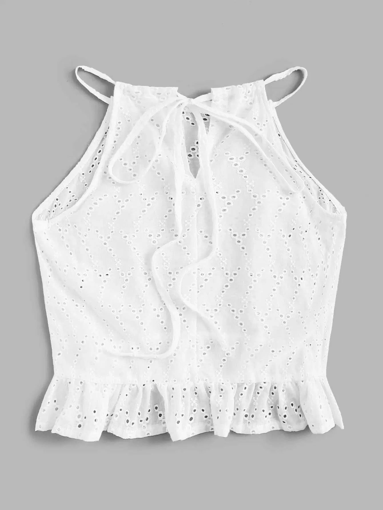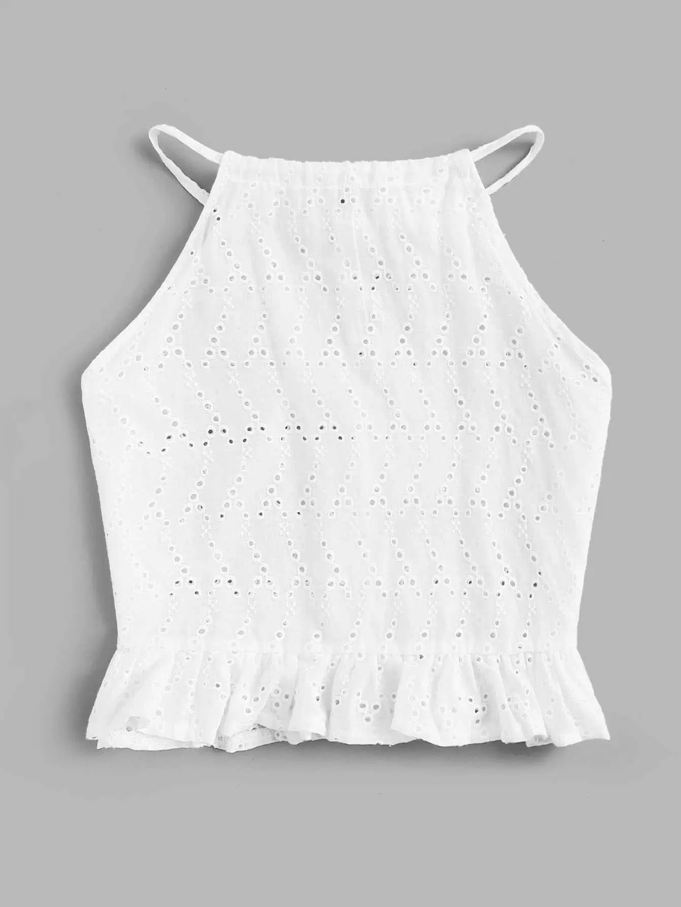 Embroidered Ruffle Hem Halter Top