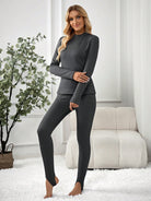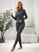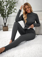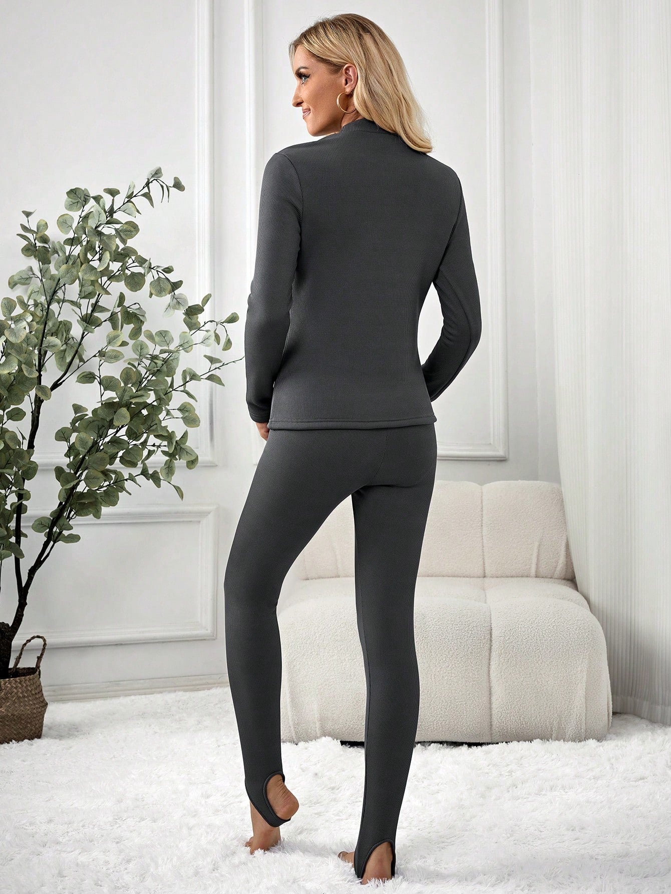 EMERY ROSE 2pcs Women Winter Warm Solid Color Fleece Crew Neck Long Sleeve Top And Pants Set