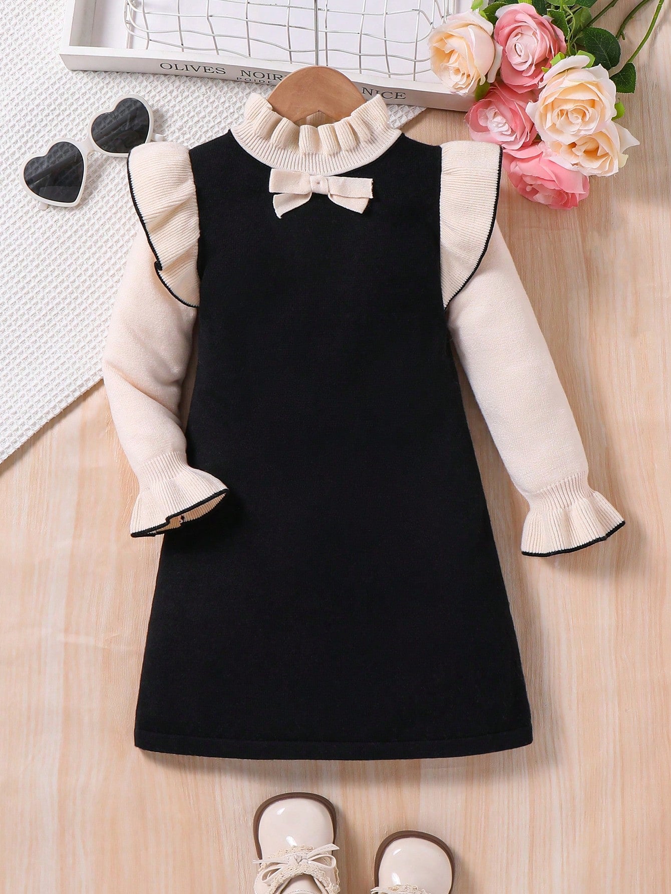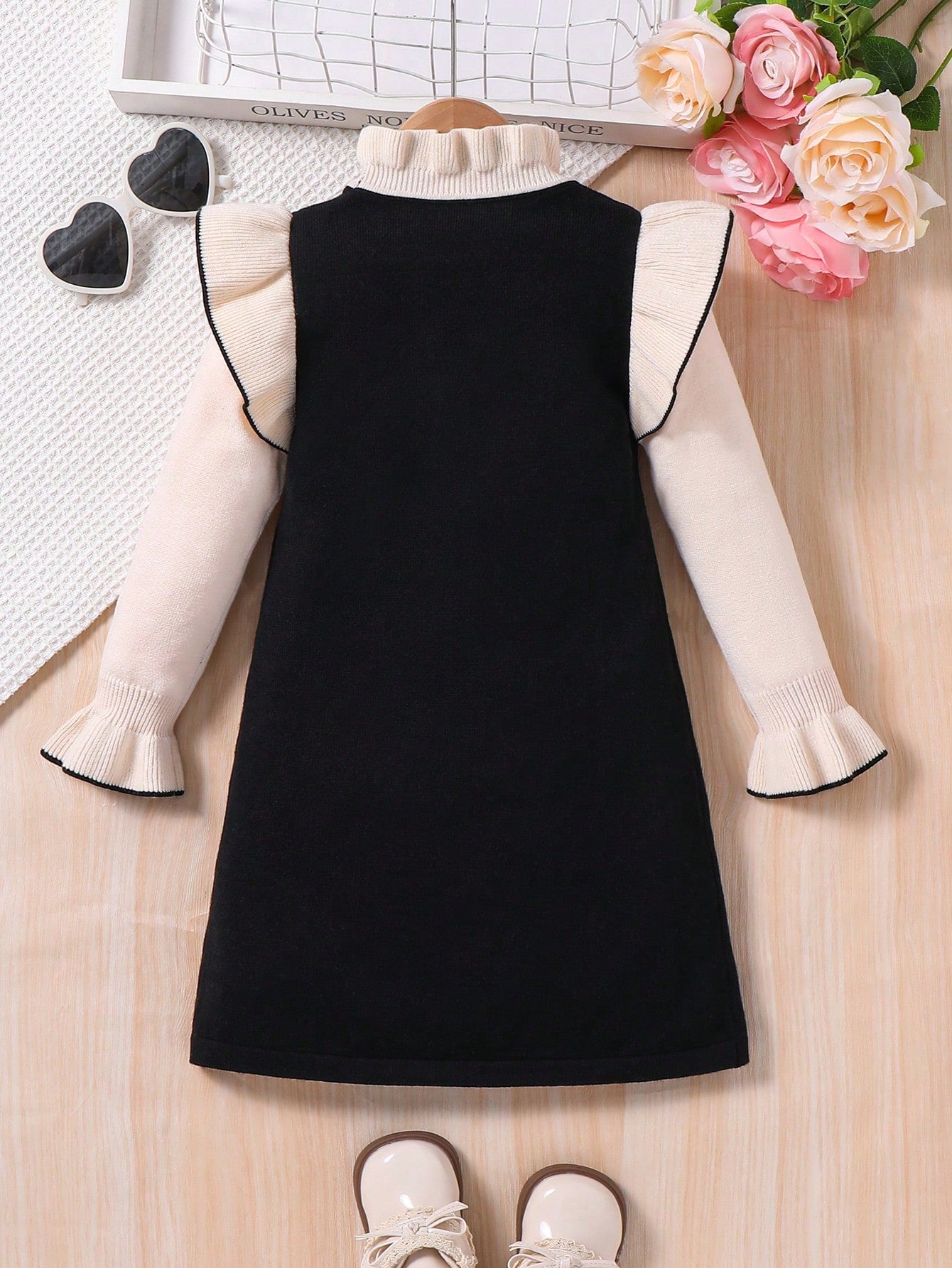 Emery Rose Kids Emery Rose Kids Young Girl Ruffle Trim Color Block A-Line Sweater Dress