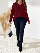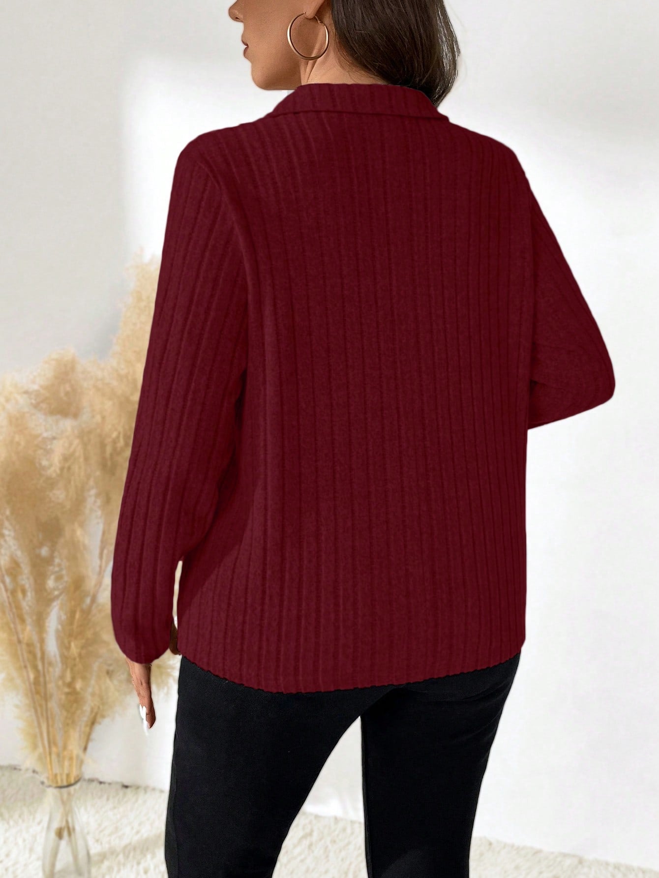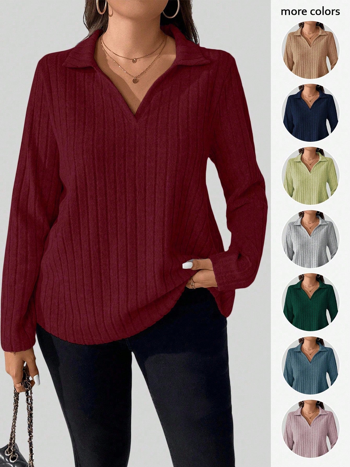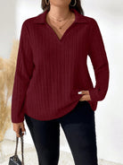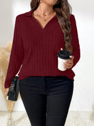 EMERY ROSE Plus Size Women Solid Color Long Sleeve Ribbed Casual T-Shirt