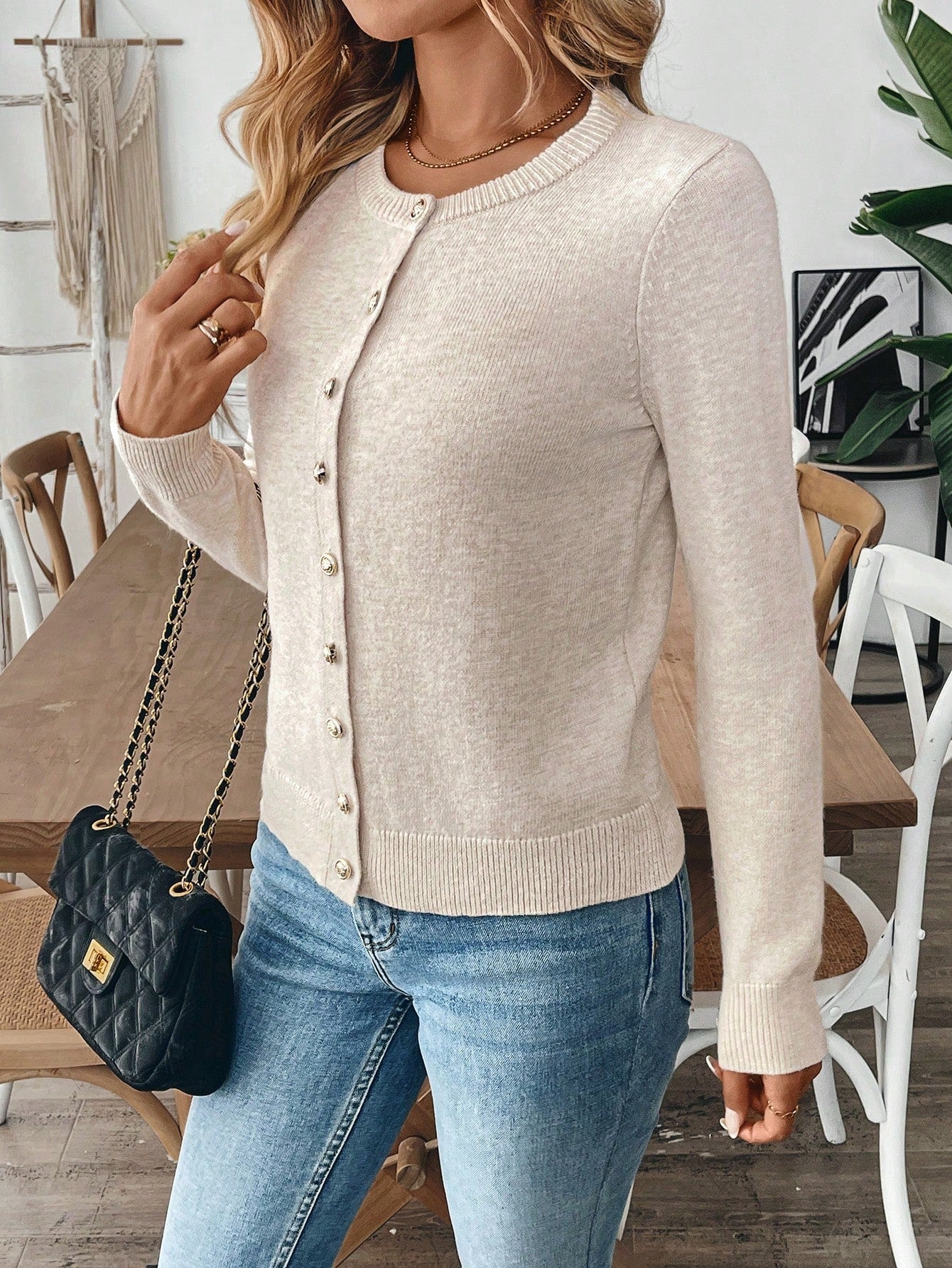 EMERY ROSE Women Casual Solid Color Long Sleeve Cardigan