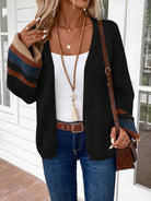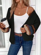 EMERY ROSE Women's Solid Color Spliced Long Sleeve Cardigan