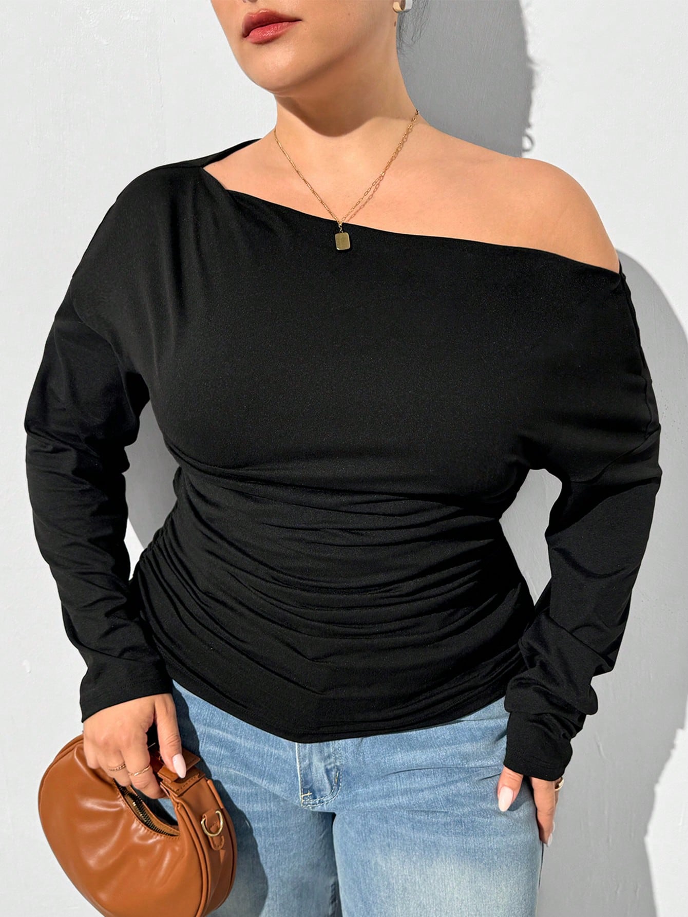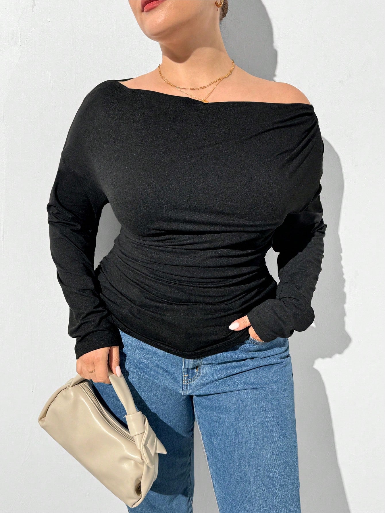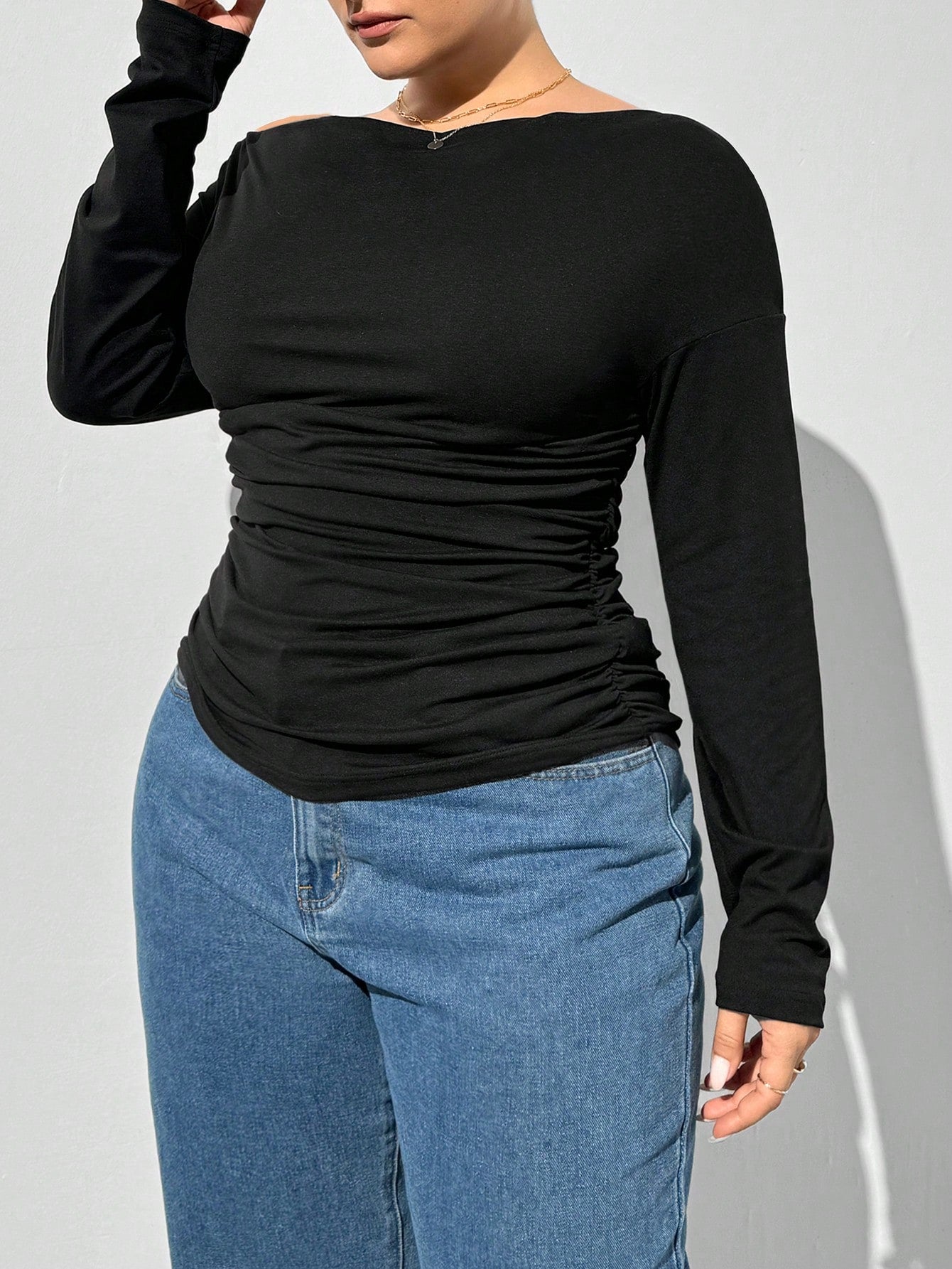 Essnce Plus Size Women's Autumn Fall Women Clothes New Fashion Casual Commuting Business Women Clothes Elegant Solid Color Knitted Black T-Shirt Long-Sleeved Top