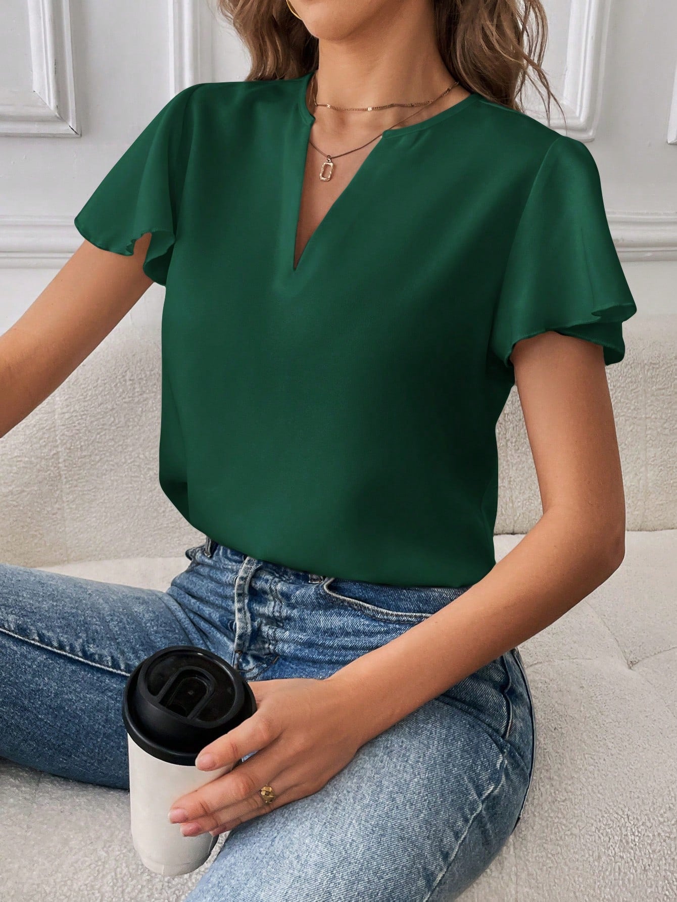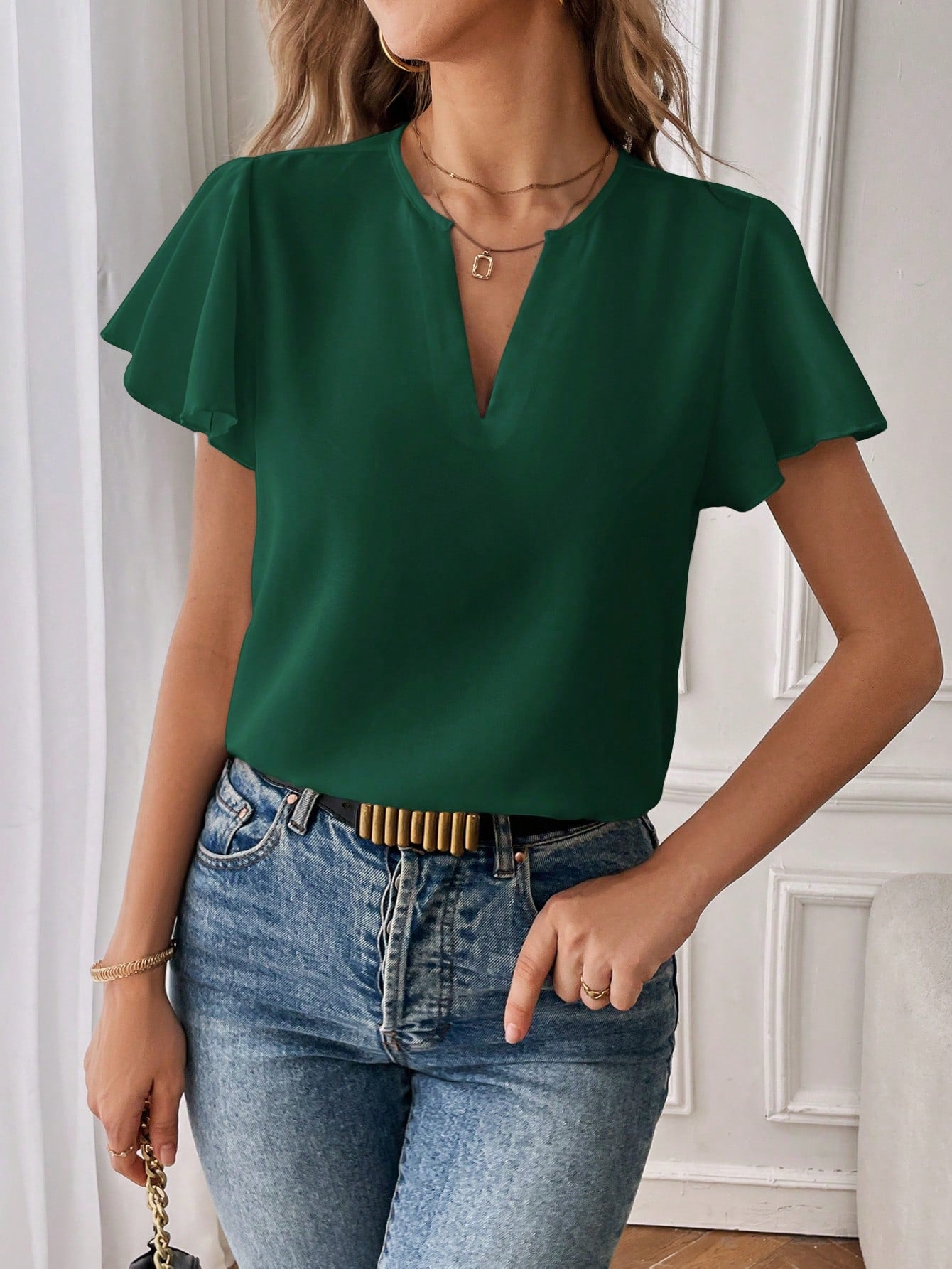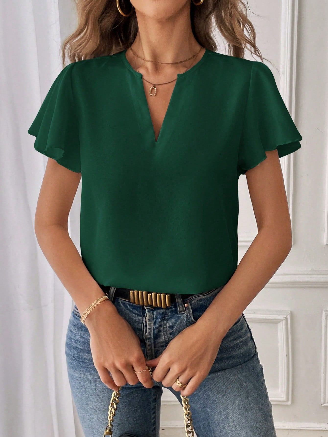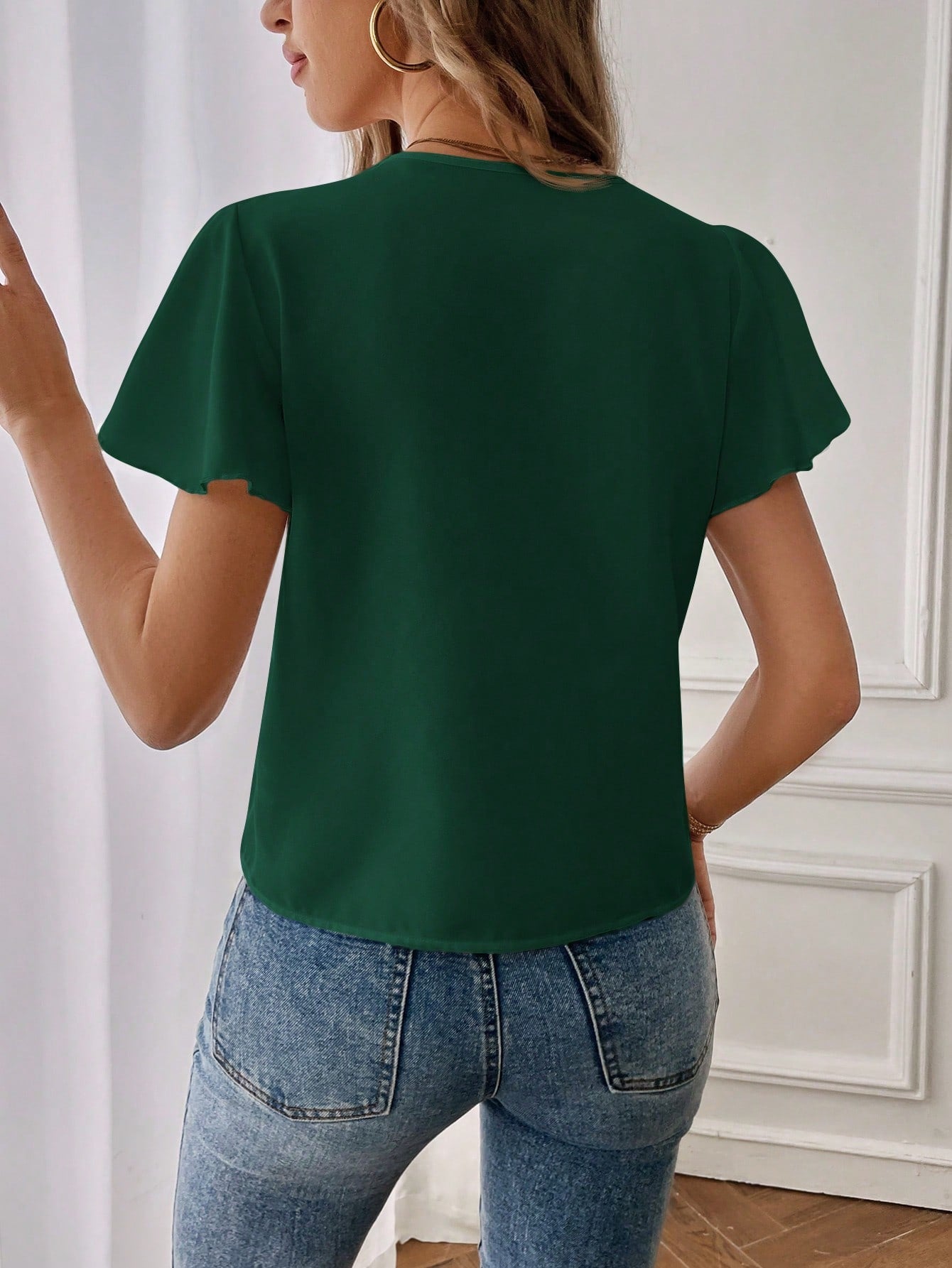 Essnce Women's Casual & Commute V-Neck Ruffle Sleeve Blouse Green
