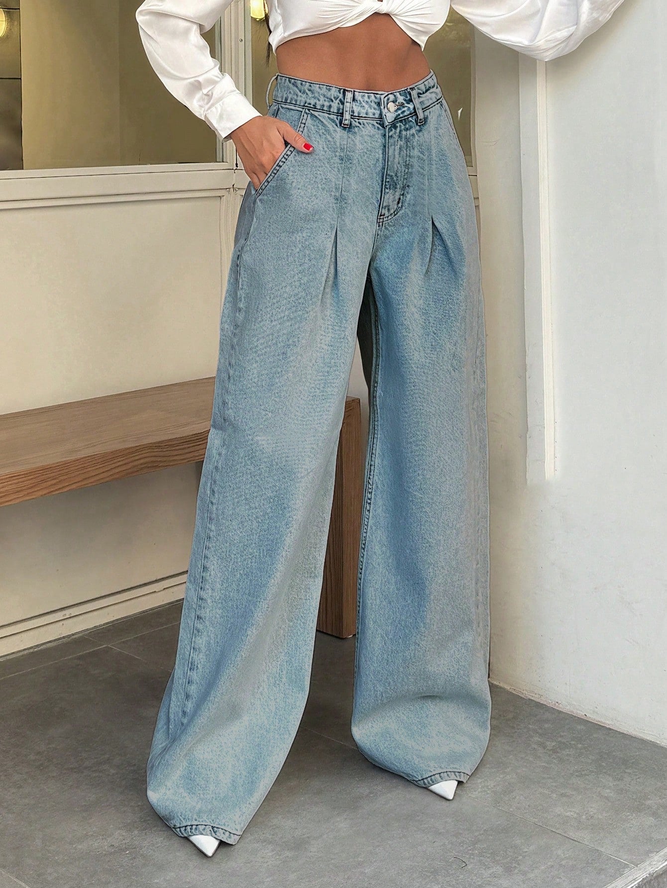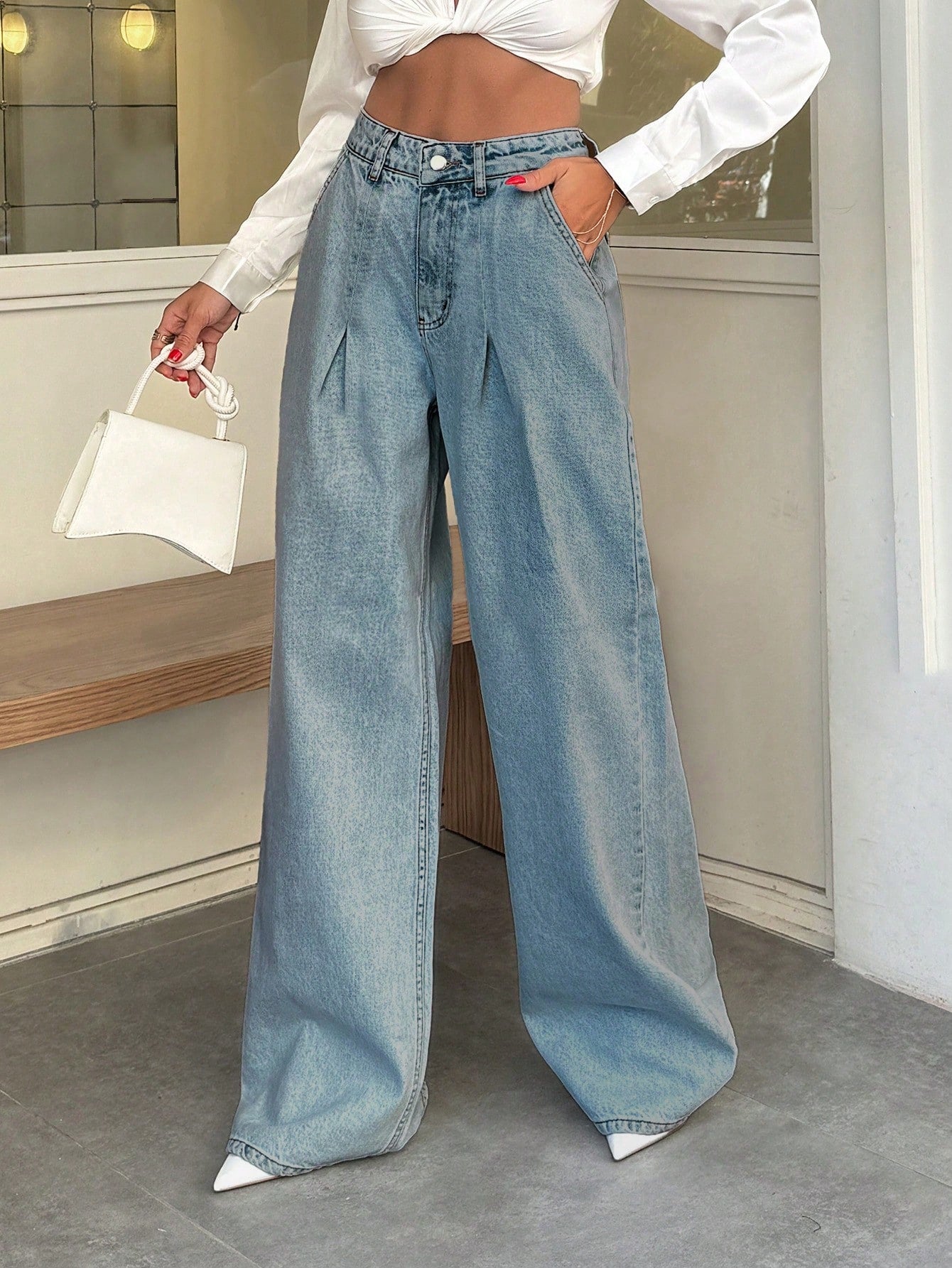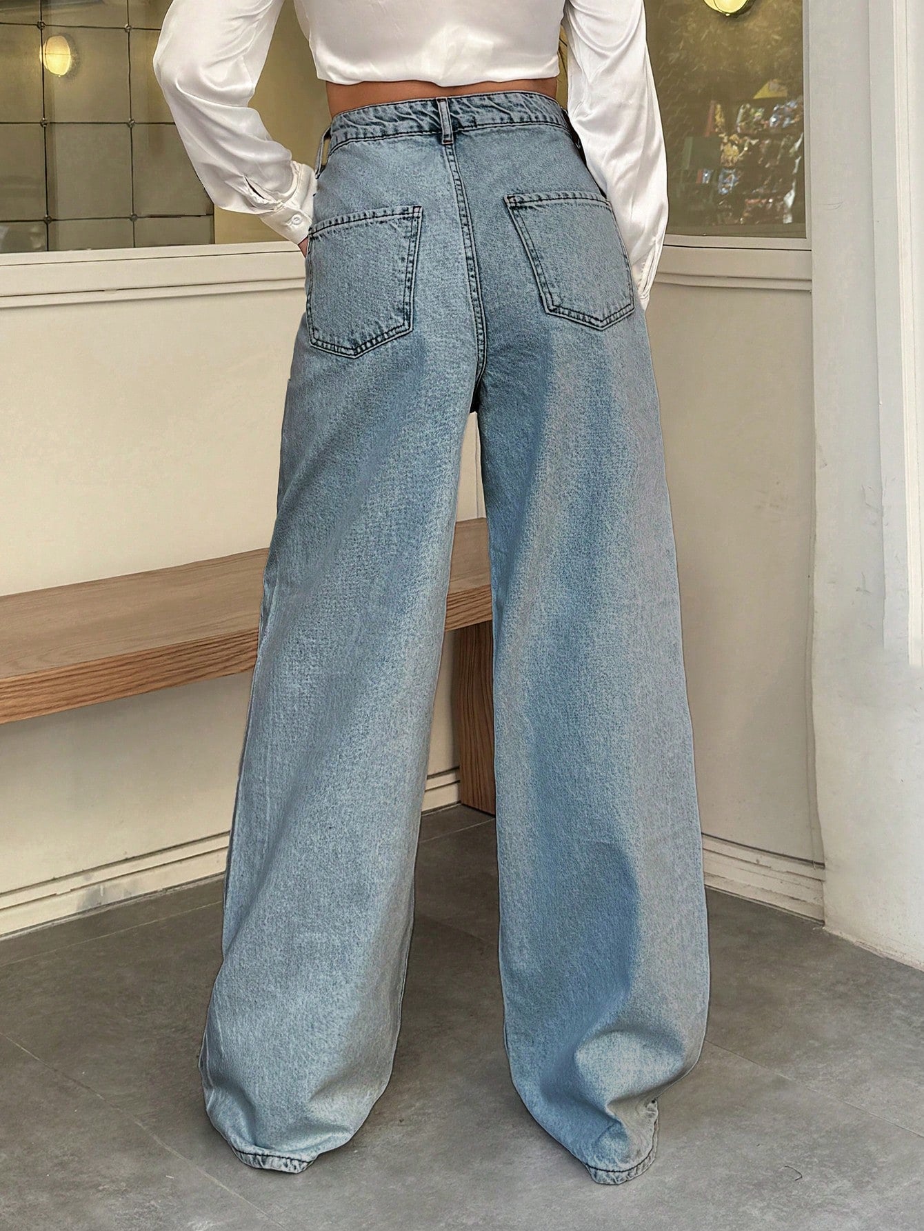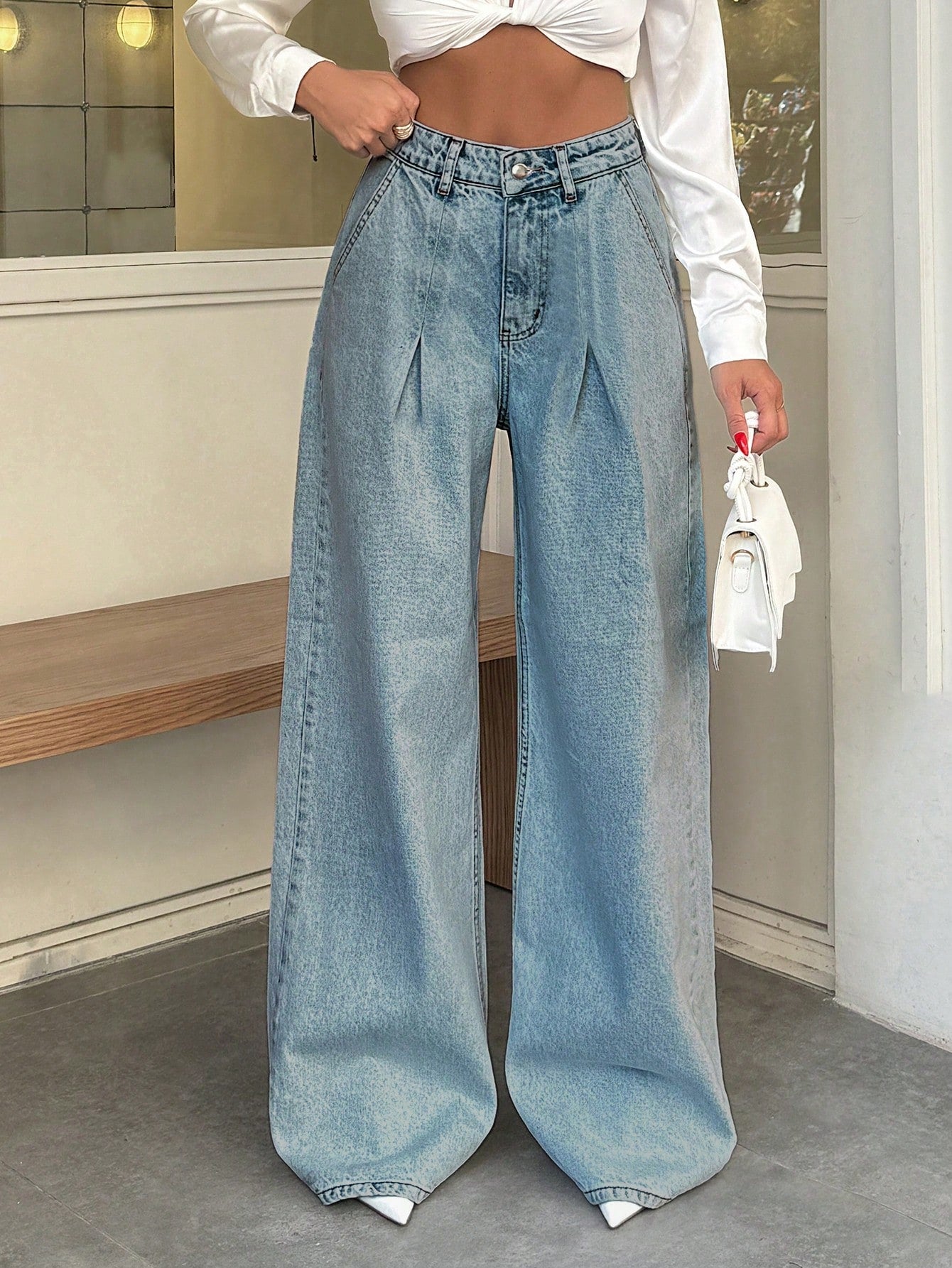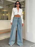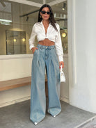 EURMUSE 100% Cotton HIGH WAIST WIDE LEG VINTAGEآ JEAN