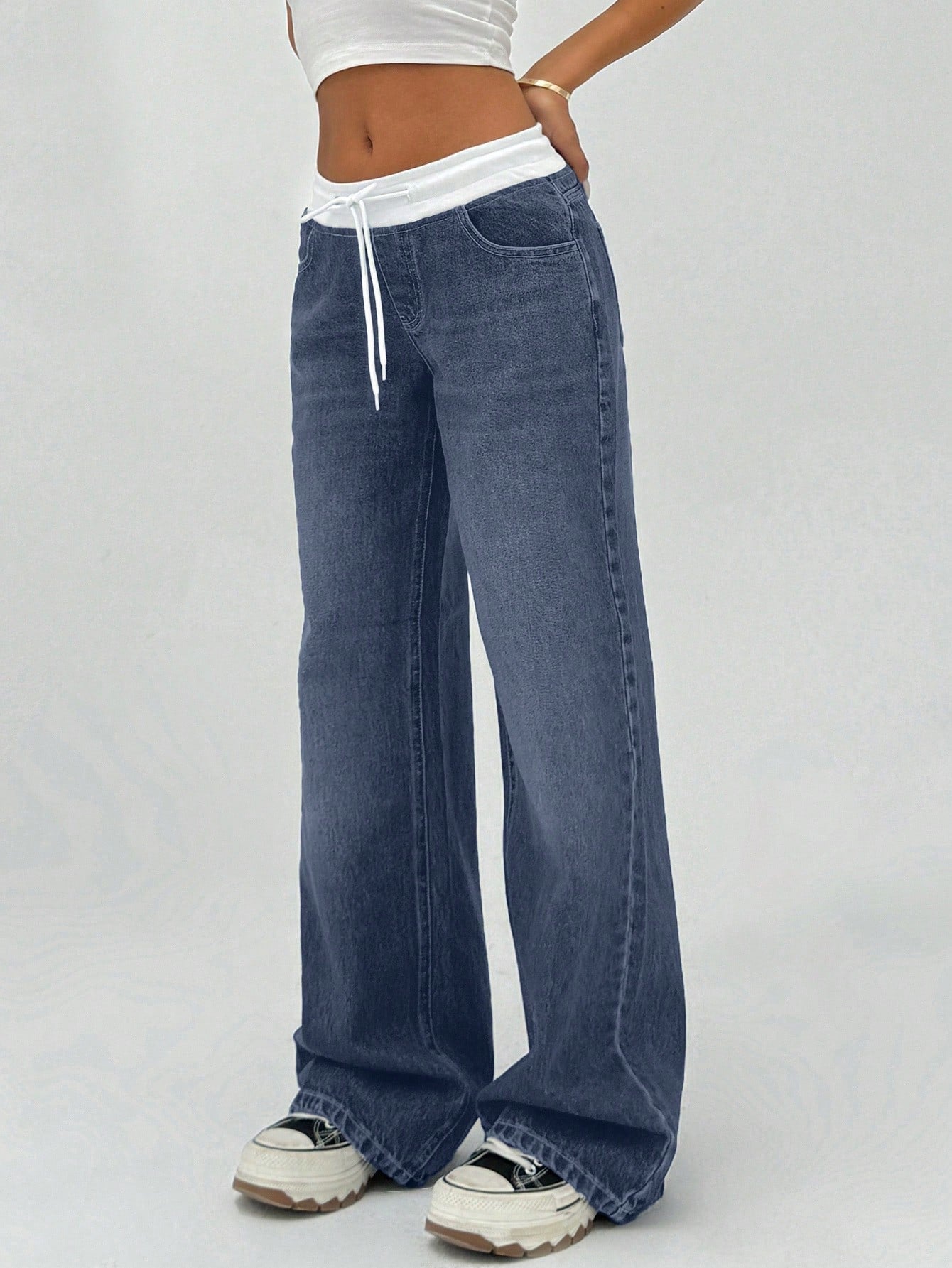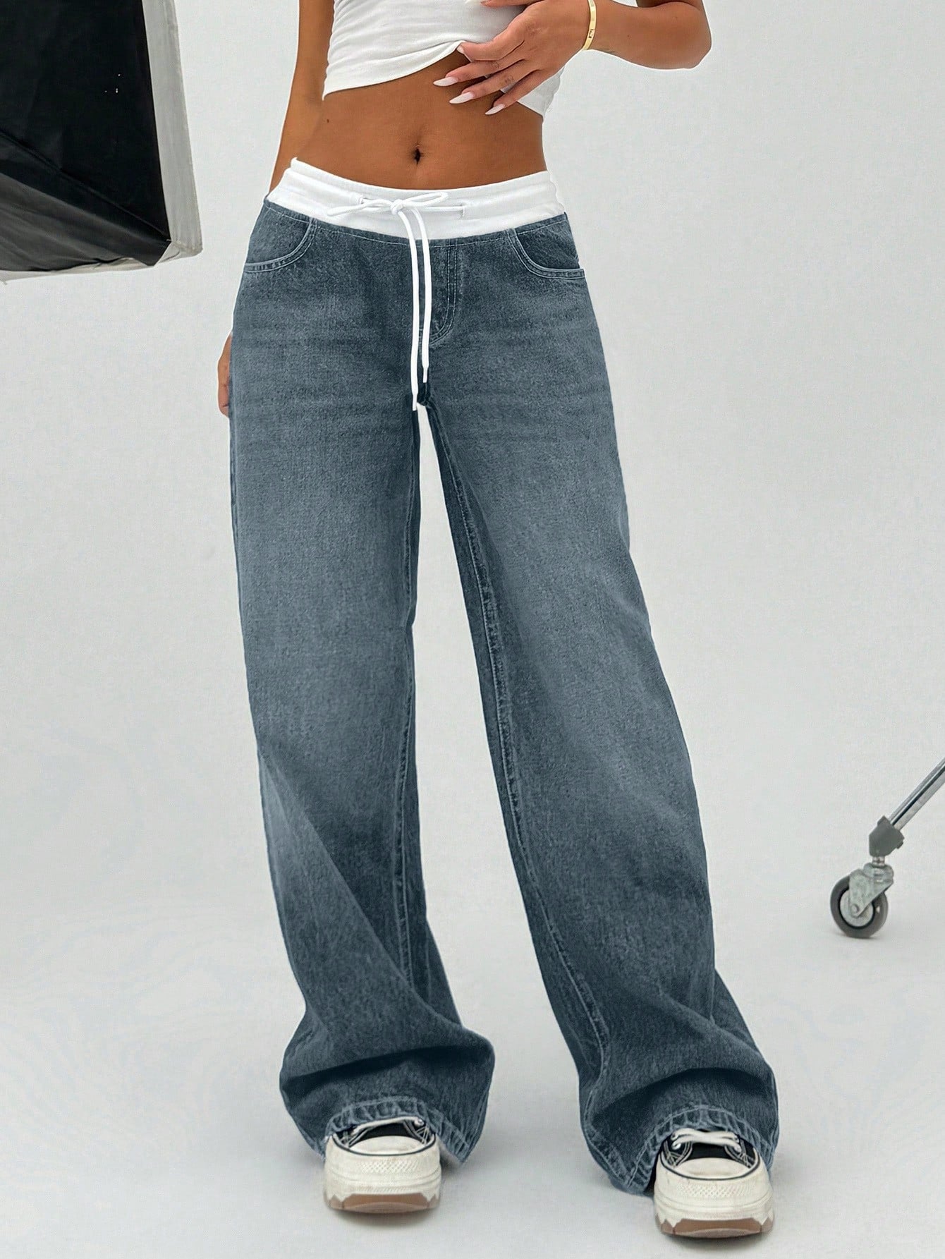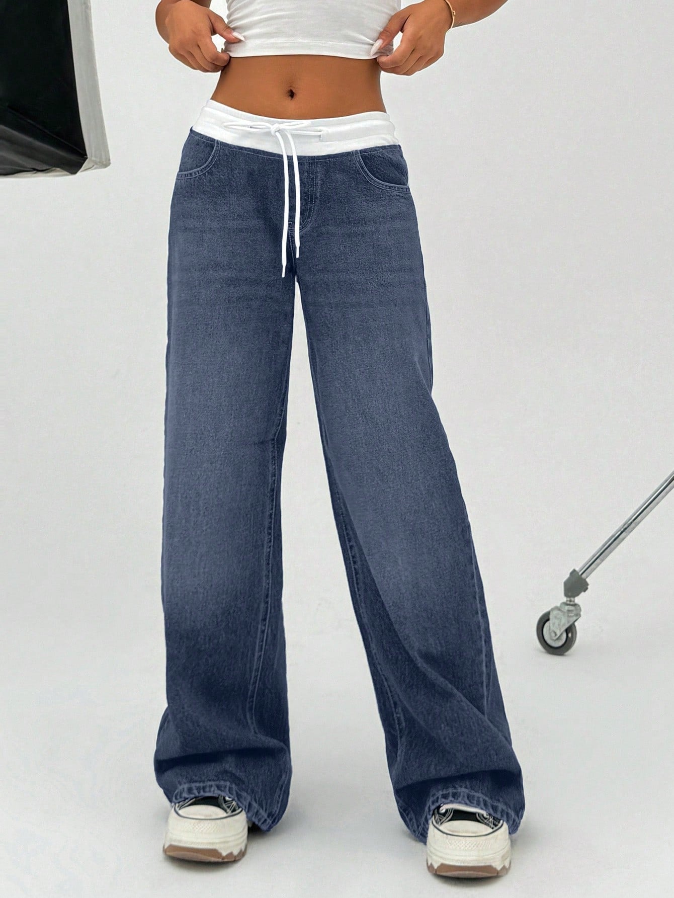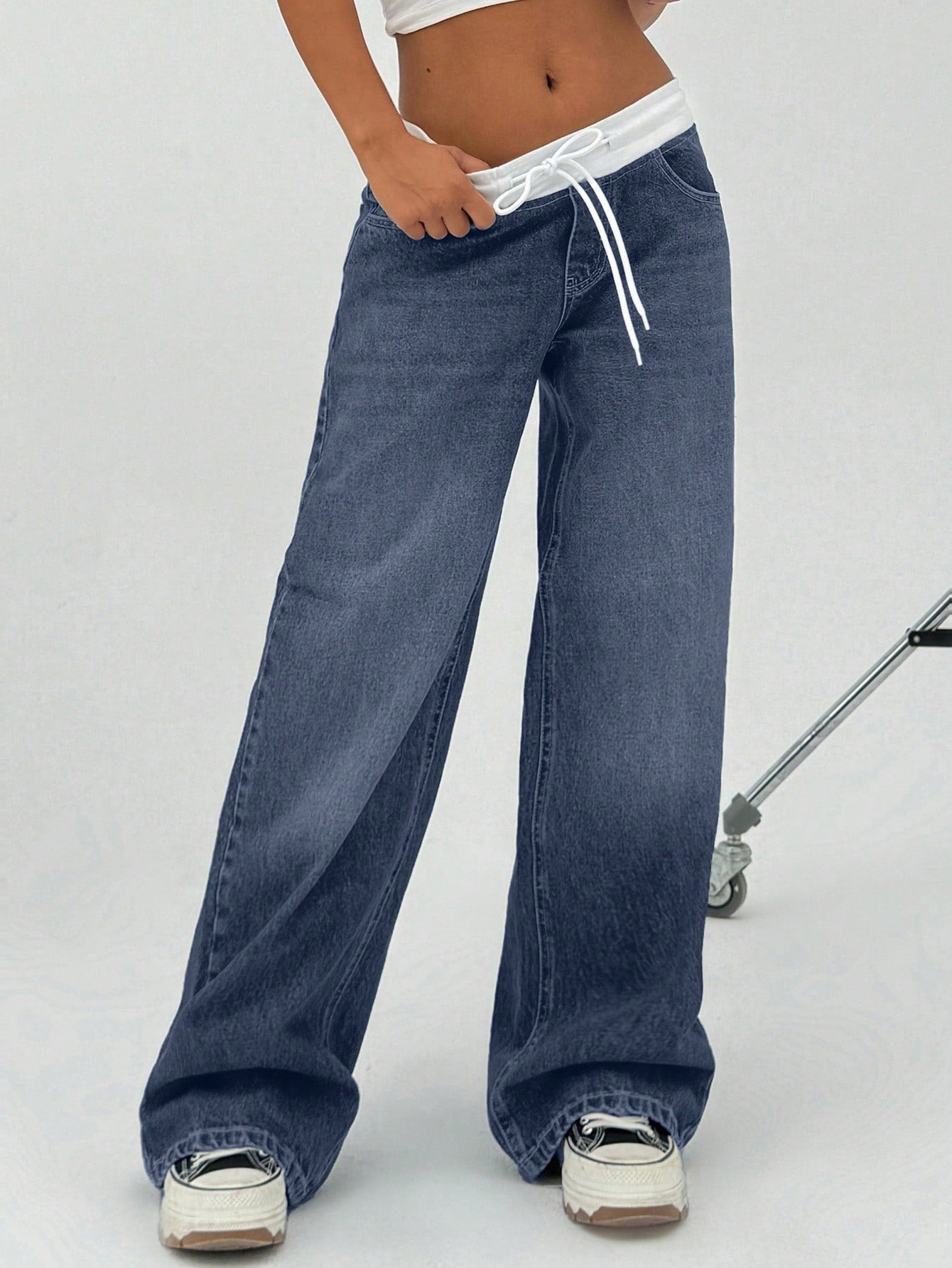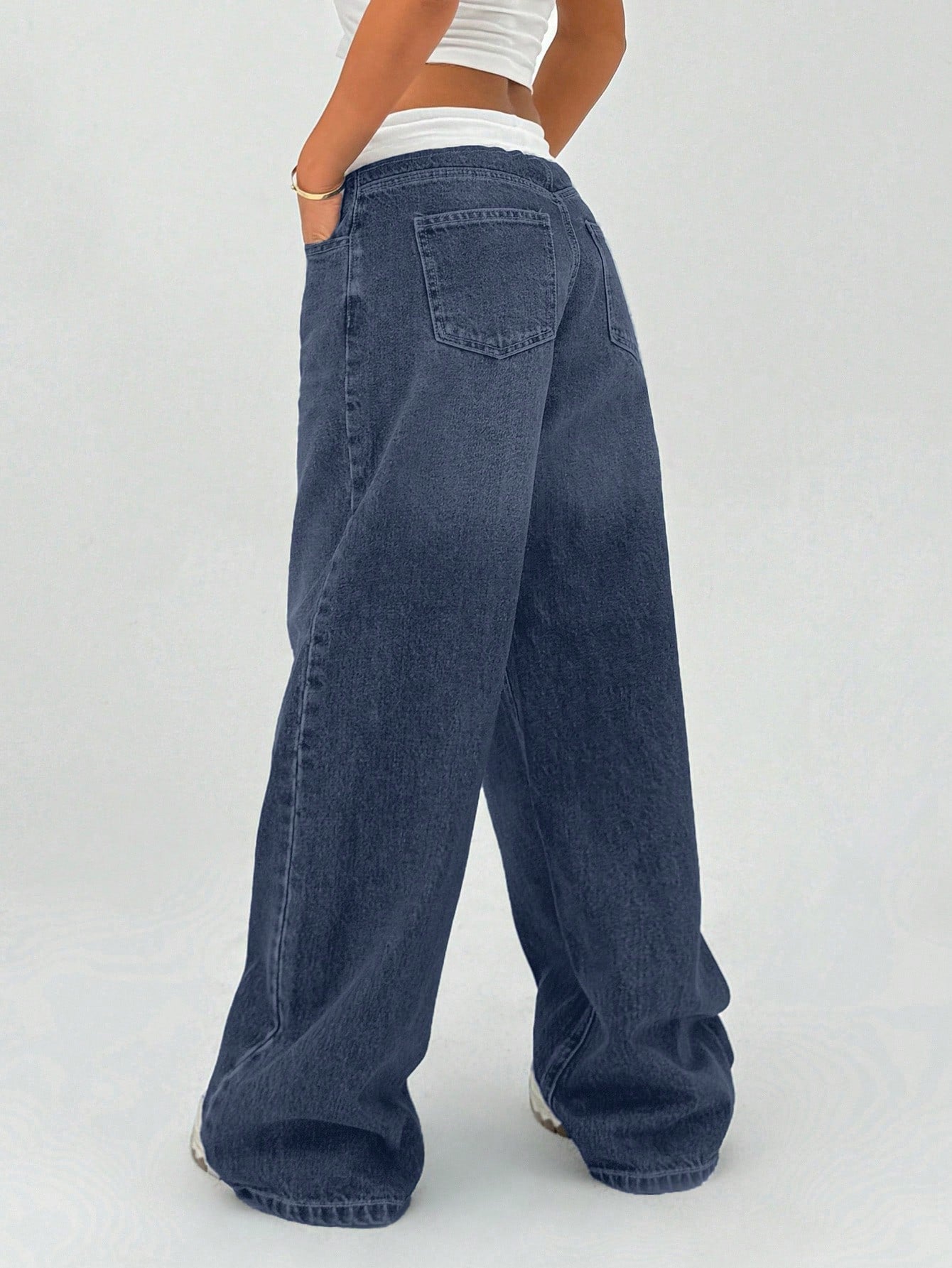 EURMUSE 100% Cotton Women Skort Young And Low Waist Wide Leg Baggy Jeans
