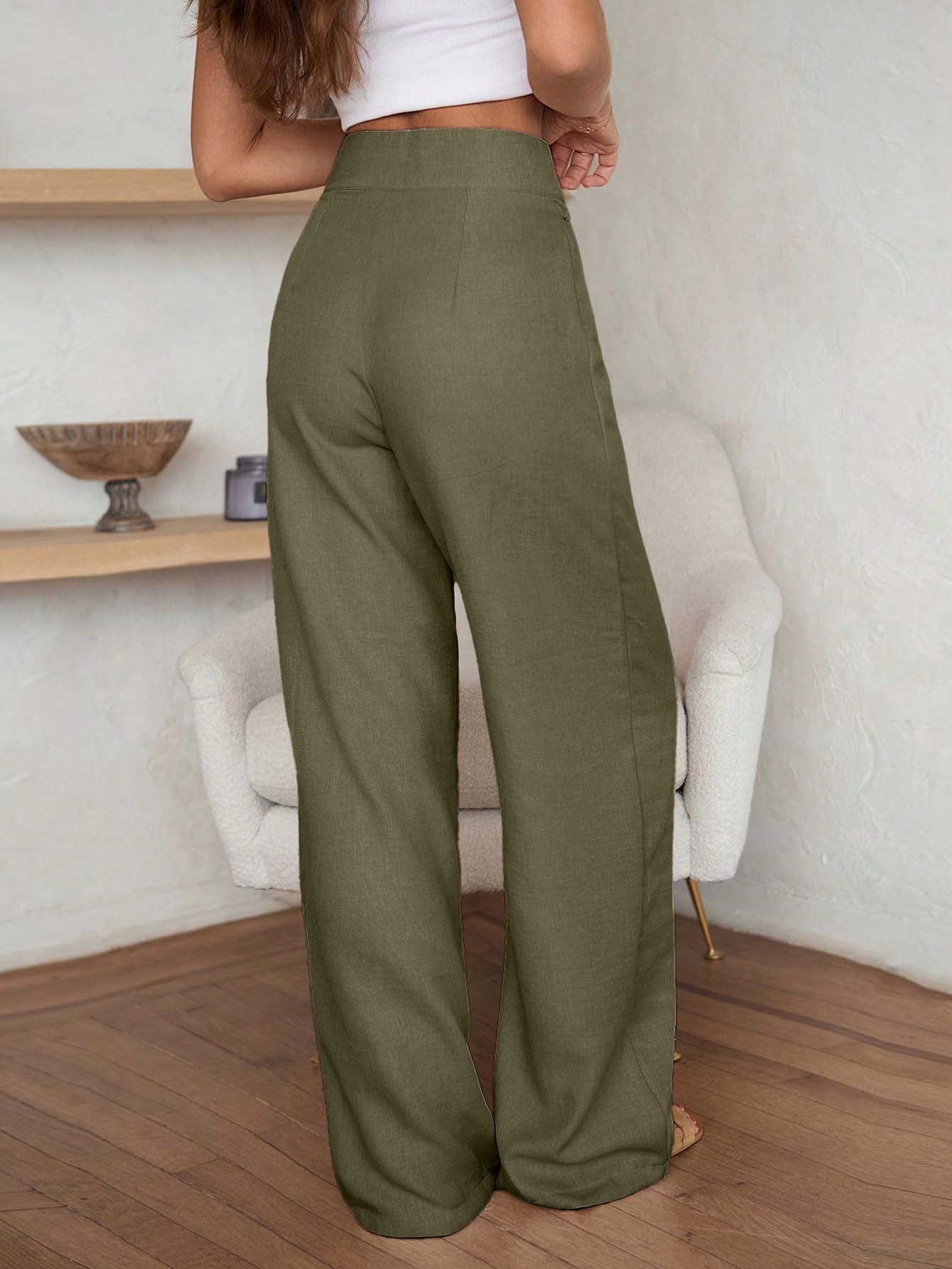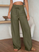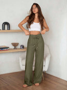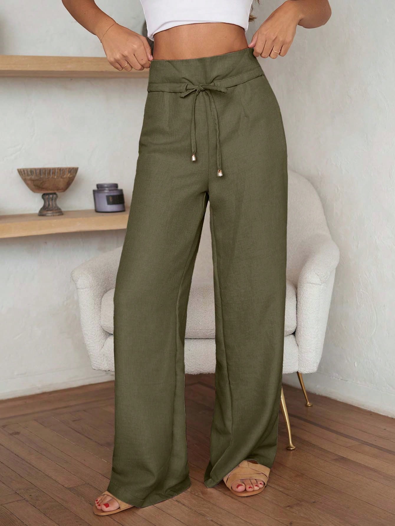 EURMUSE High-Waisted Linen Blend Tie-Front Pants - Self-Tie Waist Detail Without Belt
