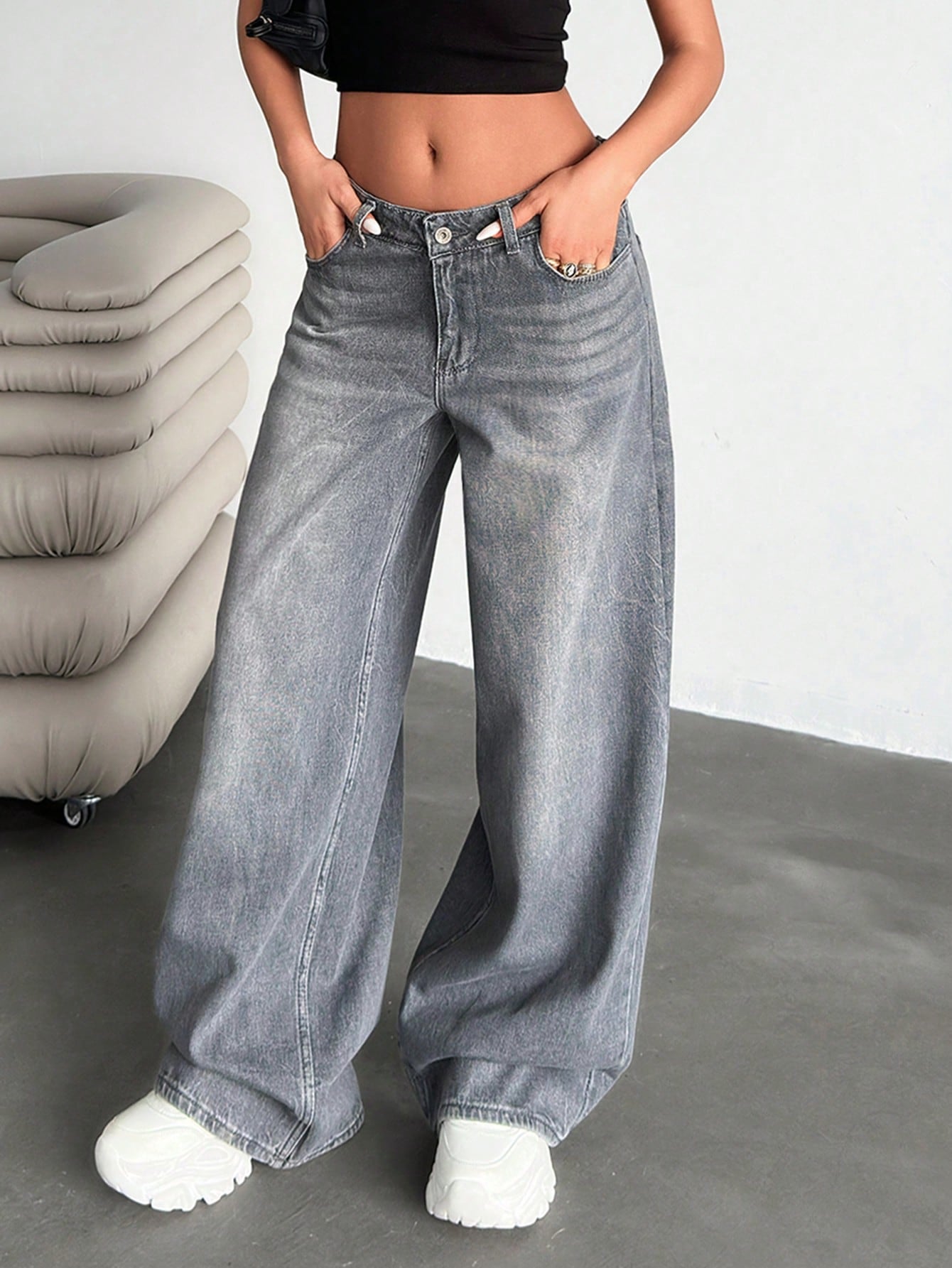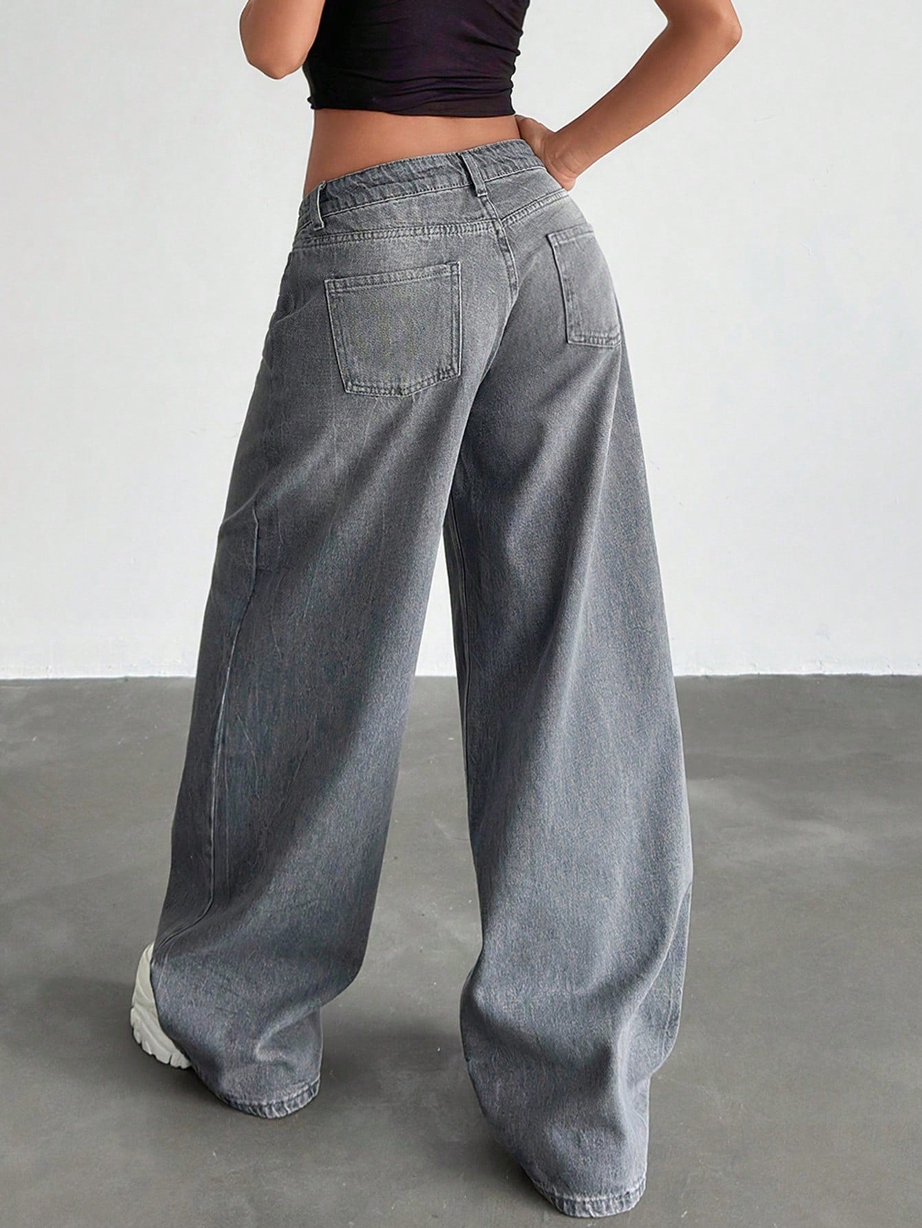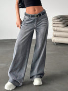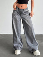 EURMUSE Low Waist Wash Detailed Wideleg Jean Wide Leg Jeans Women Jeans Wide Leg