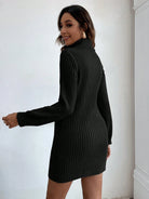 EURMUSE Turtleneck Ribbed Knitted Long Sleeve Sweater Dress
