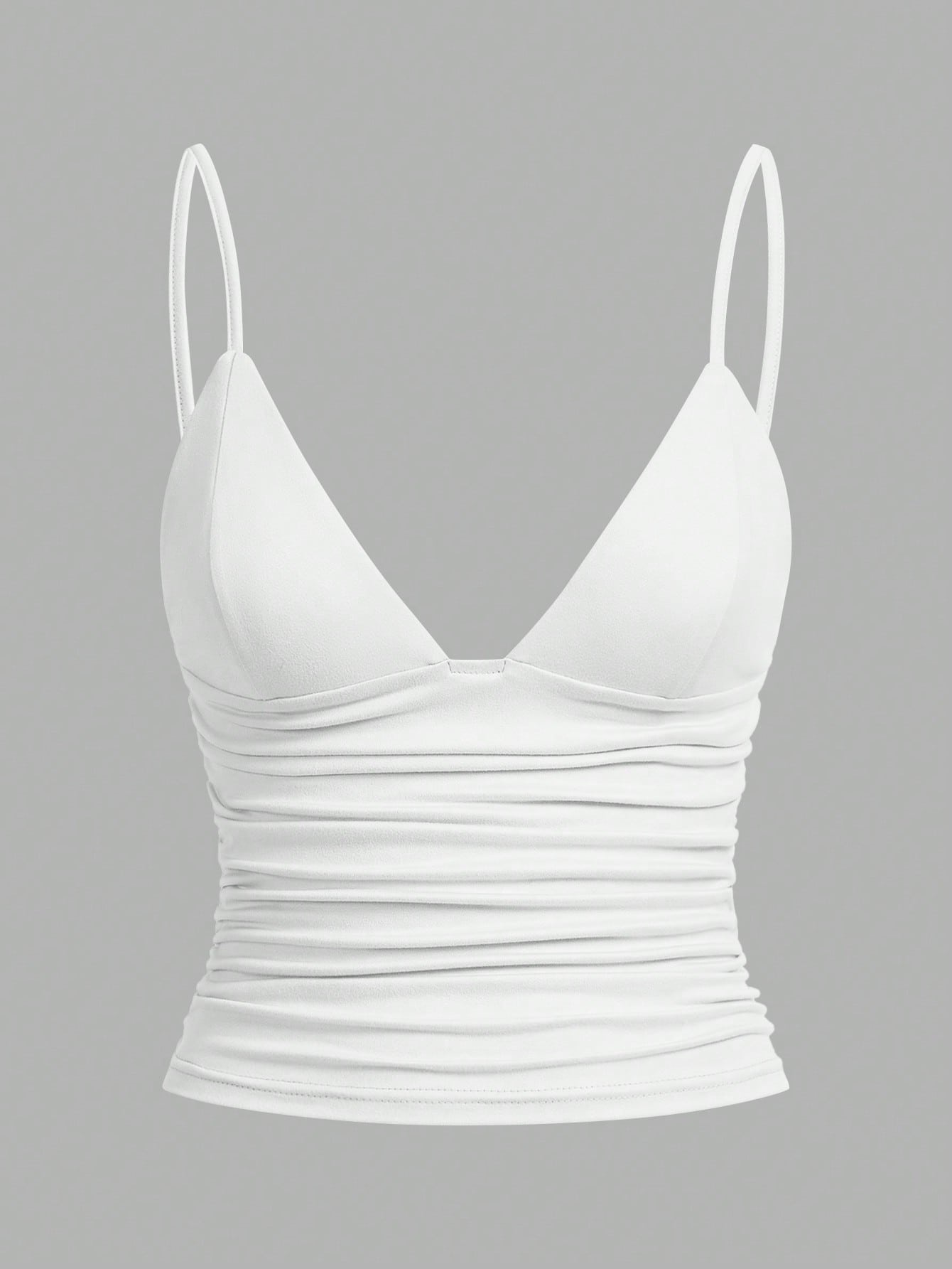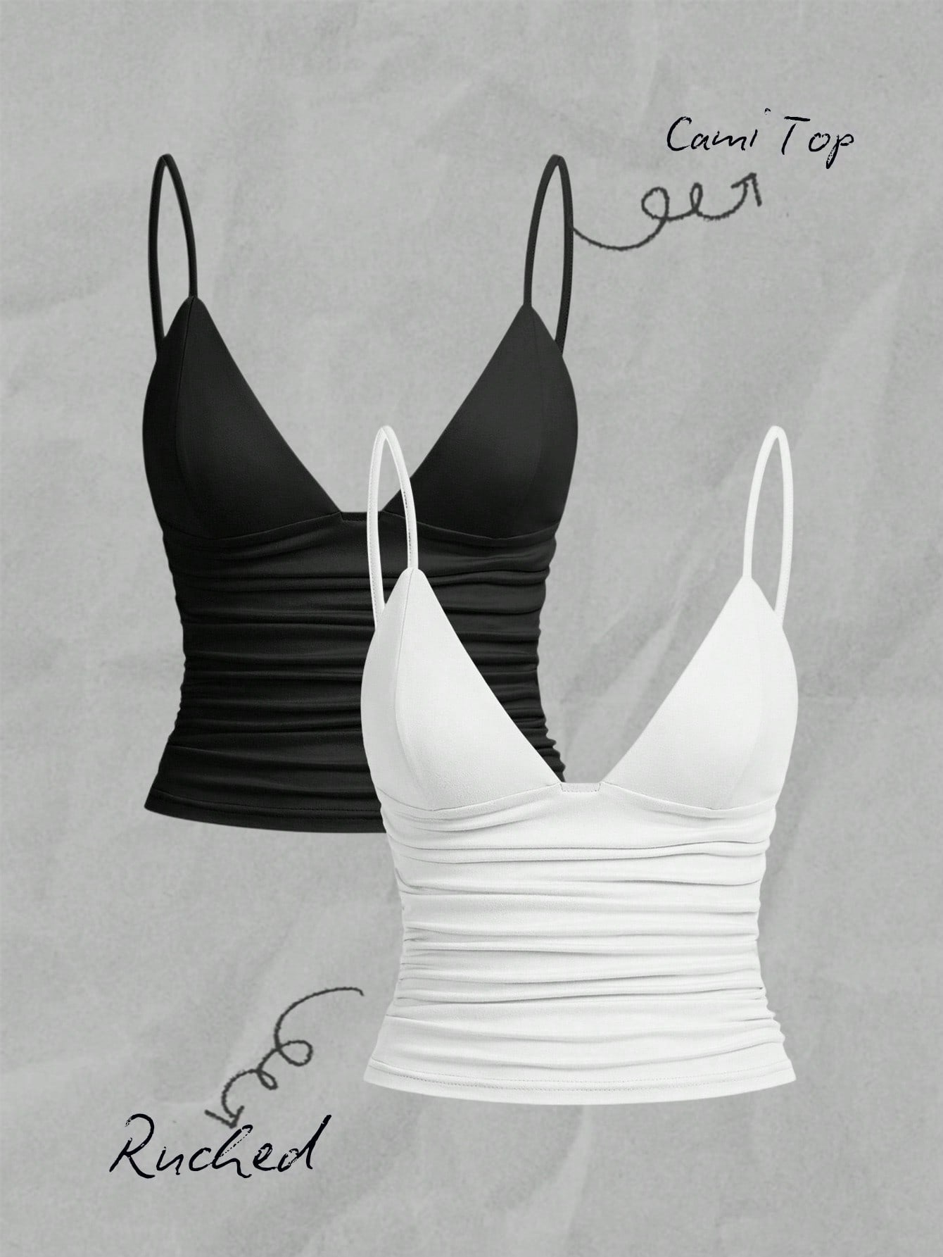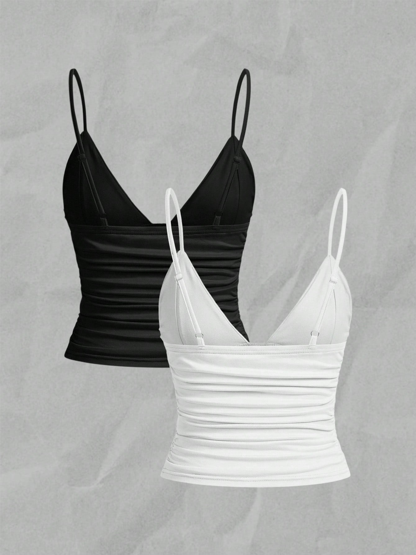 EZwear 2pcs/Set Women Casual Ruched Skinny Tank Top Set
