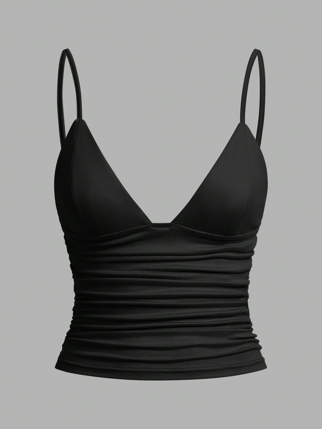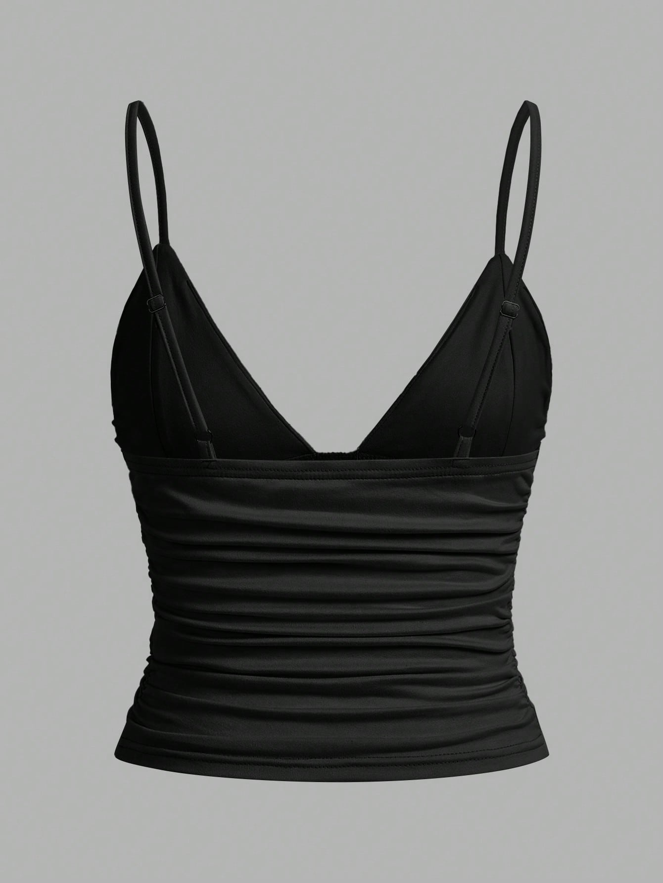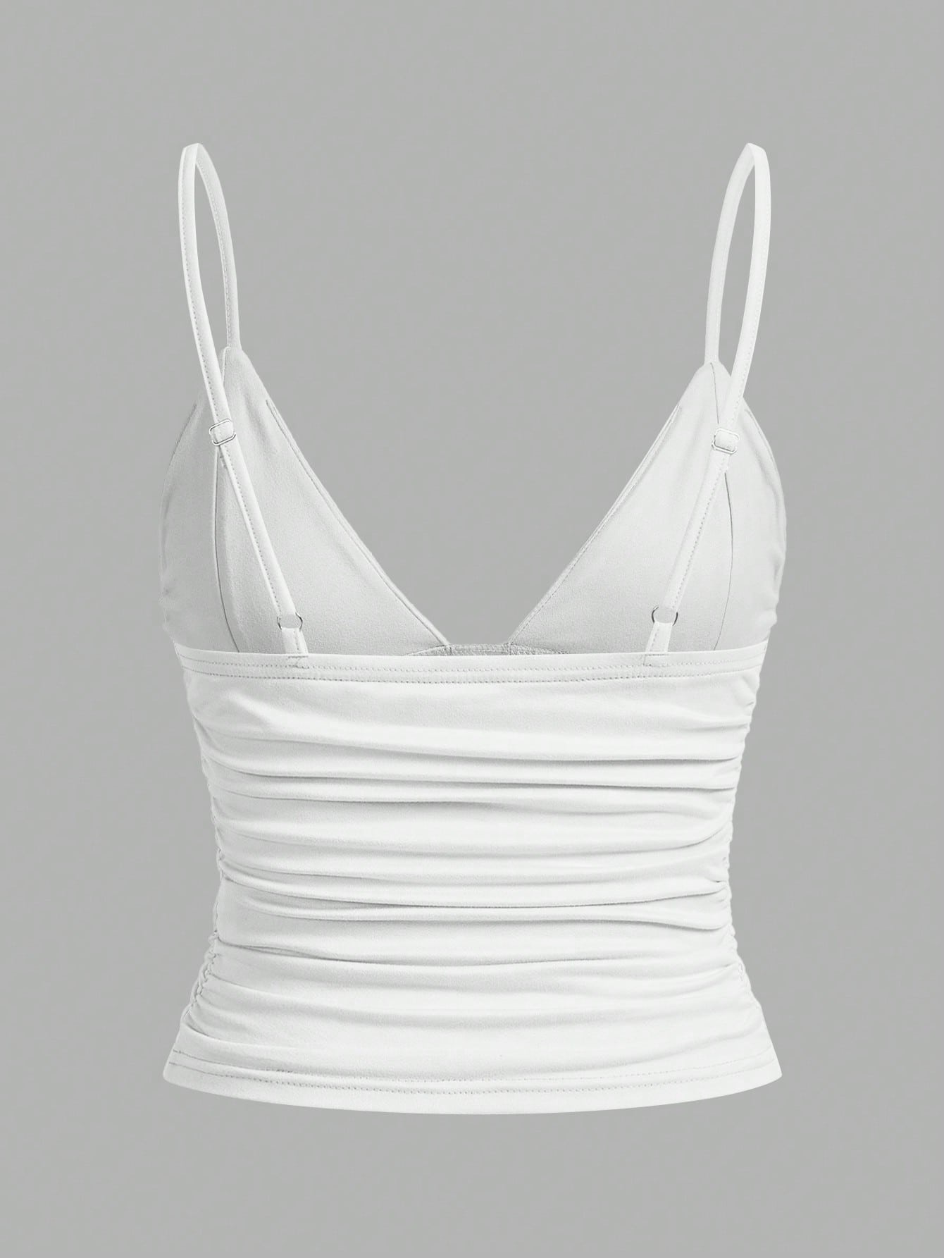 EZwear 2pcs/Set Women Casual Ruched Skinny Tank Top Set