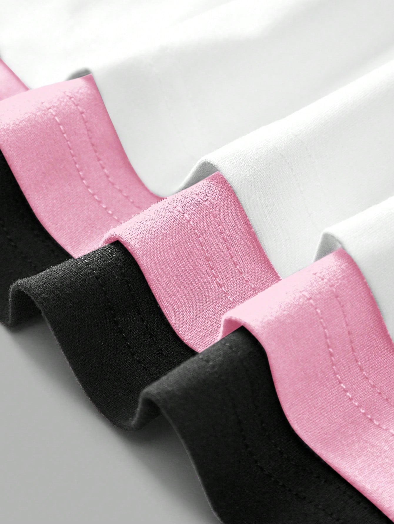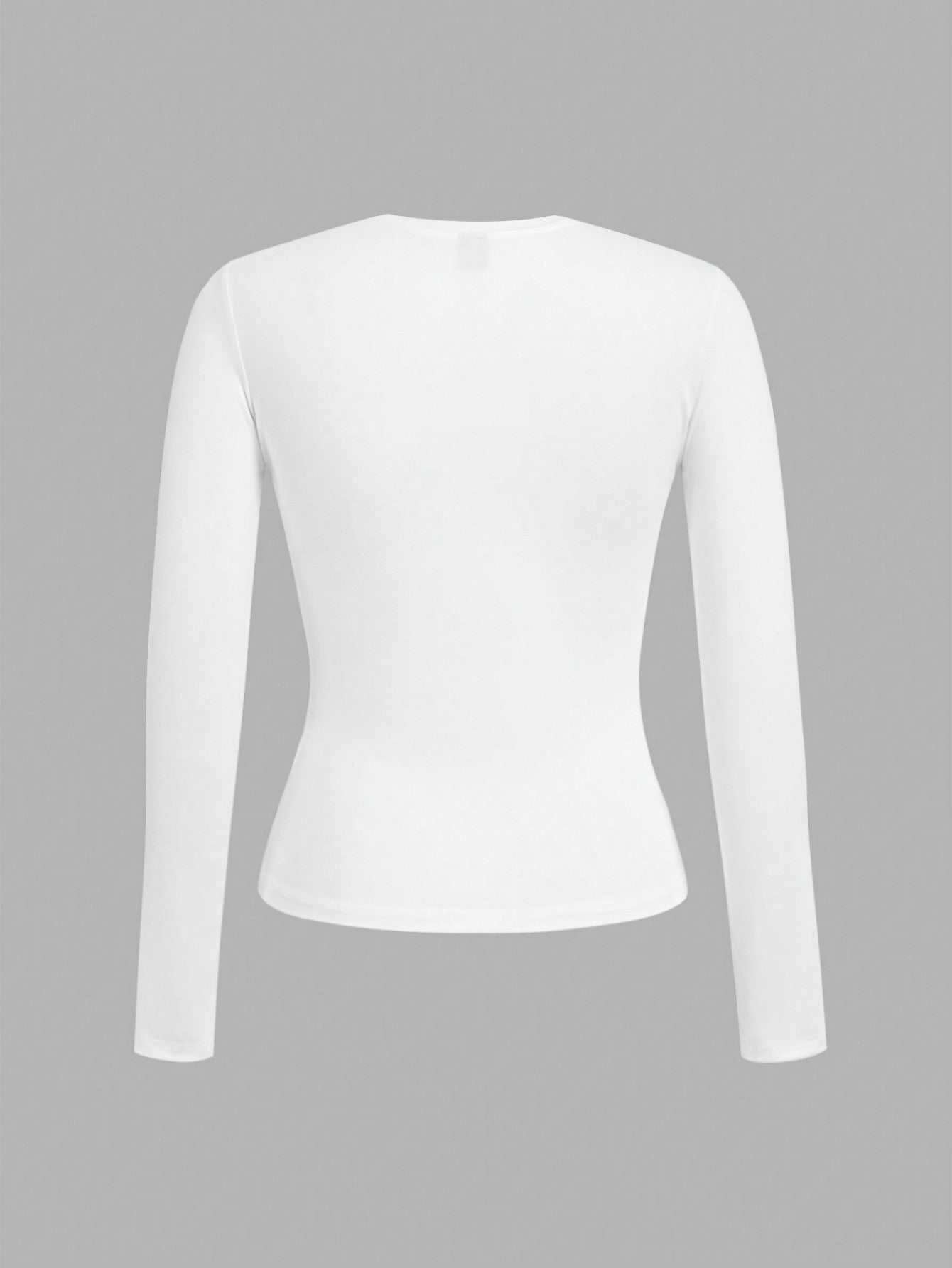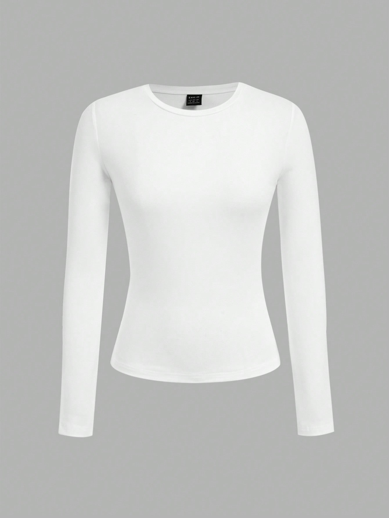 EZwear 3pcs/Set Women Plus Size Solid Color Black & White Round Neck Casual Tight Fit Long Sleeve T-Shirt Set