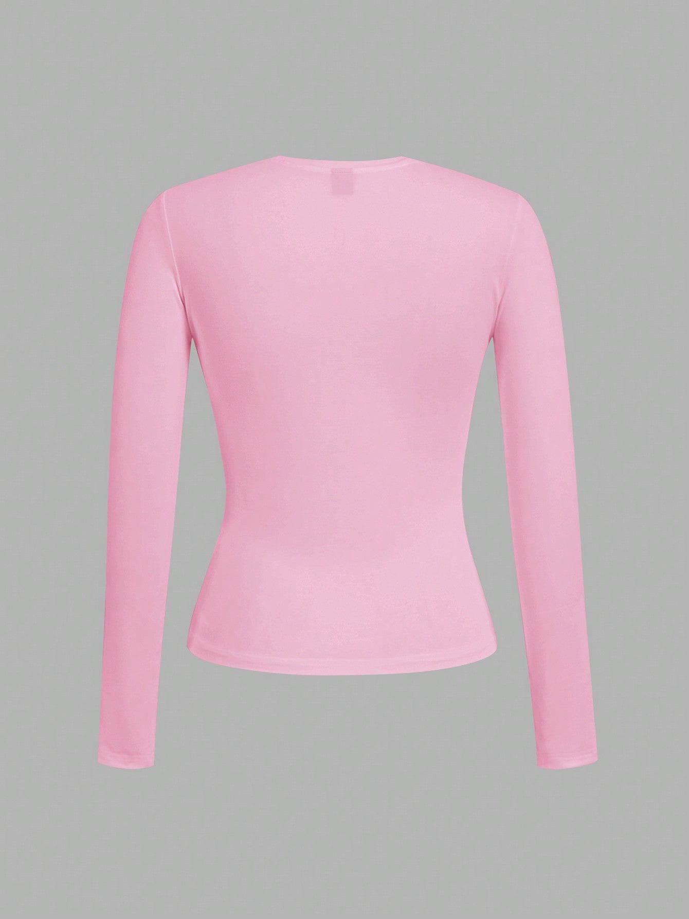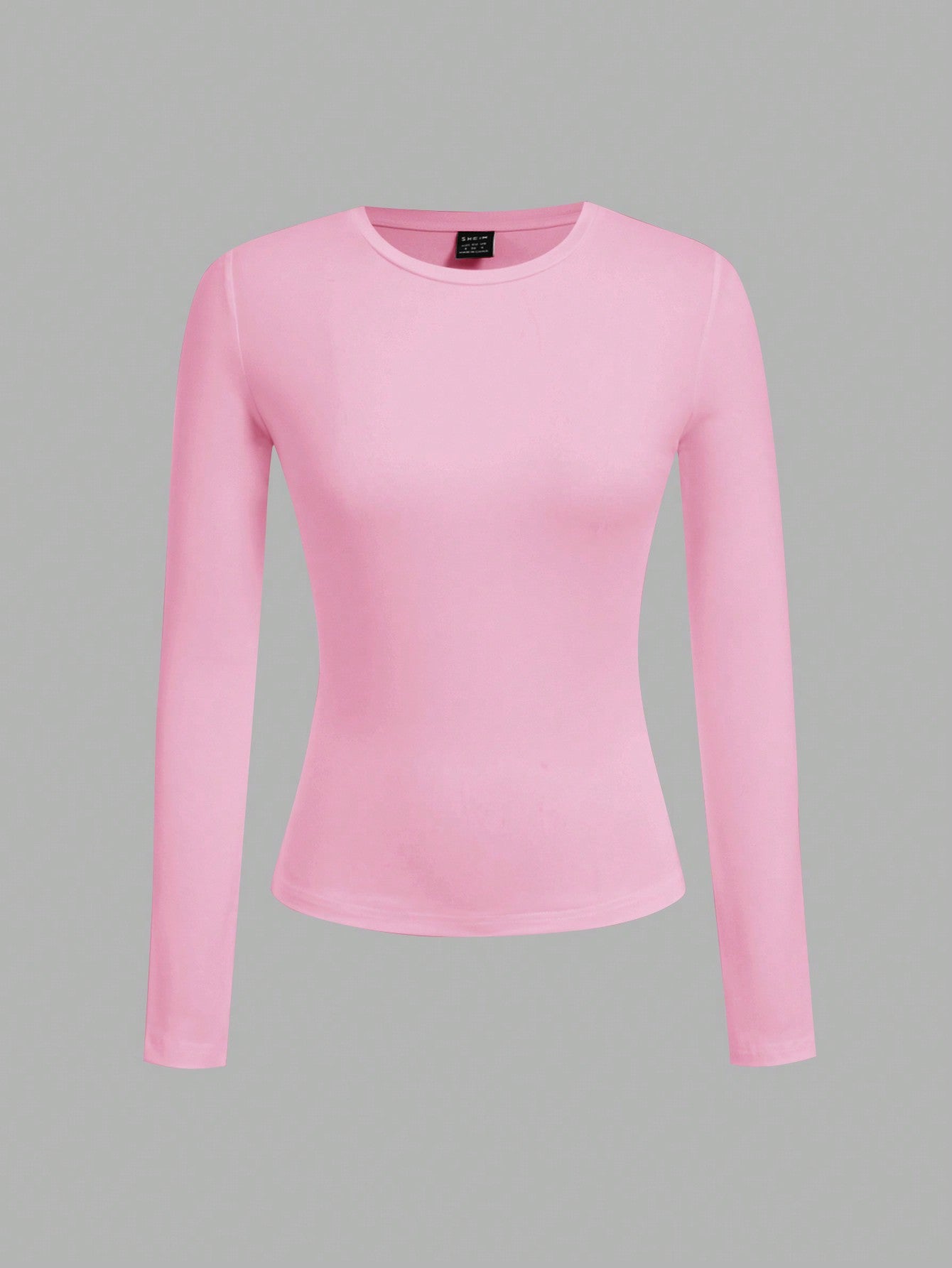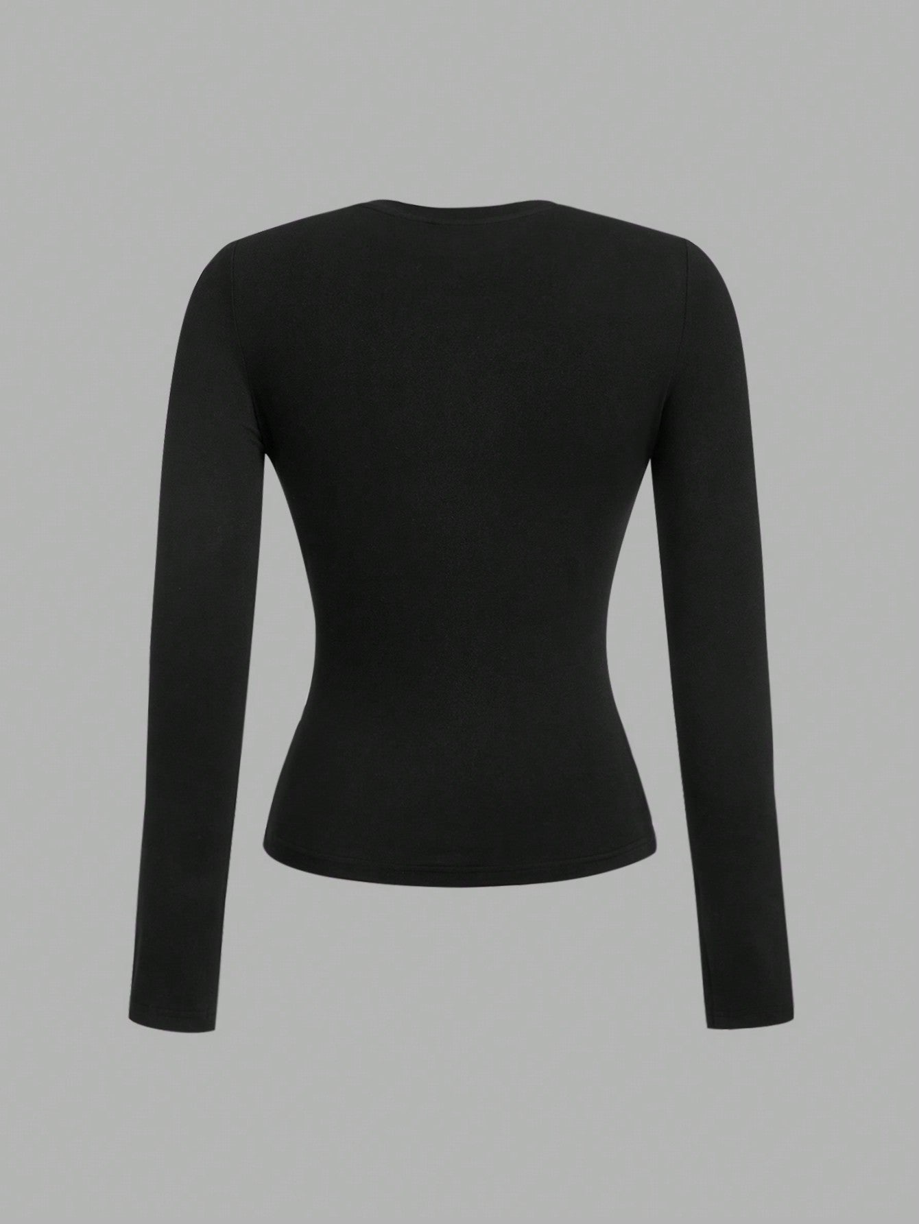 EZwear 3pcs/Set Women Plus Size Solid Color Black & White Round Neck Casual Tight Fit Long Sleeve T-Shirt Set