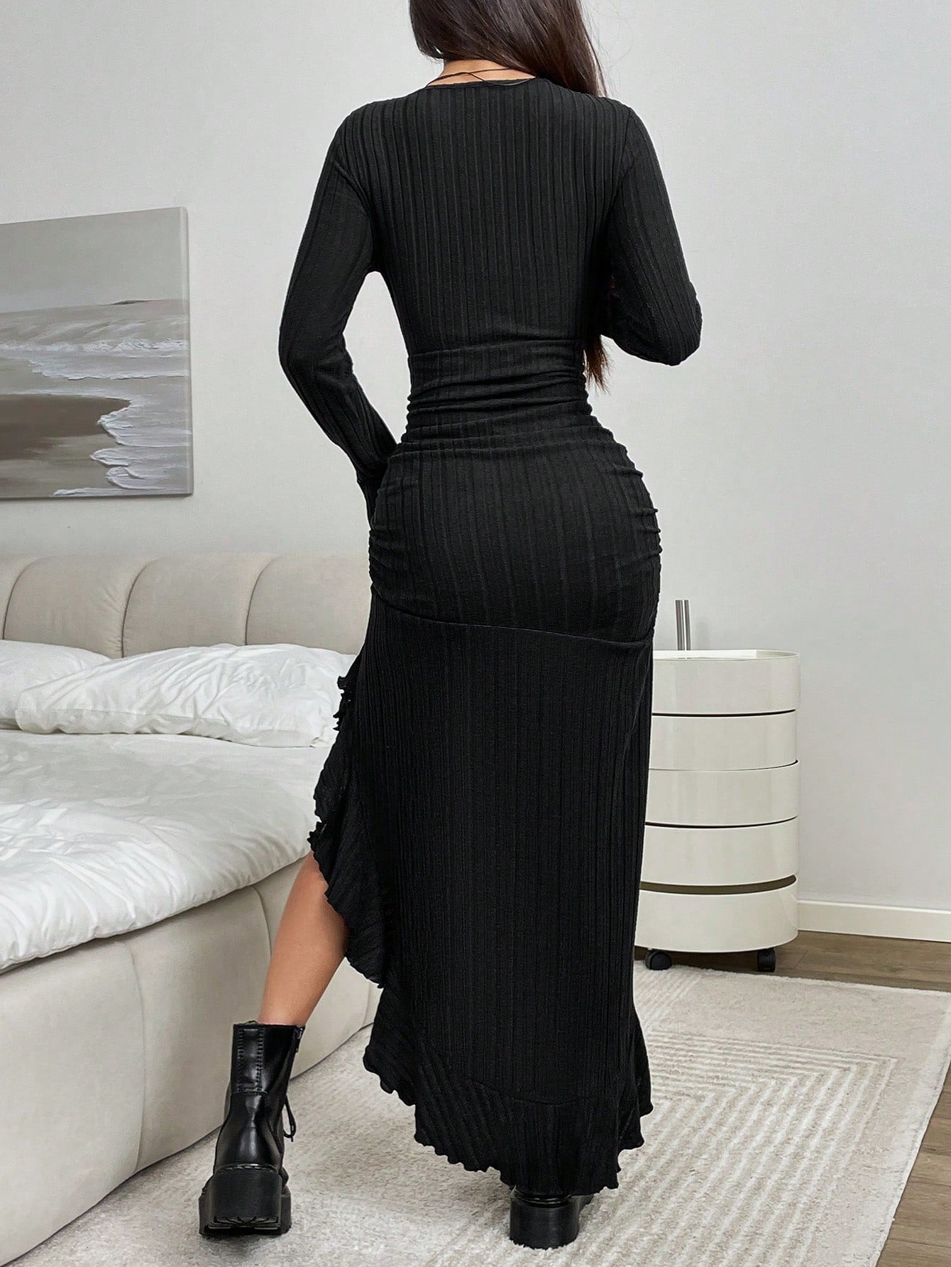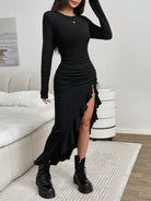 EZwear Black Knit Maxi Bodycon Dress For Women