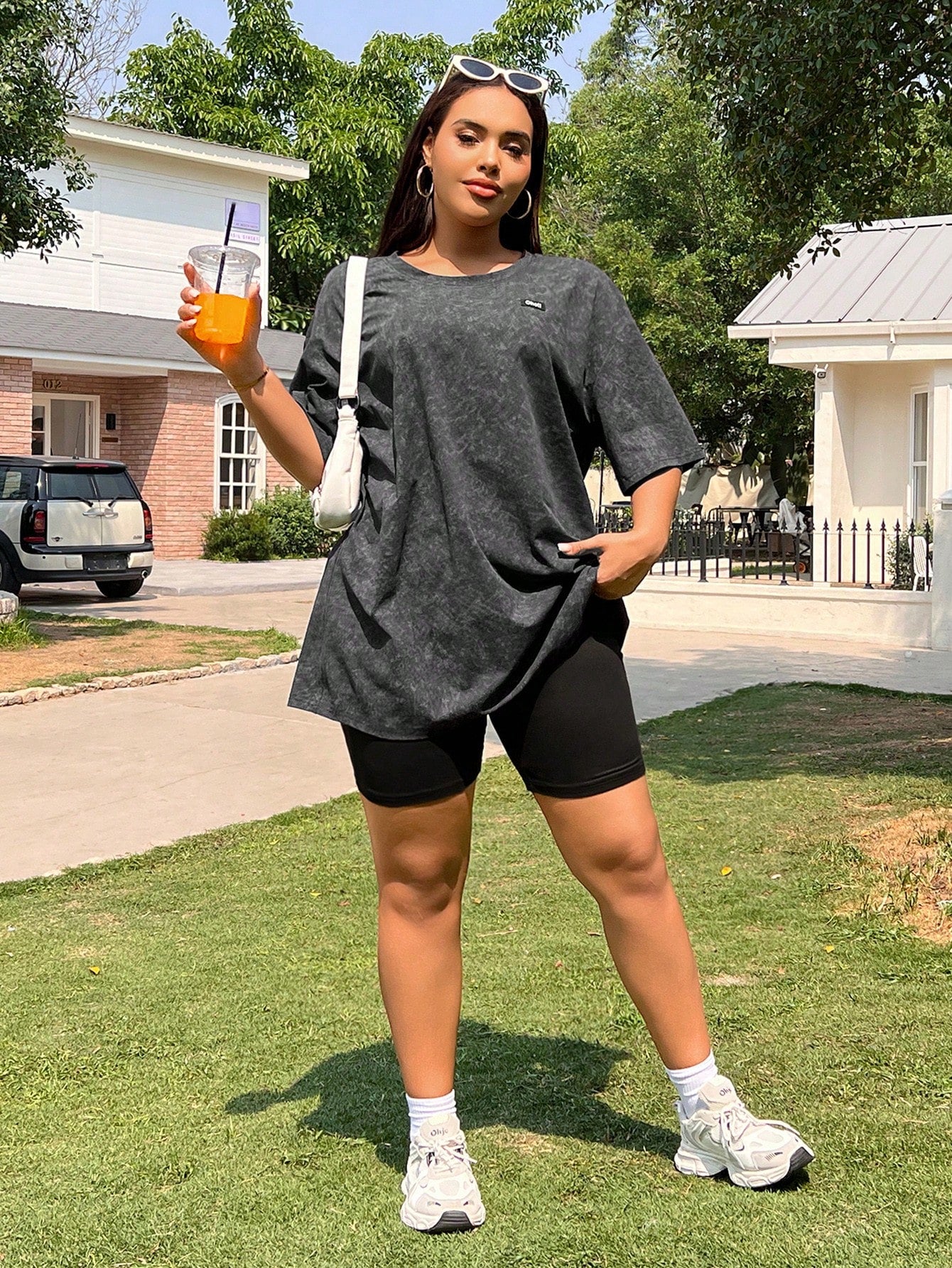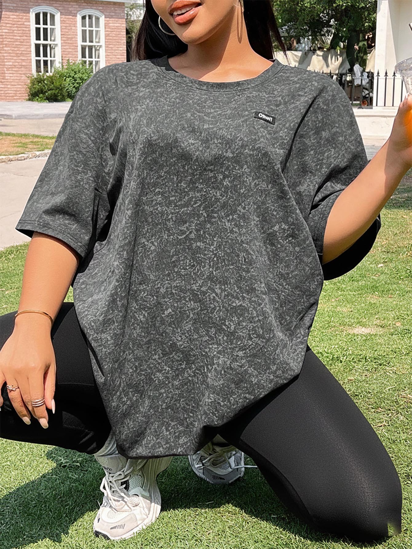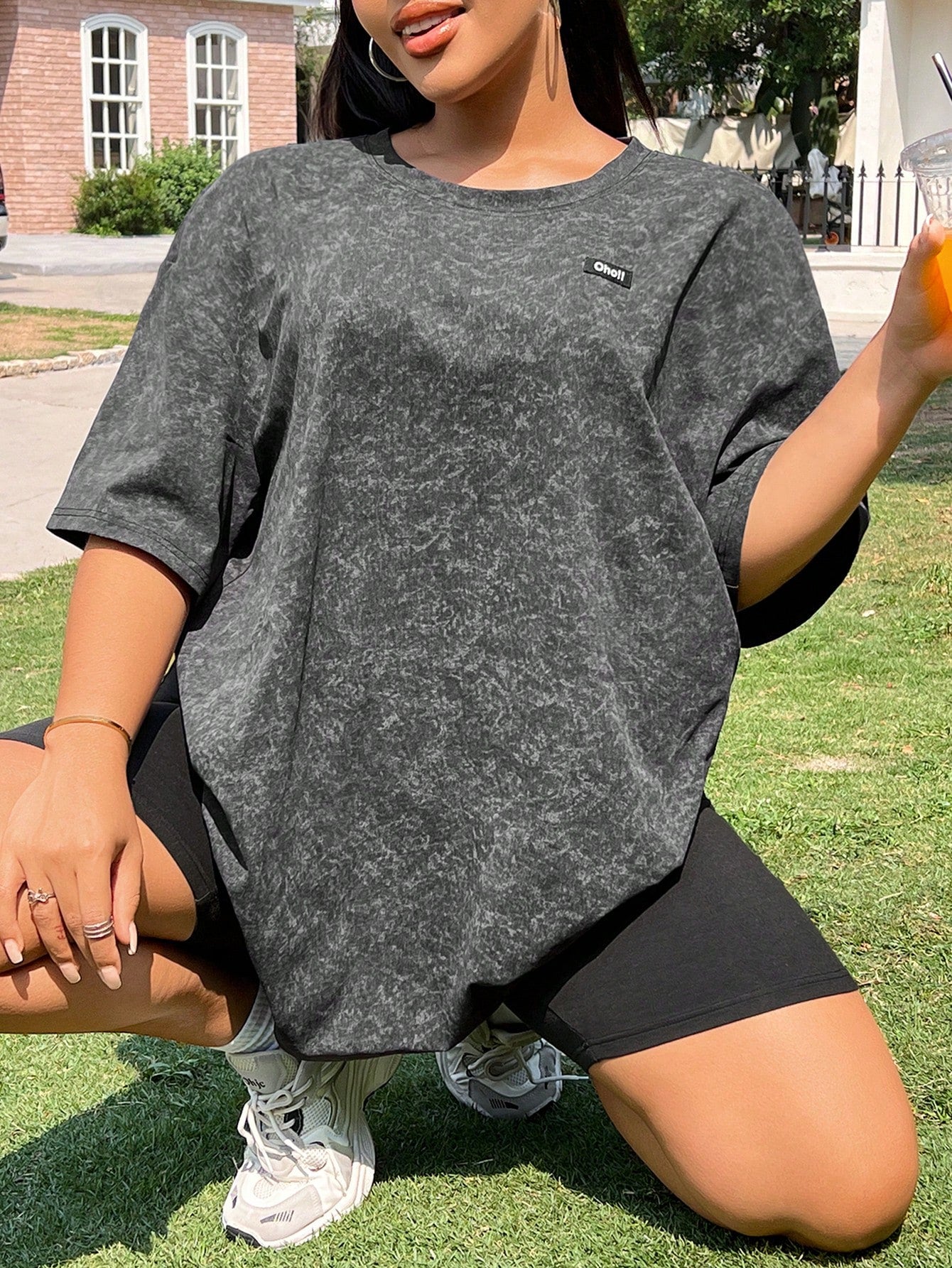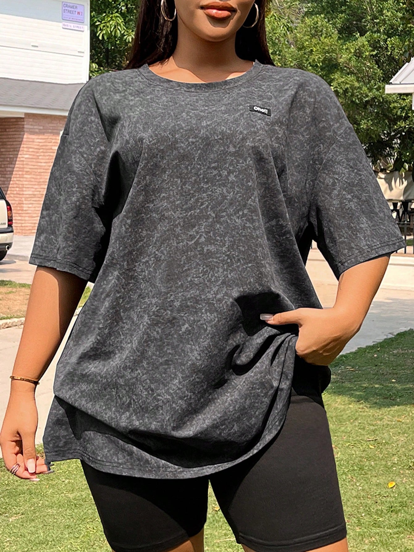 EZwear Plus Size Letter Applique Dropped Shoulder T-Shirt
