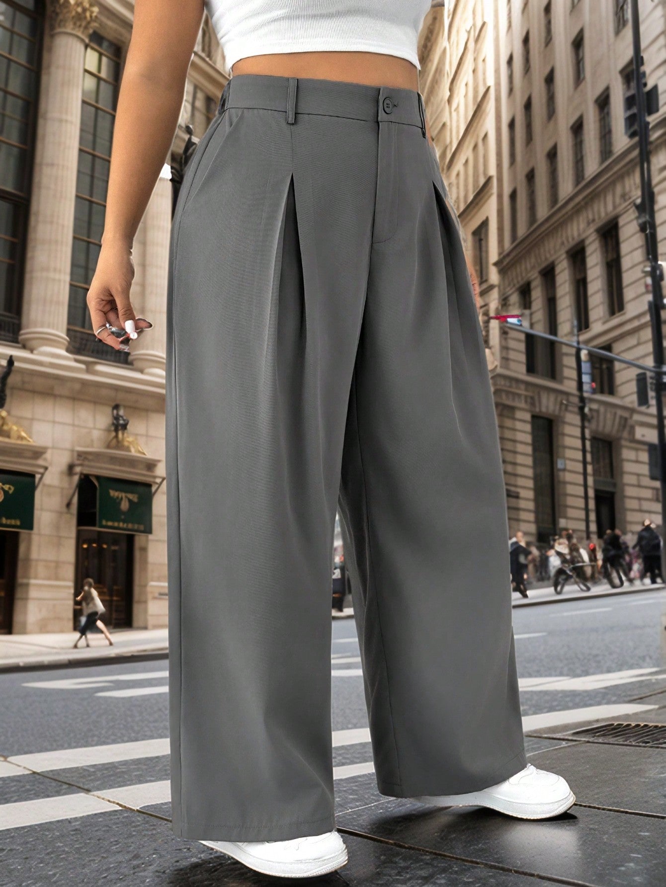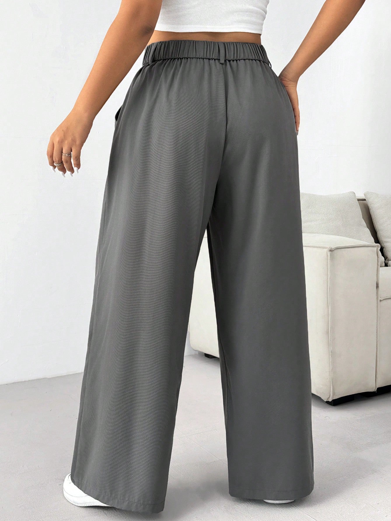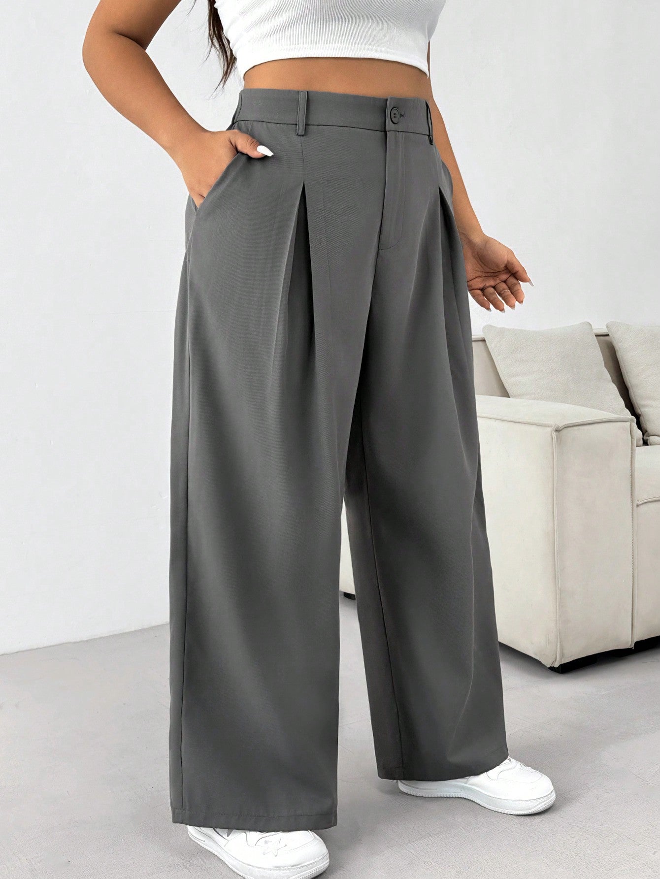 EZwear Plus Size Women's Solid Color Simple Business Pants Graduation,Back To School,Teacher Outfits