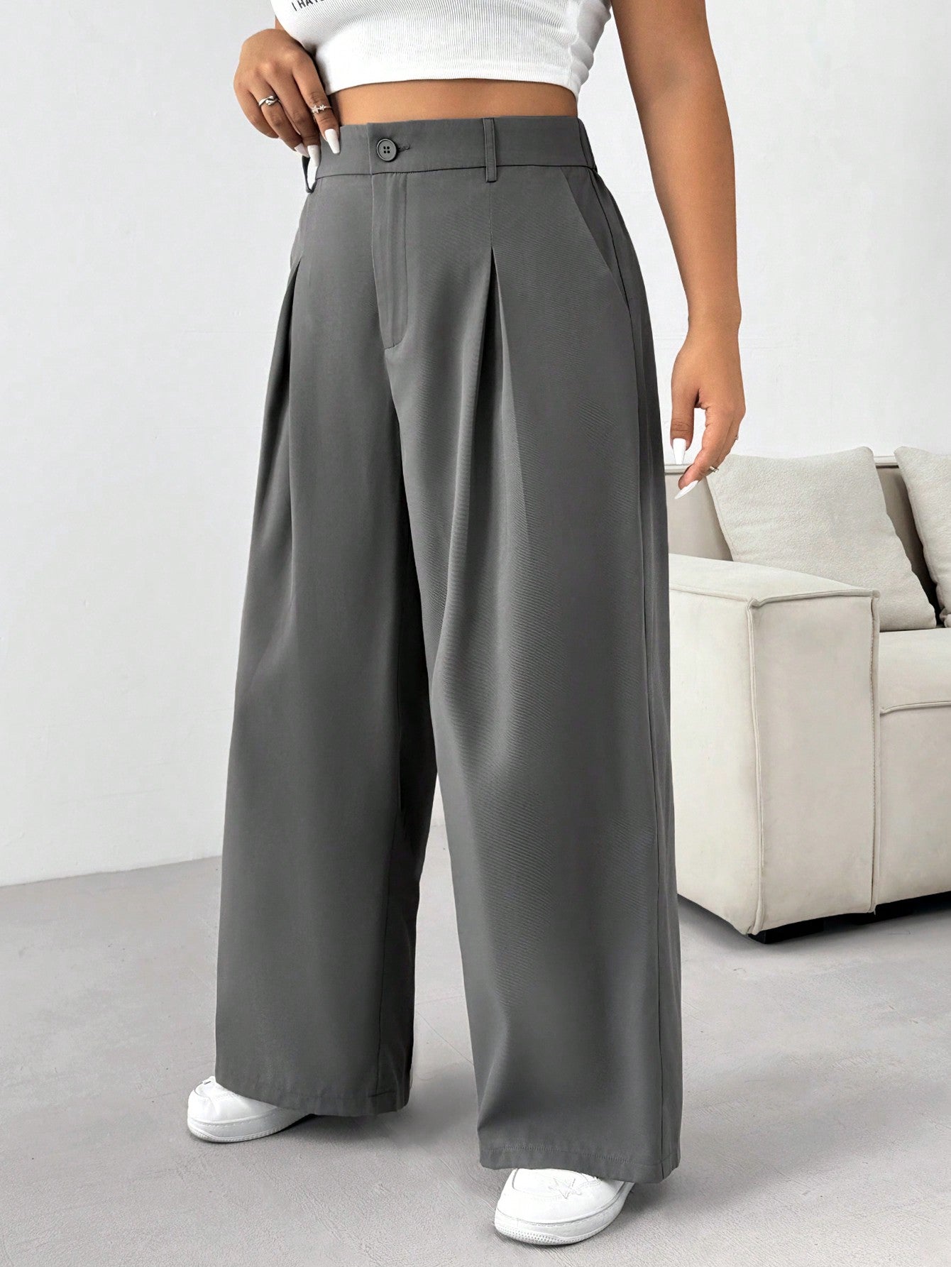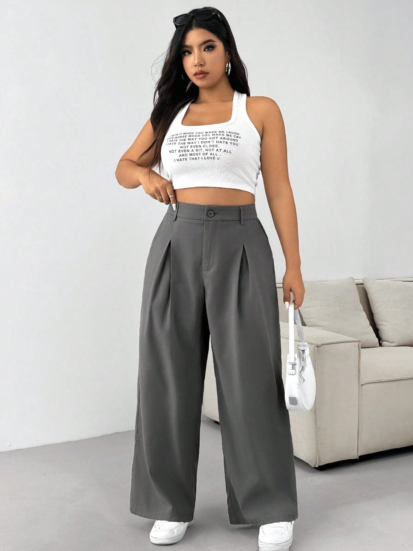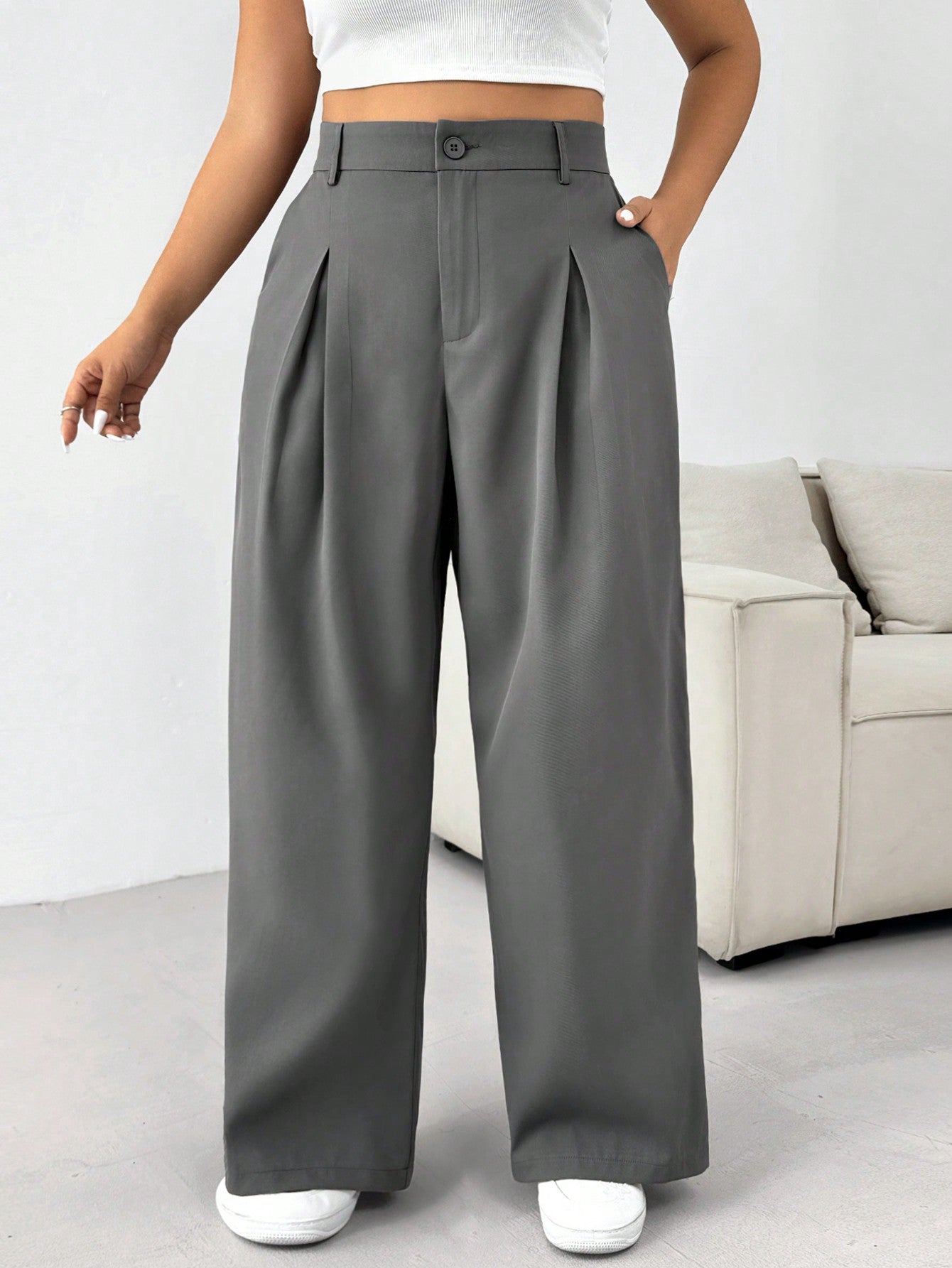 EZwear Plus Size Women's Solid Color Simple Business Pants Graduation,Back To School,Teacher Outfits