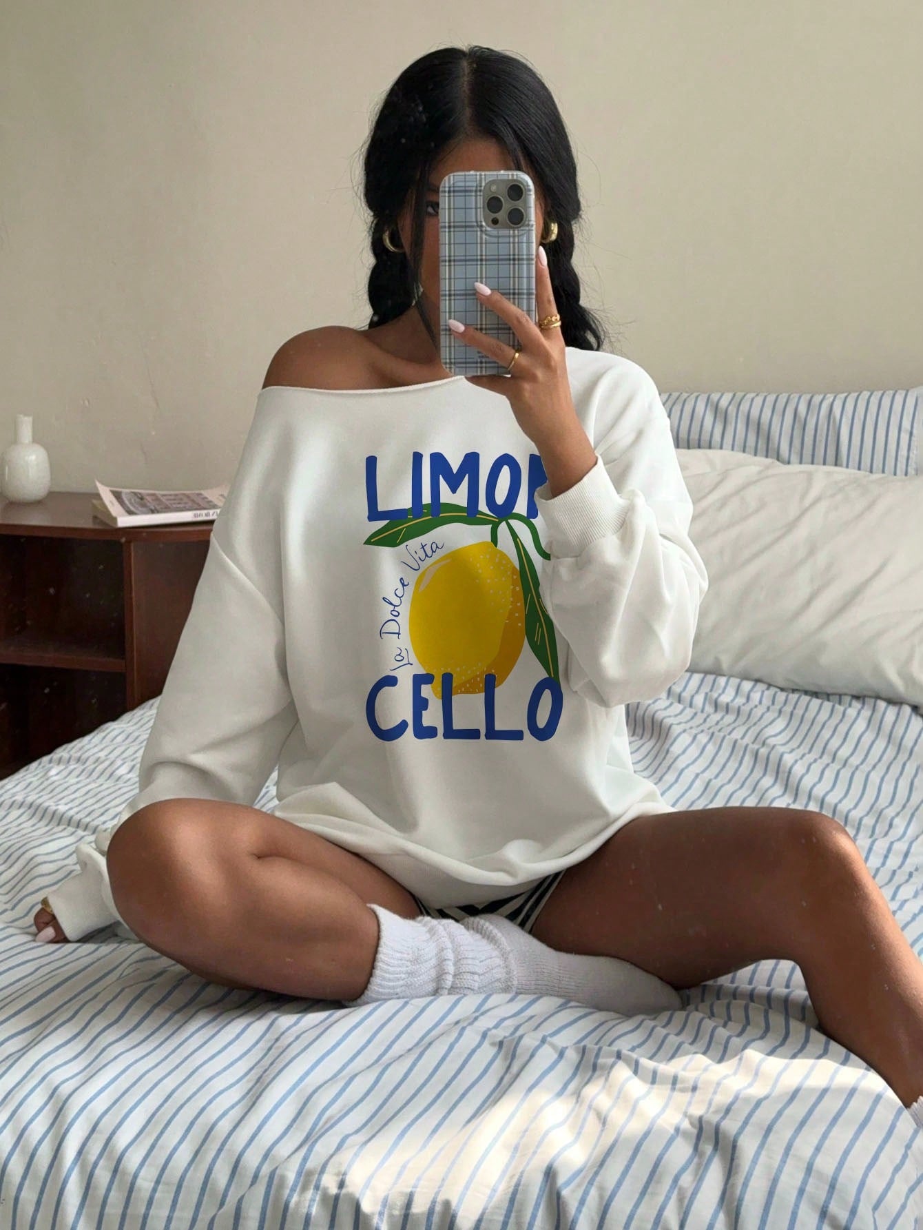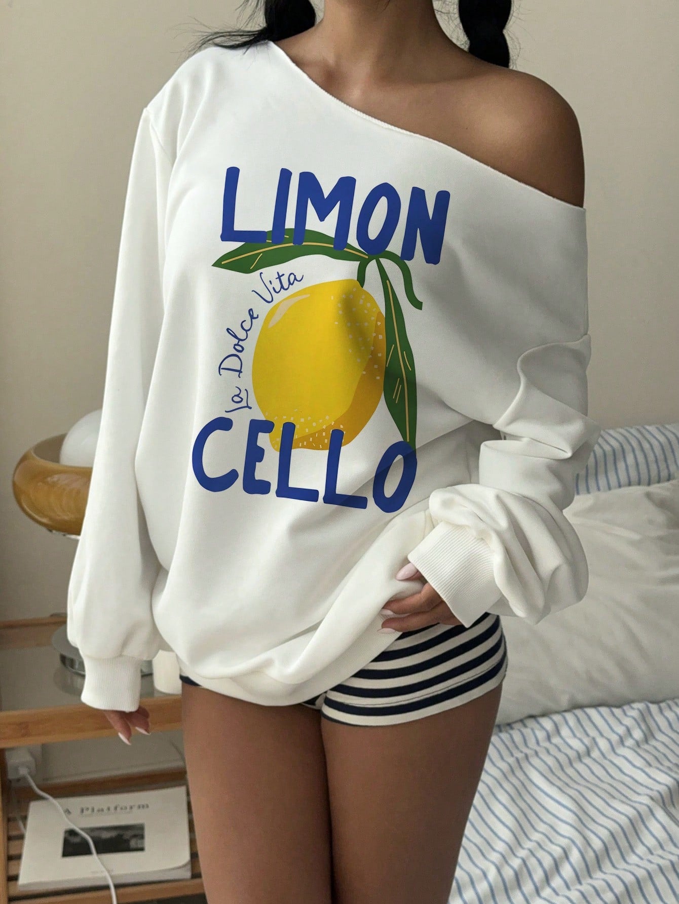 EZwear Women Limon Floral Print Off-Shoulder Loose Casual Long Sleeve Sweatshirt, Suitable For Springtime
